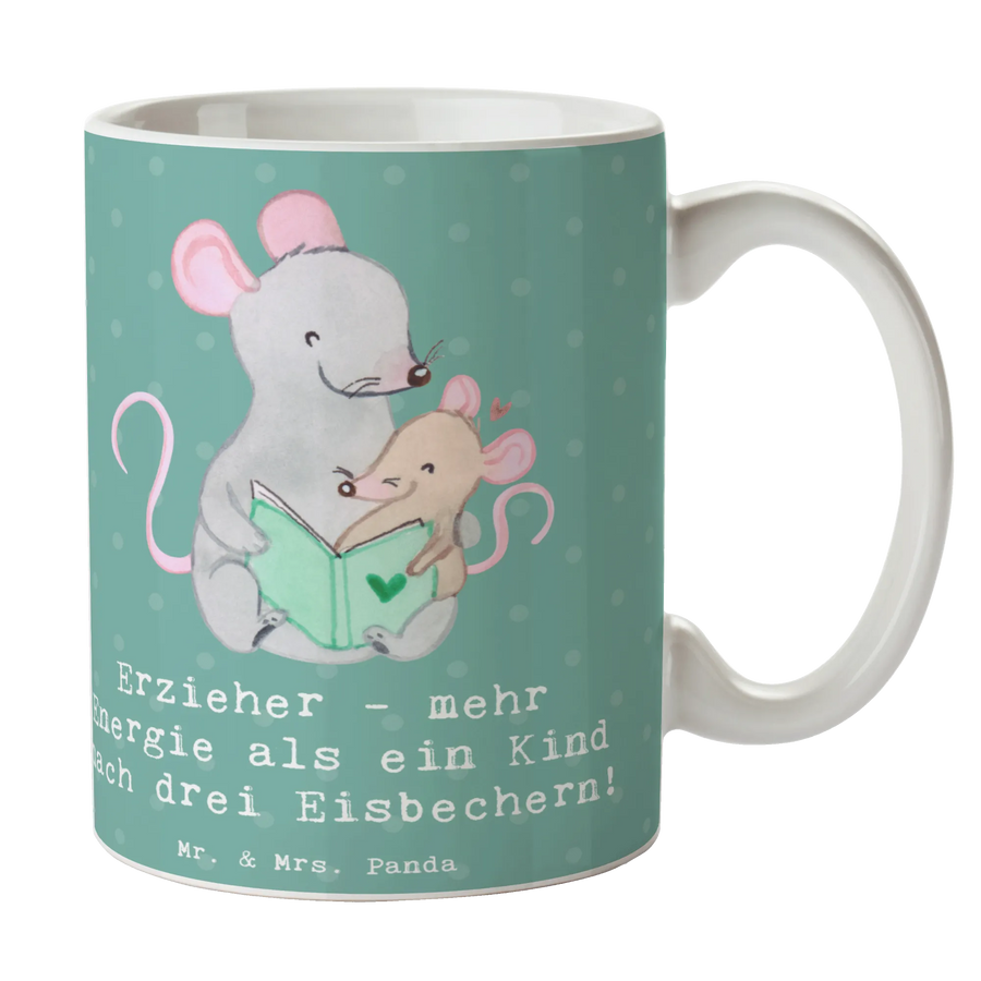 Suchst Du das perfekte Geschenk für die Erzieherin oder den Erzieher in Deinem Leben? Dann ist die wunderschöne Keramiktasse von Mr. & Mrs. Panda mit dem Spruch "Erzieher - mehr Energie als ein Kind nach drei Eisbechern!" genau das Richtige!