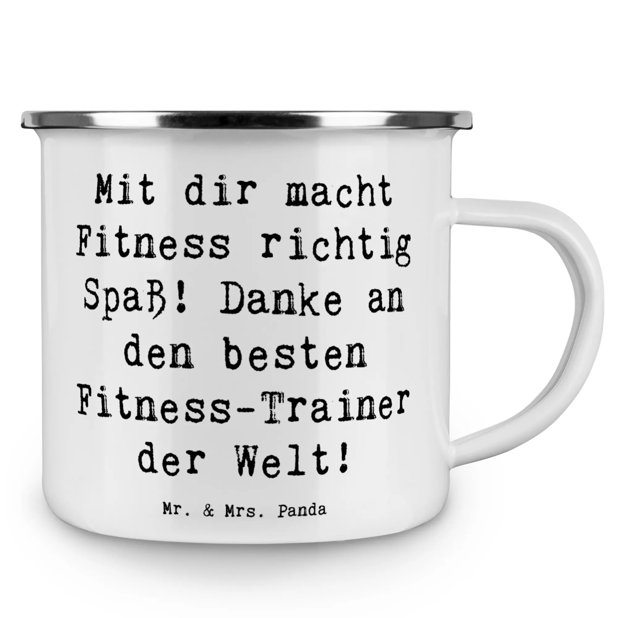 Camping Emaille Tasse Spruch Fitness-Trainer Dank – Mr. & Mrs. Panda
