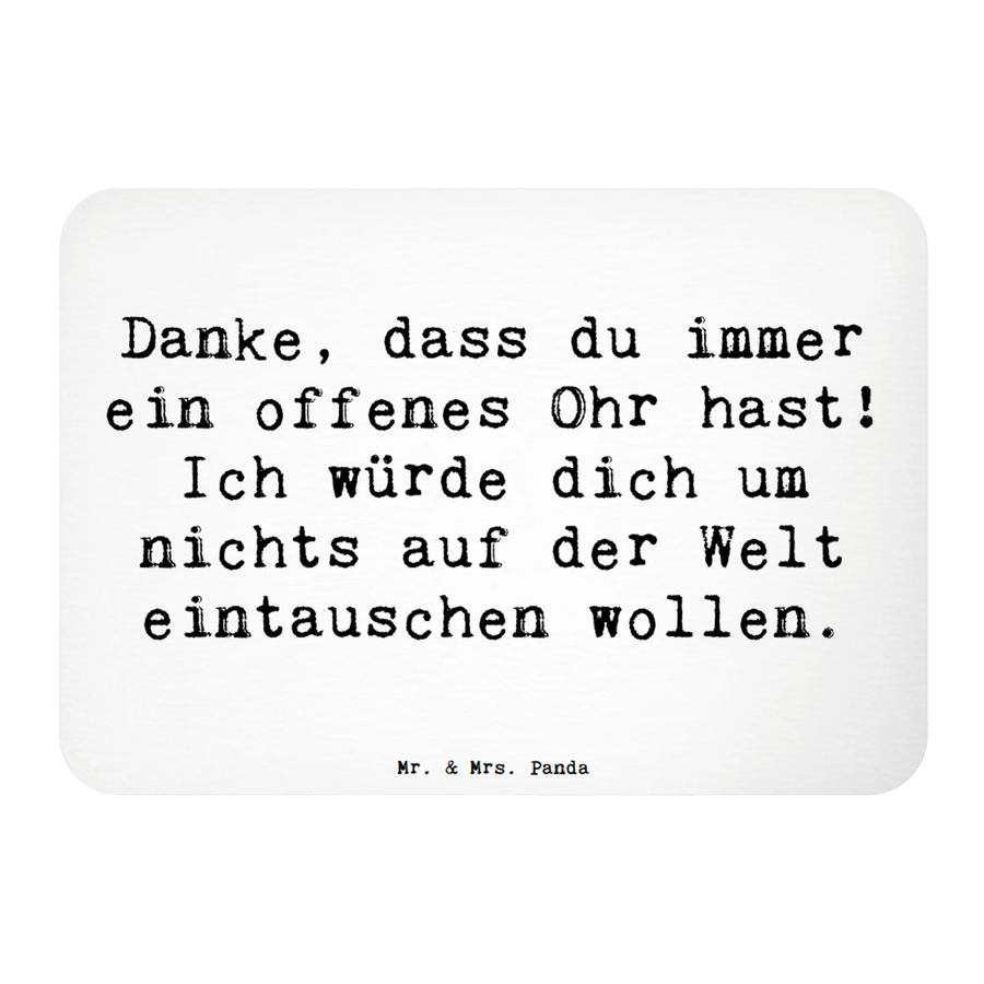 Der wunderschöne Kühlschrankmagnet von Mr. & Mrs. Panda ist das perfekte Geschenk für deinen Freund! Mit dem liebevollen Spruch "Danke, dass du immer ein offenes Ohr hast! Ich würde dich um nichts auf der Welt eintauschen wollen." vermittelt dieser Magnet deine Dankbarkeit auf eine herzliche und persönliche Weise. Egal, ob zum Geburtstag, als kleine Aufmerksamkeit zwischendurch oder einfach nur, um jemandem zu zeigen, wie wichtig er dir ist – dieser Magnet wird garantiert ein Lächeln auf sein Gesicht zaubern.
