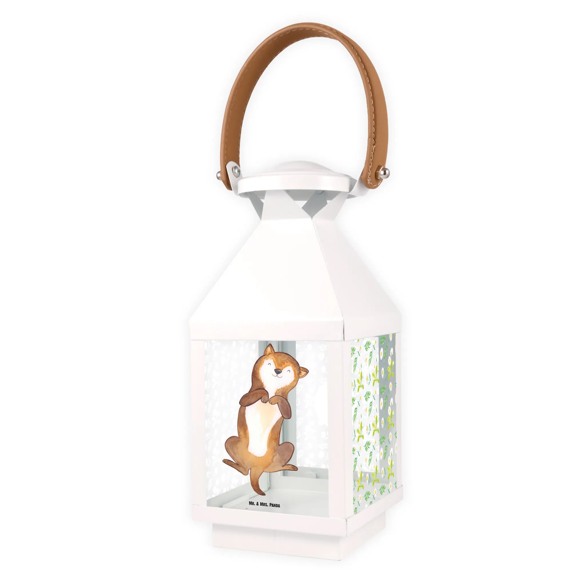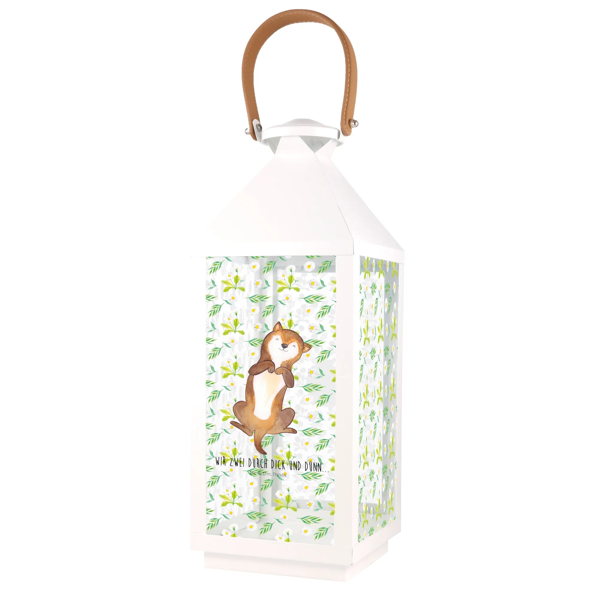 Die wunderschöne Deko Laterne mit dem süßen Motiv "Hund Bauchkraulen" aus der Hunde Kollektion von Mr. & Mrs. Panda bringt sofort Wärme und Gemütlichkeit in jeden Garten oder auf jeden Balkon. Die Laterne zeigt einen glücklichen Hund, der seinen Bauch gekrault bekommt und strahlt pure Lebensfreude aus.