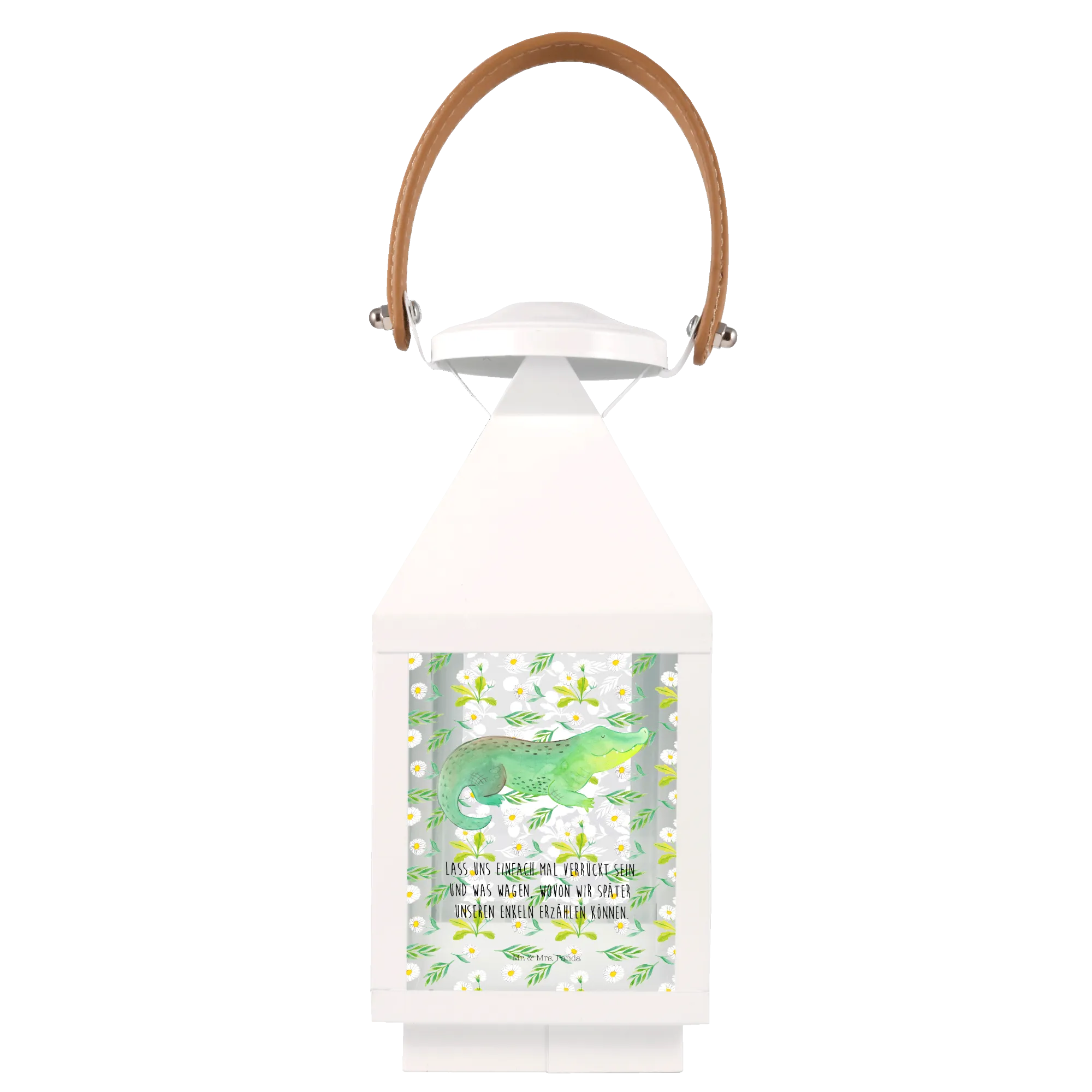 Entdecke die bezaubernde Deko Laterne mit dem Krokodil-Motiv aus der beliebten Meerestiere Kollektion von Mr. & Mrs. Panda. Diese einzigartige Gartenlampe bringt nicht nur Licht in Deinen Garten, sondern auch eine Portion Abenteuerlust und Spontaneität!