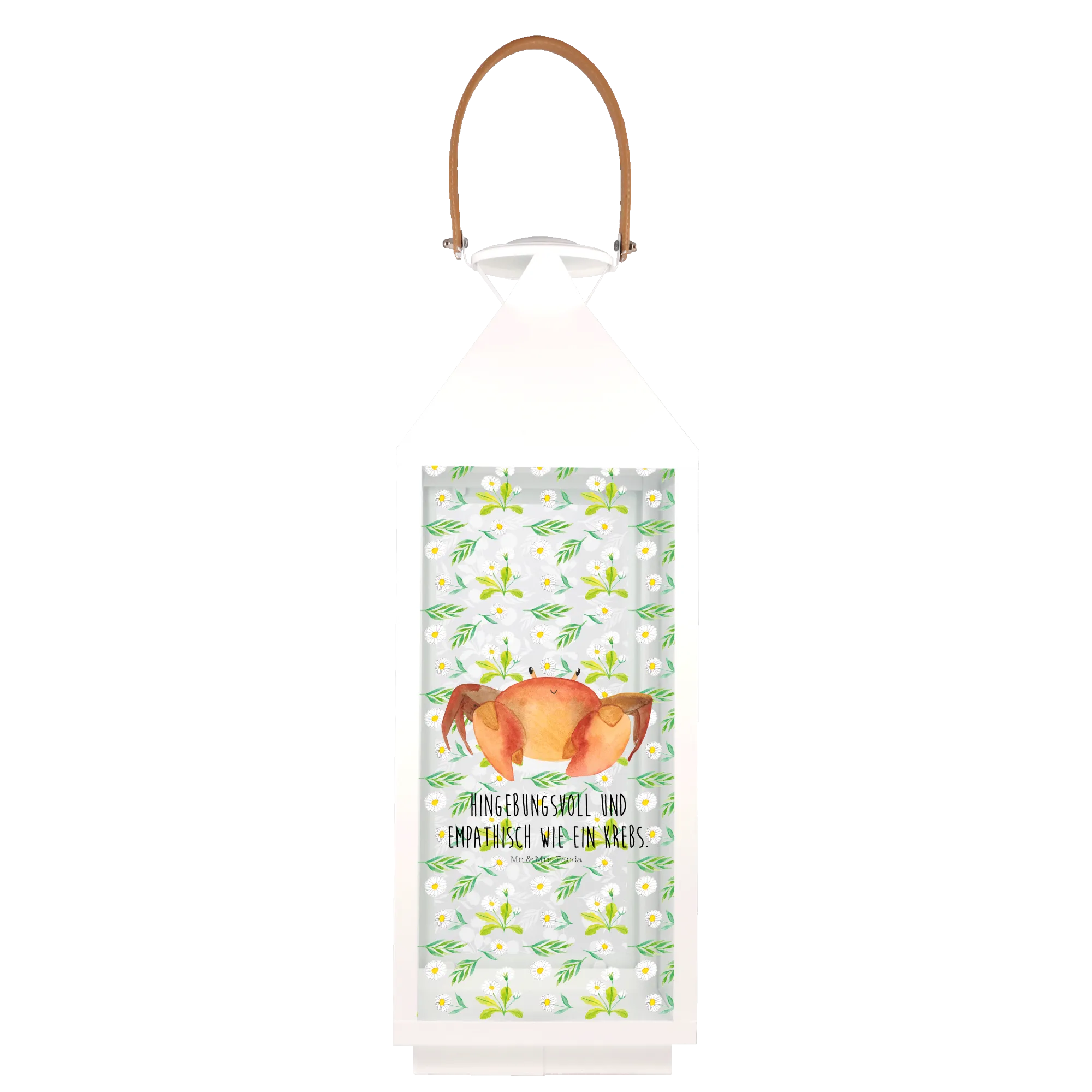 Entdecke die zauberhafte Deko Laterne Sternzeichen Krebs von Mr. & Mrs. Panda! Diese einzigartige Laterne ist das perfekte Geschenk für alle Krebse und ihre Freunde. Mit ihrem liebevollen Design und dem Spruch "Hingebungsvoll und empathisch wie ein Krebs" strahlt sie eine gemütliche Atmosphäre aus, sei es auf der Terrasse, dem Balkon oder im Innenbereich.