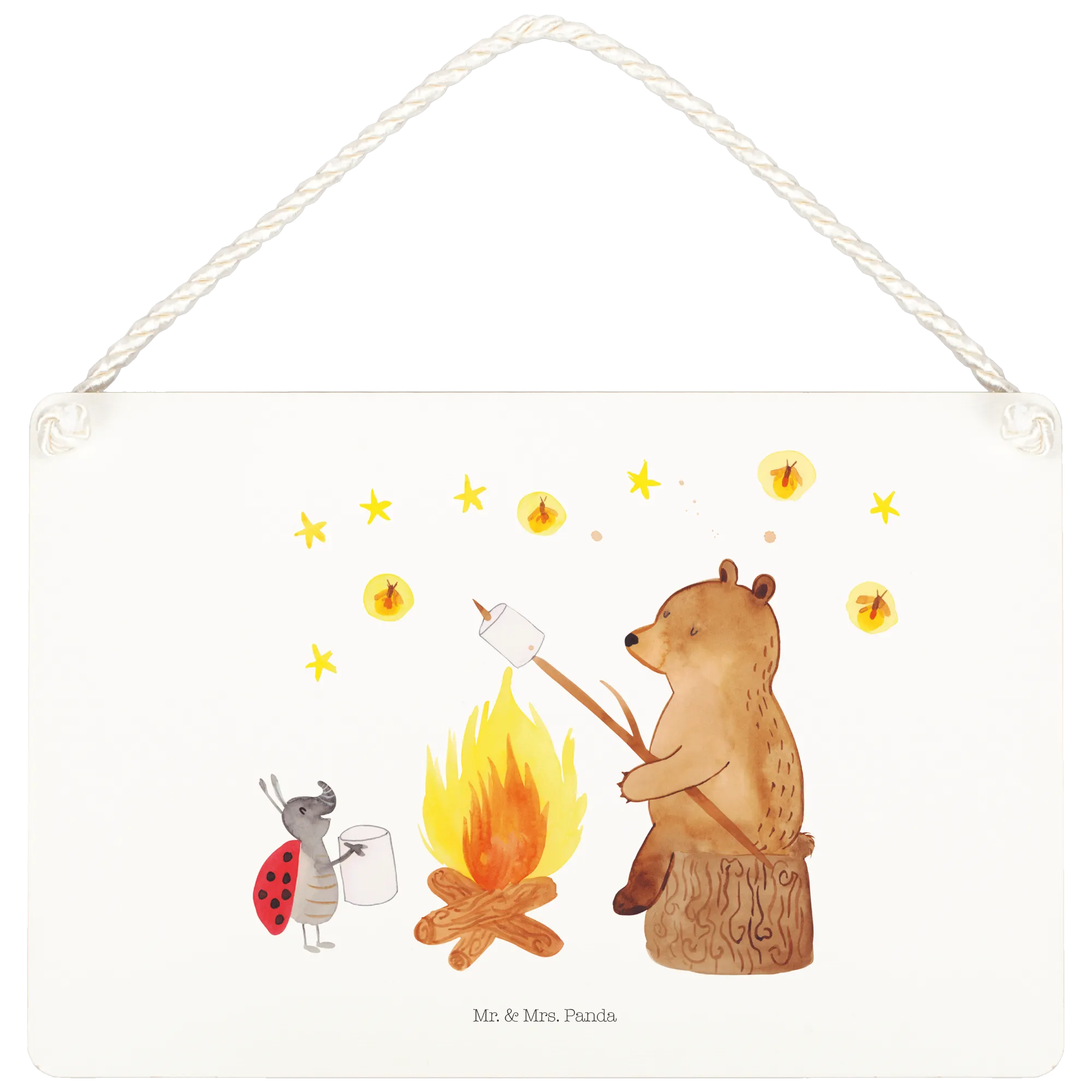 Deko Schild Bär & Marienkäfer Lagerfeuer - DIN A5 - mit Spruch - Weiß