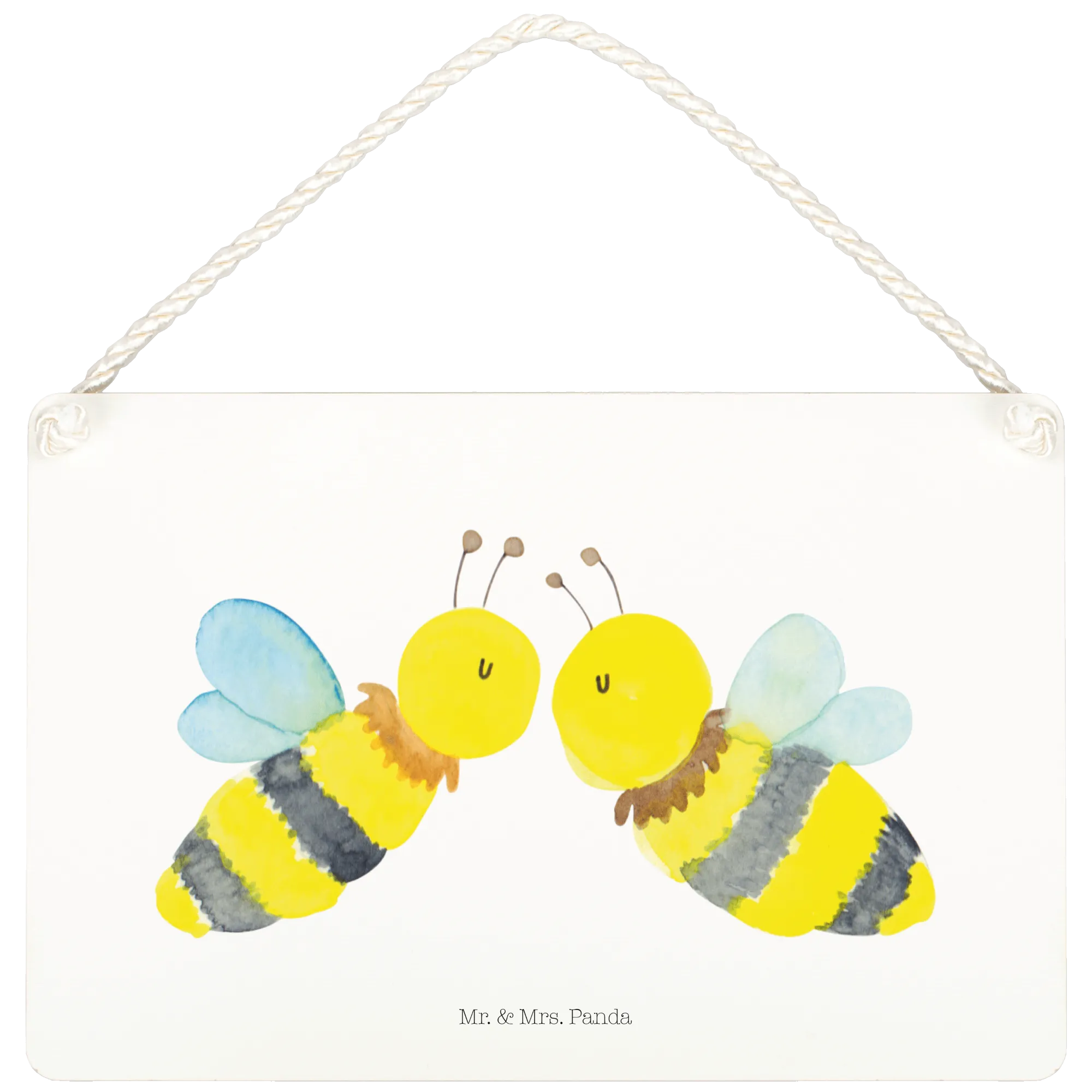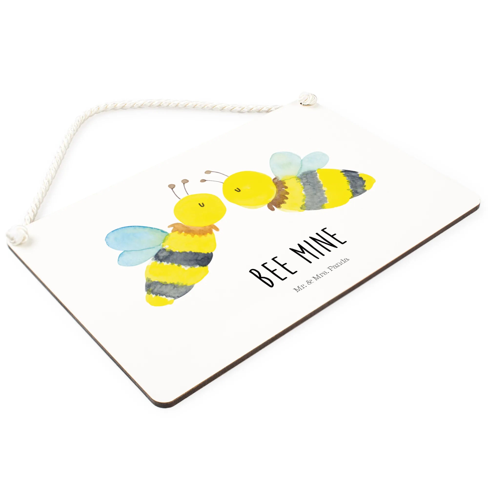 Das Deko Schild "Biene Liebe" von Mr. & Mrs. Panda ist die perfekte Dekoration für alle, die Liebe und Freude in ihr Zuhause bringen möchten. Mit einem bezaubernden Motiv von zwei verliebten Bienen, die innig küssen, strahlt dieses Holzschild pure Romantik aus.