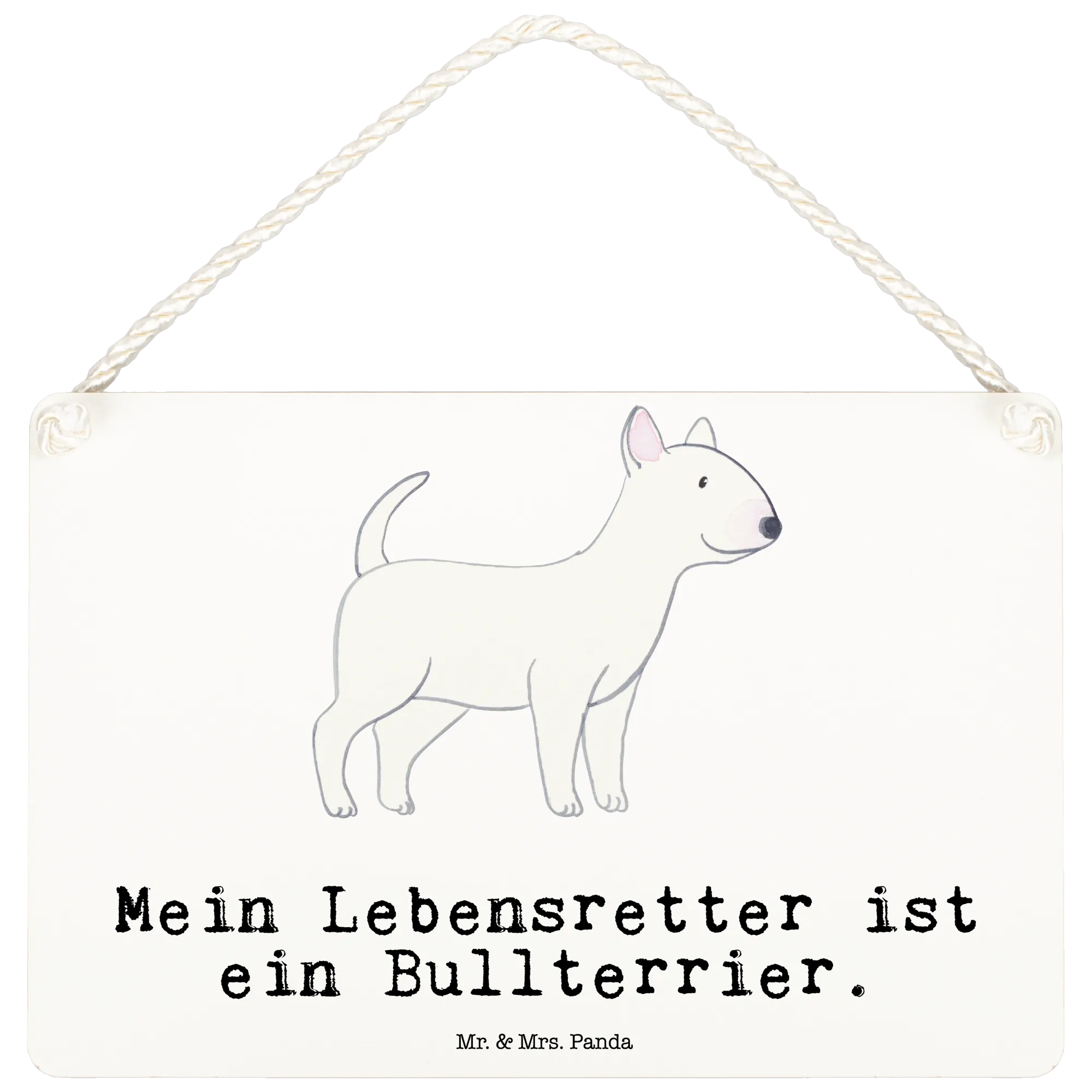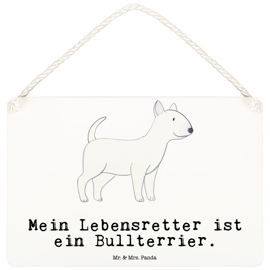 Du bist auf der Suche nach einem besonderen Geschenk für einen Hundeliebhaber? Dann ist unser wunderschönes Deko Schild 'Mein Lebensretter ist ein Bullterrier' von Mr. & Mrs. Panda genau das Richtige!