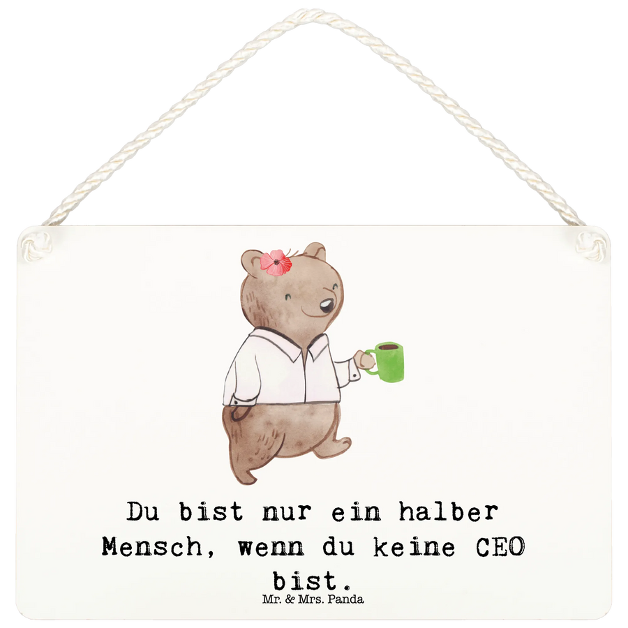 Das Besondere an diesem Motiven ist der niedliche Bär mit einer Kaffeetasse, der die Welt der CEOs repräsentiert. Mit einem Maß von 148 mm x 105 mm bietet es die ideale Größe, um an jeder Wand oder Tür seinen Platz zu finden. Die exquisite Kordel zur Aufhängung verleiht dem Schild zusätzlich einen ansprechenden Touch.