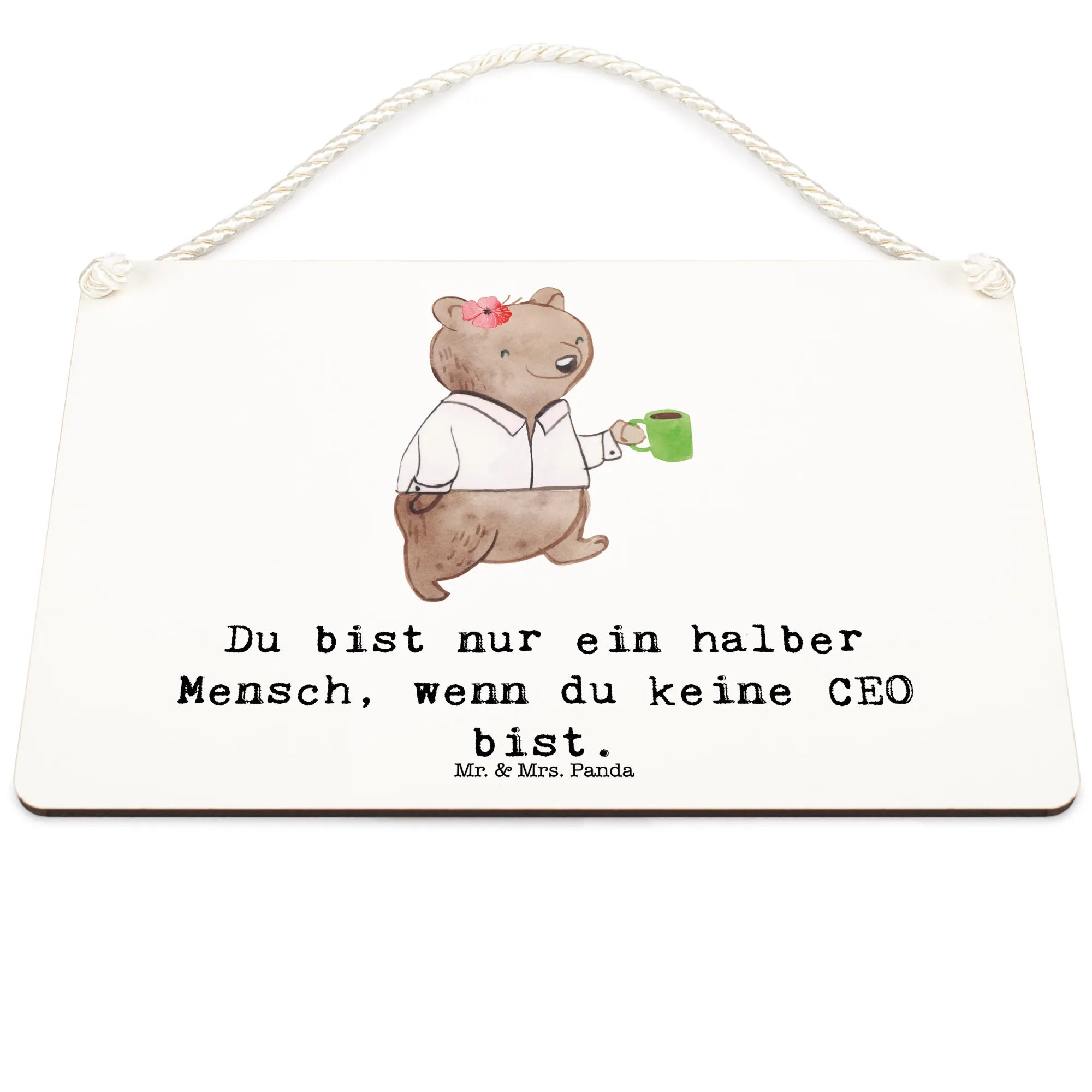 Das Deko Schild "CEO mit Herz" von Mr. & Mrs. Panda ist das perfekte Geschenk für alle Führungskräfte, die einen Hauch von Stil und Witz in ihrem Büro oder Zuhause schätzen. Mit seinem charmanten Design und dem liebevollen Spruch "Du bist nur ein halber Mensch, wenn du keine CEO bist" zaubert es jedem ein Lächeln ins Gesicht.