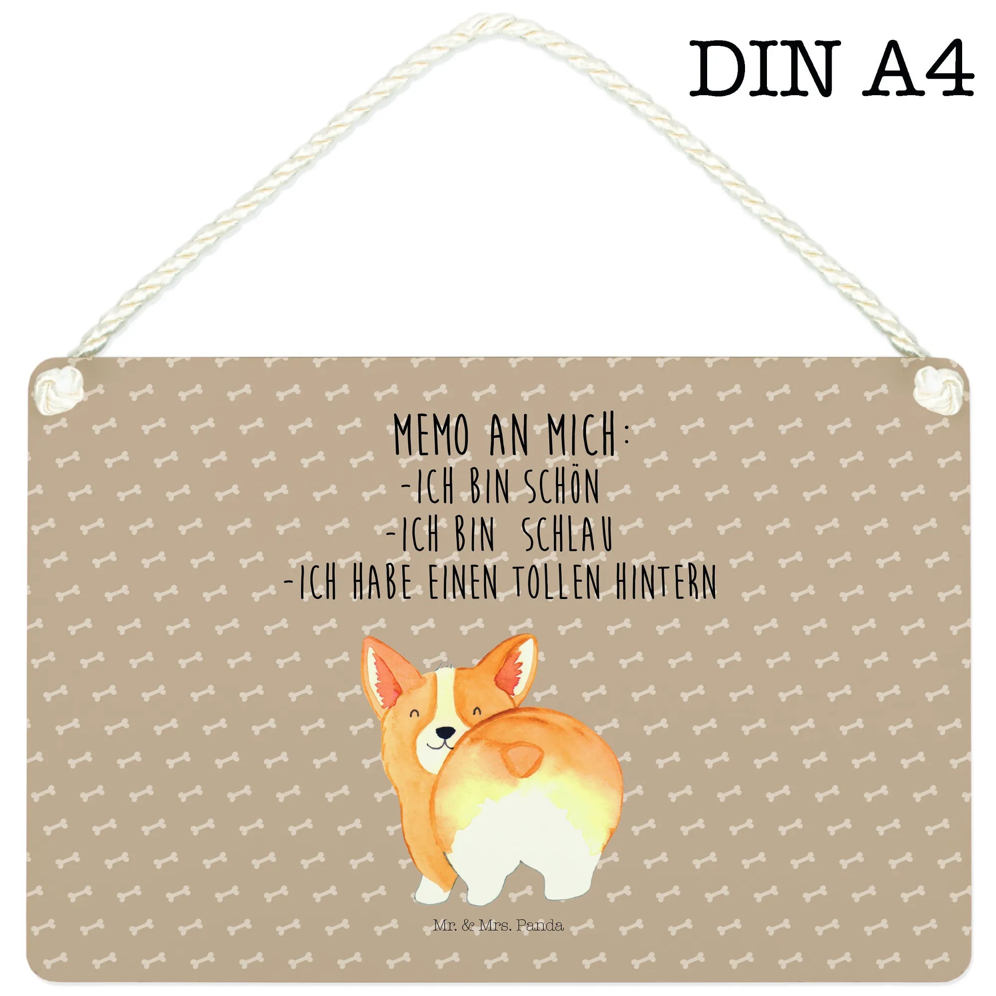 Das Deko Schild "Corgie Po" aus der Hunde Kollektion von Mr. & Mrs. Panda ist das perfekte Geschenk für jeden Hundeliebhaber! Mit seinem niedlichen Design und dem motivierenden Slogan erinnert es uns daran, wie wunderbar wir sind: "Ich bin schön, ich bin schlau, ich habe einen tollen Hintern!"