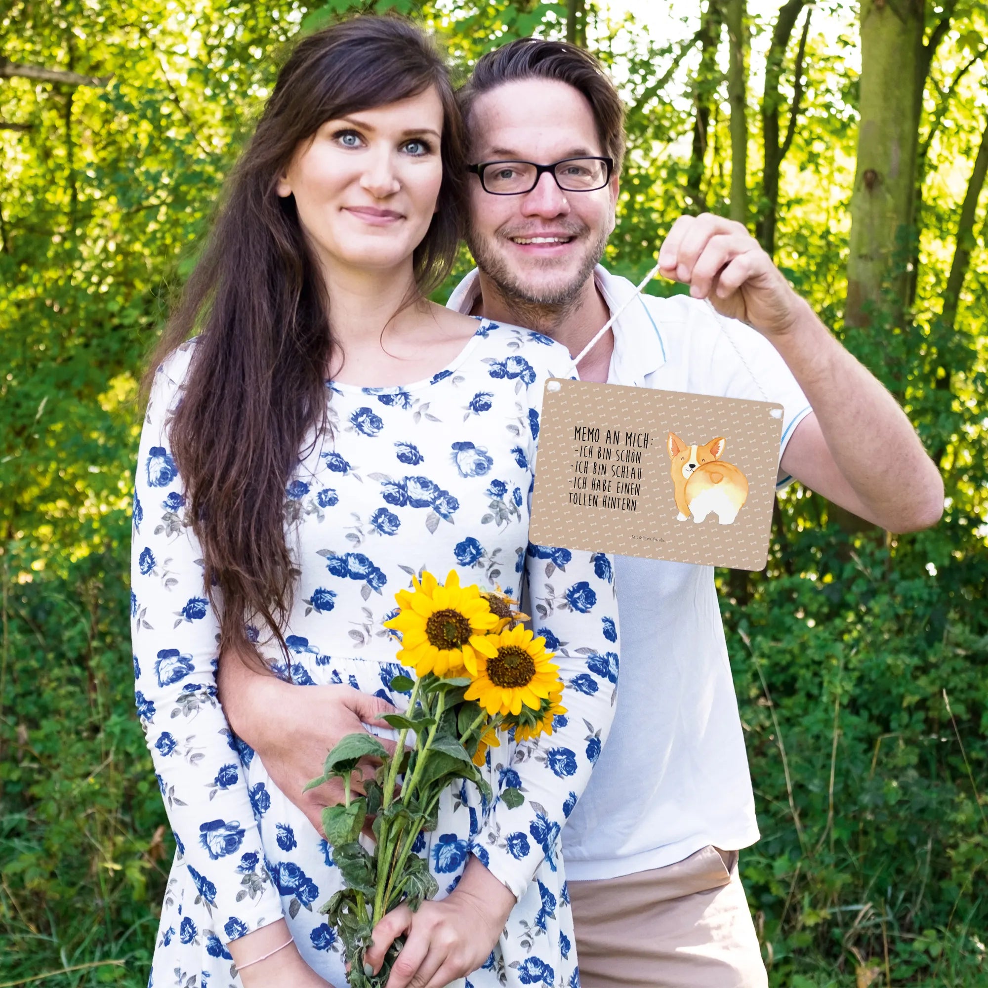 Entdecke das ultimative Deko Schild von Mr. & Mrs. Panda – unser niedliches Deko Schild mit dem witzigen Corgie Po! Dieses kultige Motiv wird nicht nur dein Herz erobern, sondern auch das deiner Gäste. Es zeigt einen entzückenden Corgi, der stolz seinen Po in die Kamera hält und bringt damit viel Freude in dein Zuhause. Der Spruch 'Memo an mich: ich bin schön, ich bin schlau, ich habe einen tollen Hintern' verleiht dem Schild einen besonderen Charme und eine gute Portion Motivation.