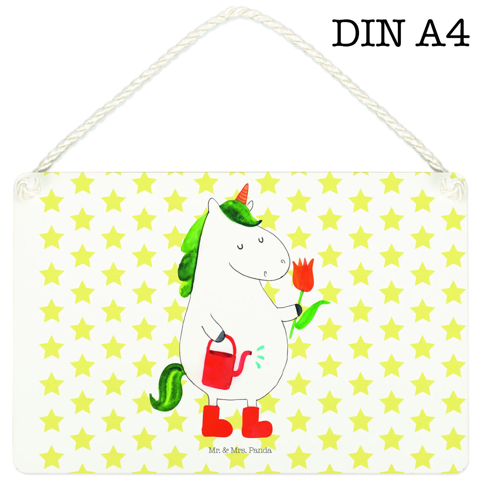 Das zauberhafte Deko Schild "Einhorn Gärtner" aus der liebevollen Einhorn-Kollektion von Mr. & Mrs. Panda ist das perfekte Geschenk für alle Einhorn-Liebhaber und Gartenfreunde. Mit seinem niedlichen, handgezeichneten Einhornmotiv, das voller Lebensfreude und Freude strahlt, bringst du Farbe und Magie in jedes Zuhause.