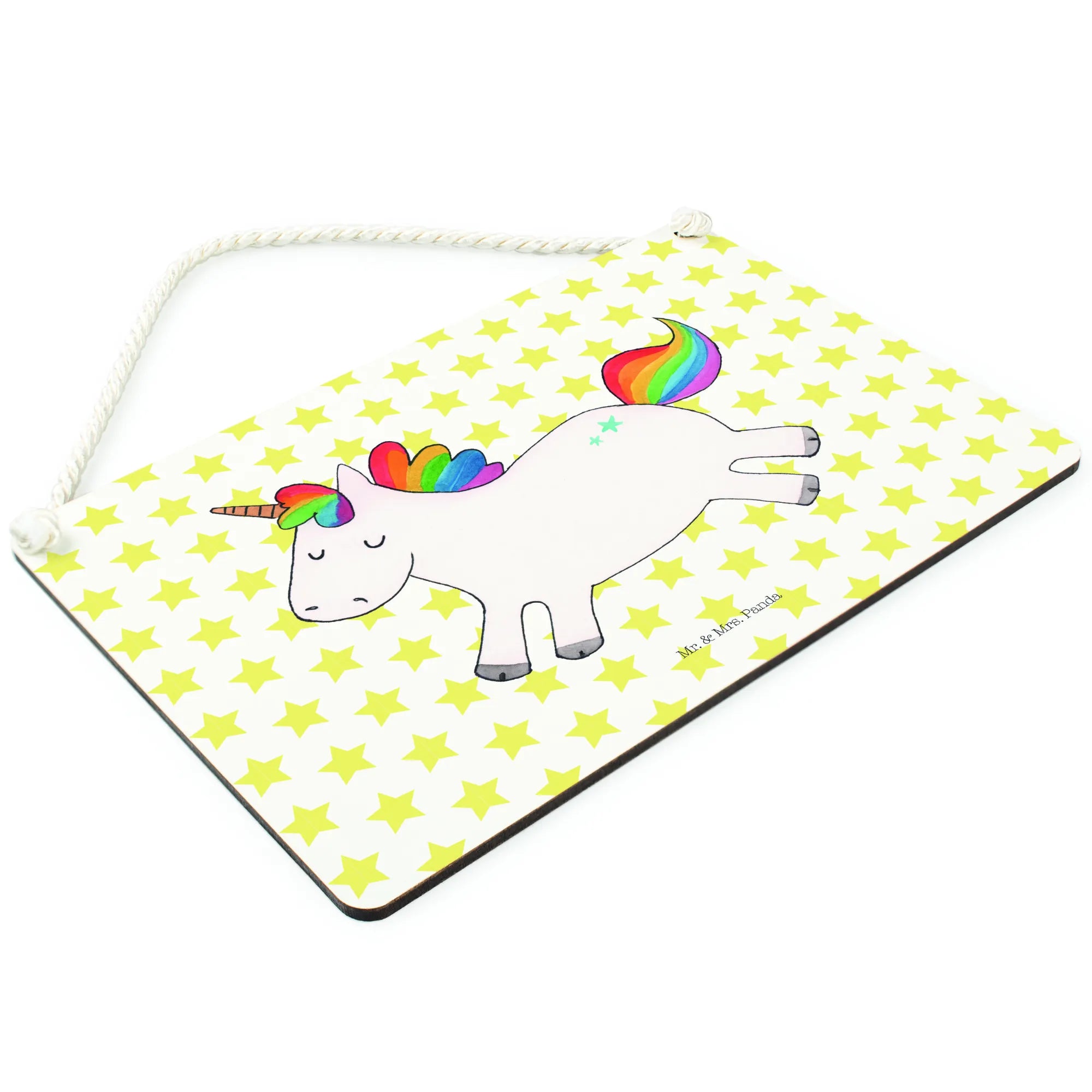 Das Deko Schild "Einhorn Happy" von Mr. & Mrs. Panda ist das perfekte Geschenk für alle Einhornliebhaber und Freude-Verbreiter. Mit seinem zauberhaften, handgezeichneten Einhorn mit Regenbogen-Mähne versprüht es pure Lebensfreude – genau das, was du brauchst, um dein Zuhause aufzupeppen!