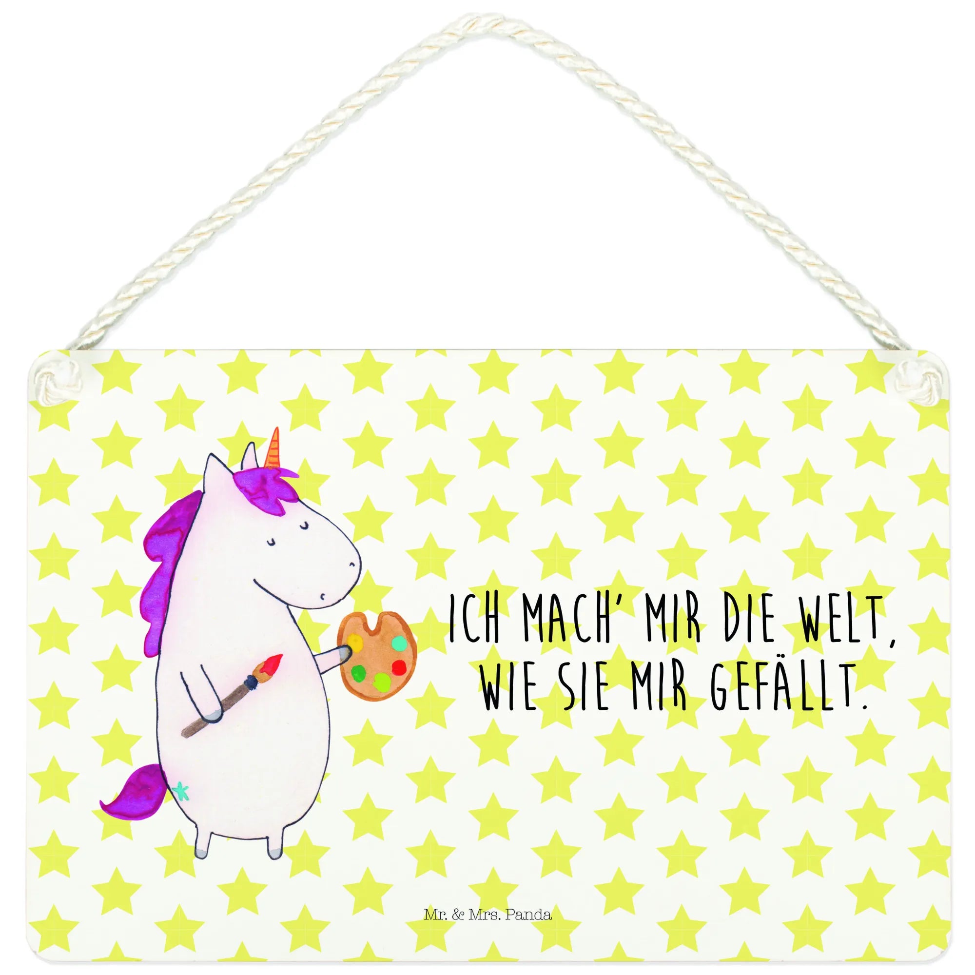 Das Deko Schild Einhorn Künstler von Mr. & Mrs. Panda ist die perfekte Dekoration für kreative Seelen und Liebhaber des Fantastischen. Egal, ob du es für dein eigenes Zuhause kaufst oder ein ganz besonderes Geschenk für einen Freund suchst, dieses Schild wird sicher die Herzen höher schlagen lassen.