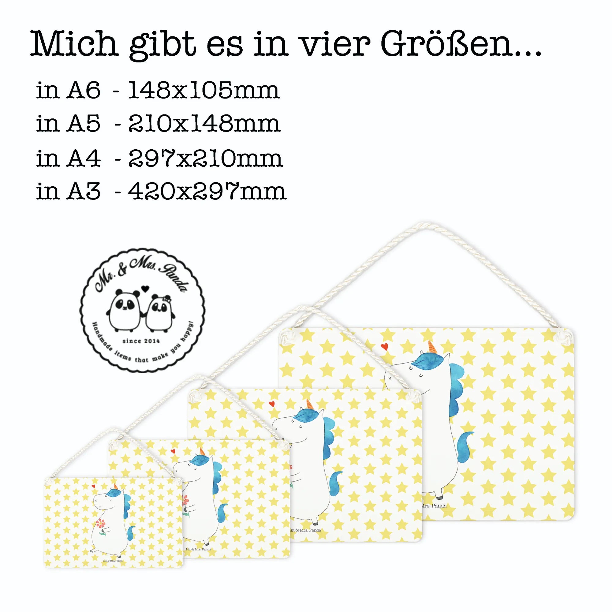 Die Einhorn-Kollektion von Mr. & Mrs. Panda bietet eine riesige Auswahl an süßen Einhorn Motiven und befindet sich bei Fans dieser fantastischen Wesen ganz oben auf der Wunschliste. Die handgezeichneten Designs von Mrs. Panda sind einzigartig und mit viel Liebe gestaltet. Das Deko Schild bringt nicht nur Farbe, sondern auch einen Hauch von Magie in dein Zuhause.