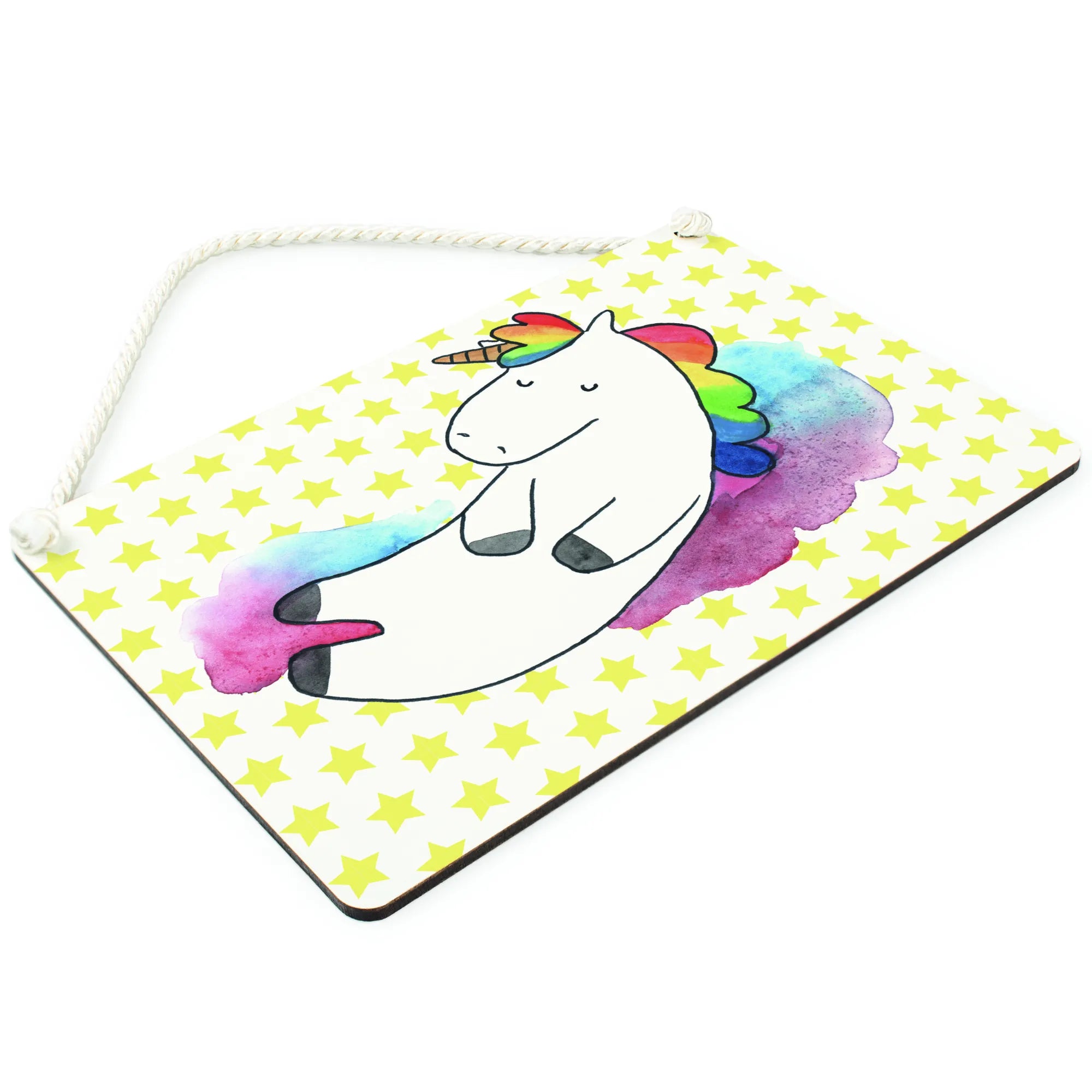 Das Deko Schild "Einhorn Wolke 7" von Mr. & Mrs. Panda ist das perfekte Geschenk für alle Einhorn-Liebhaber und romantischen Seelen! Mit dem süßen Motiv eines entspannten Einhorns, das auf Wolke 7 sitzt, bringt es nicht nur Farbe in jeden Raum, sondern zaubert auch ein Lächeln auf die Gesichter der Beschenkten oder Gäste.