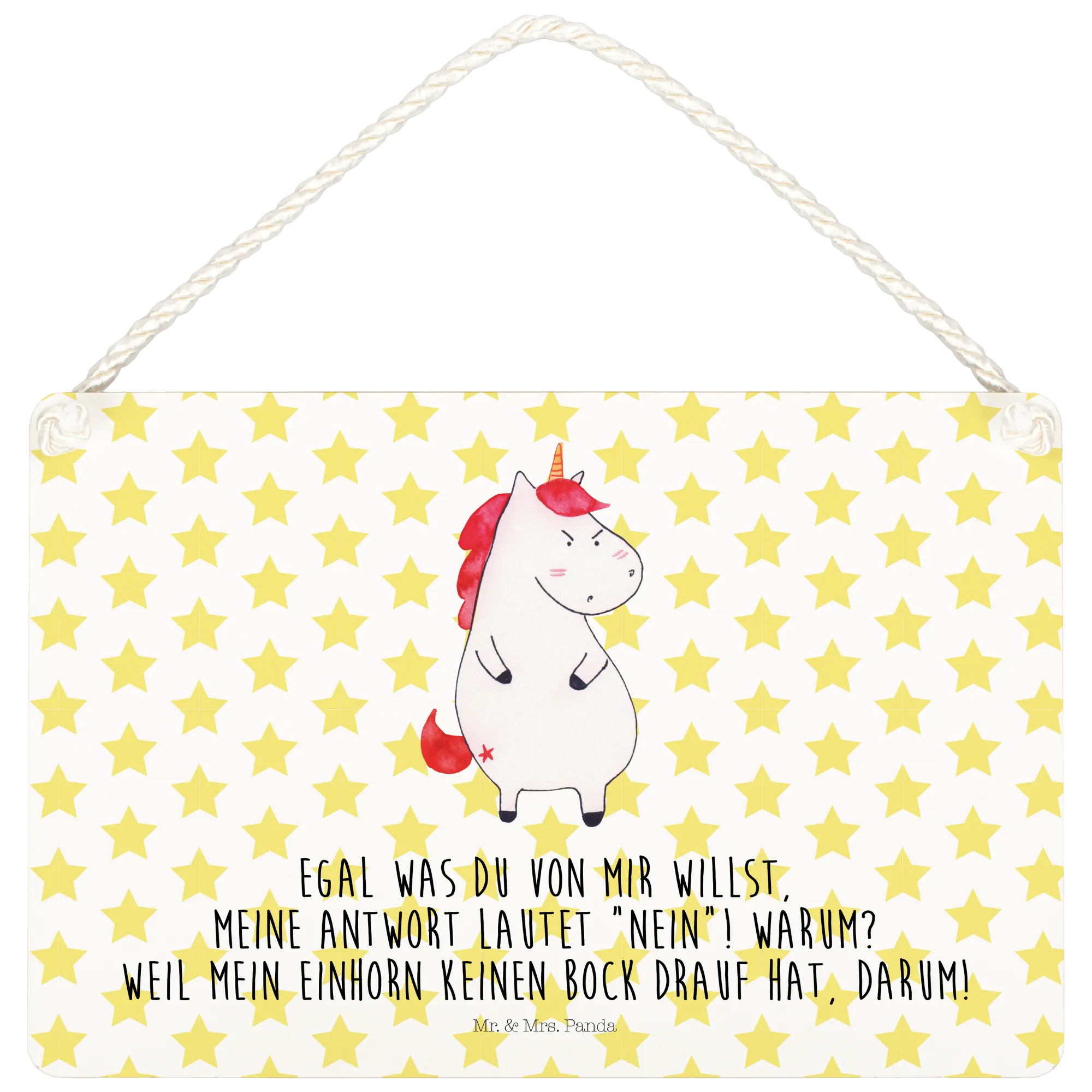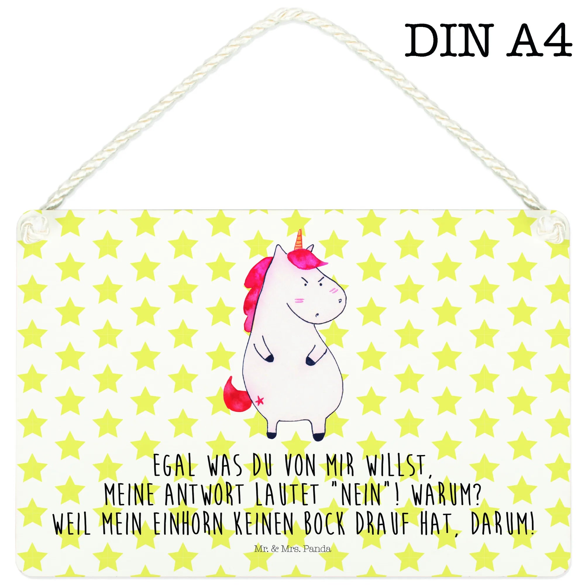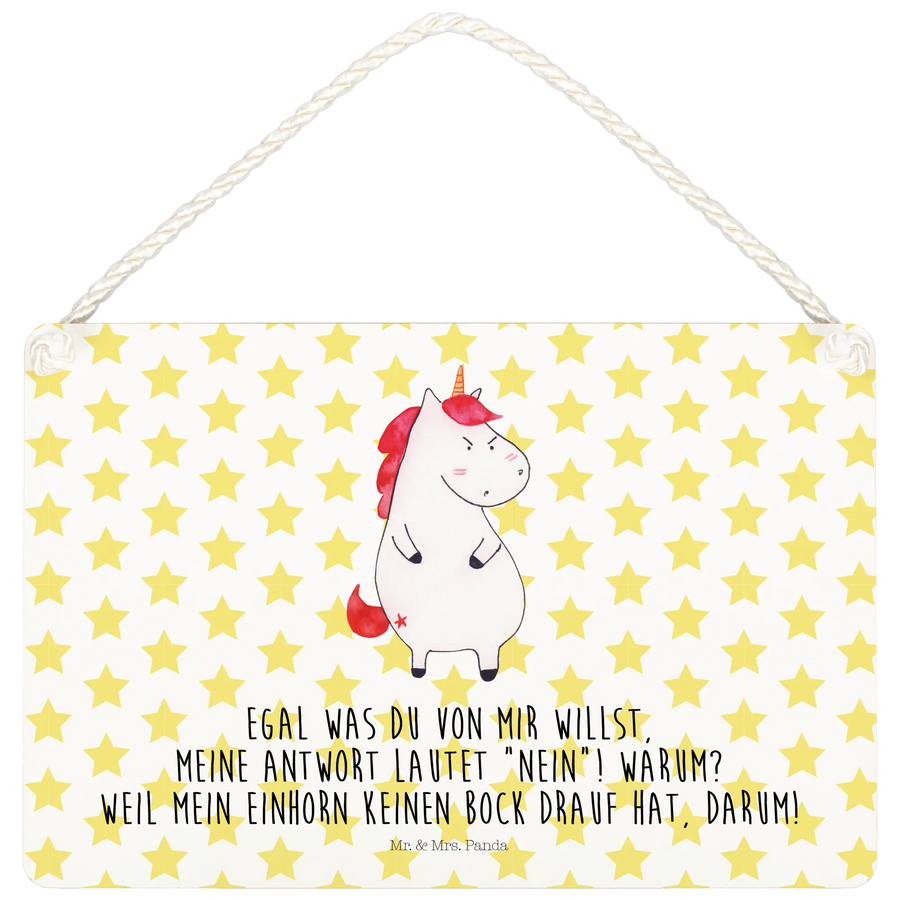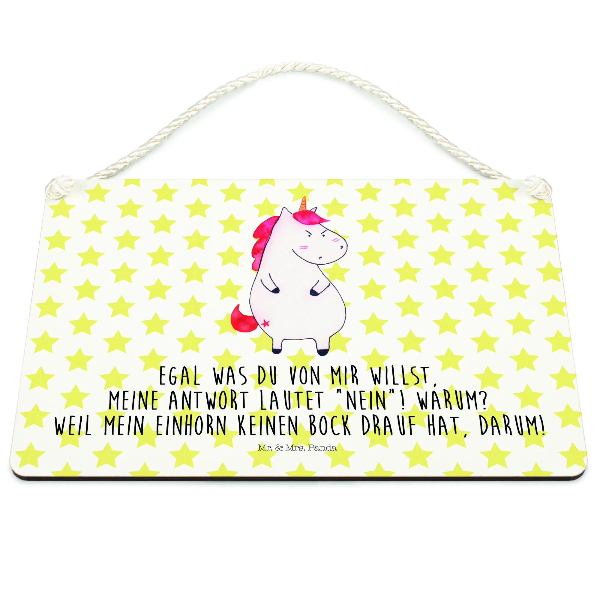 Suchst du nach einem ganz besonderen Geschenk für einen Einhorn-Liebhaber oder vielleicht einfach etwas Lustiges für dein Büro? Dann ist das Deko Schild mit dem wütenden Einhorn von Mr. & Mrs. Panda genau das Richtige für dich! Mit dem spritzigen Slogan "Egal was du von mir willst, meine Antwort lautet 'Nein'! Warum? Weil mein Einhorn keinen Bock drauf hat, darum!" bringt es nicht nur Farbe in jeden Raum, sondern sagt auch auf humorvolle Art, was wirklich Sache ist!