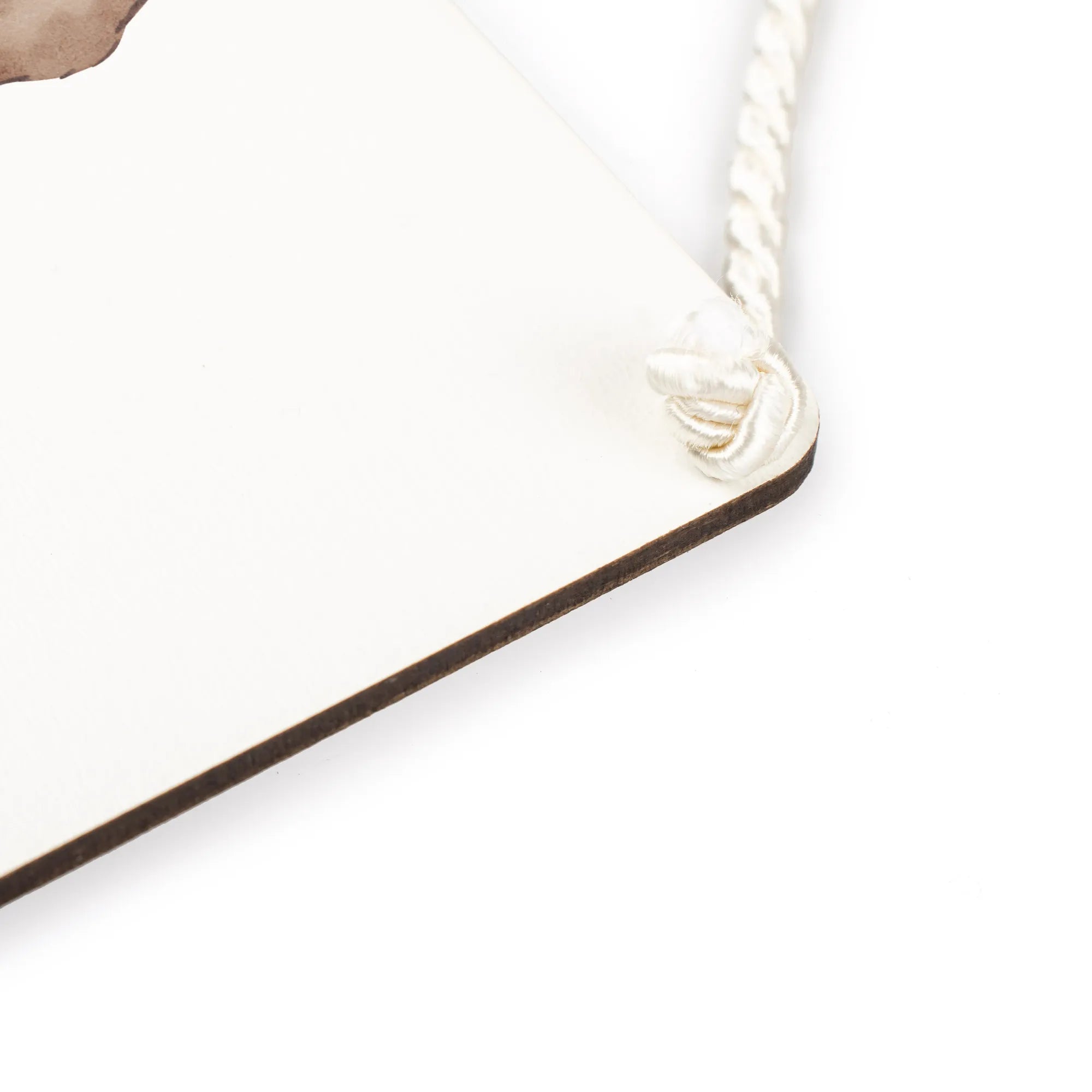 Das Schild hat die perfekte Größe von DIN A6 und ist aus hochwertiger beschichteter Holzfaser gefertigt, wodurch es langlebig und robust ist. Die wunderschöne gedrehte Kordel zur Aufhängung verleiht dem Schild das gewisse Etwas.