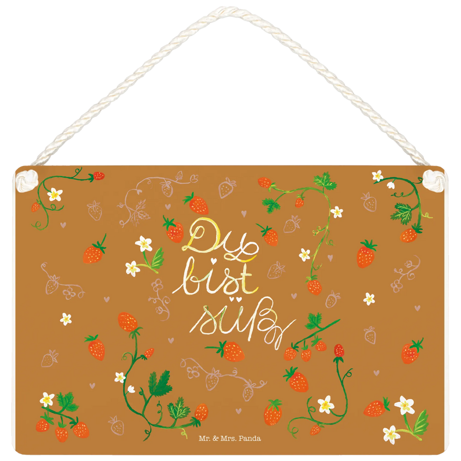 Das wunderschöne Deko Schild mit dem Motto "Du bist süß" und dem Design von süßen Erdbeeren ist das perfekte Geschenk für all die lieben Menschen in Deinem Leben. Dieses Schild aus der Wild & Free-Kollektion von Mr. & Mrs. Panda bringt mit seinem handgezeichneten Motiv den Frühling direkt in Dein Zuhause und sorgt für ein freundliches Ambiente. Ob für die Wand im Wohnzimmer oder als schöner Blickfang an der Tür, dieses Holzschild ist vielseitig einsetzbar und sorgt garantiert für ein Lächeln.