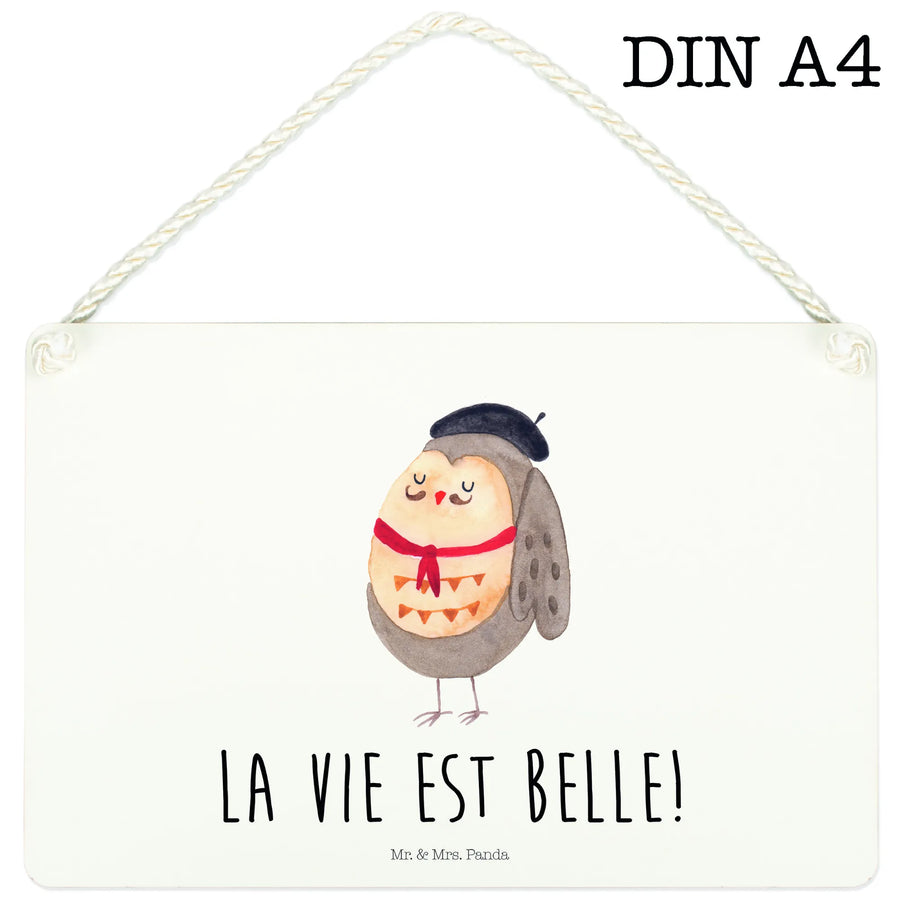 Entdecke unser einzigartiges Deko Schild mit der niedlichen Eule im französischen Look! Das Eulenmotiv von Mr. & Mrs. Panda bringt mit dem charmanten Spruch 'La vie est belle!' ein Stück Lebensfreude und die Schönheit des Lebens in dein Zuhause.