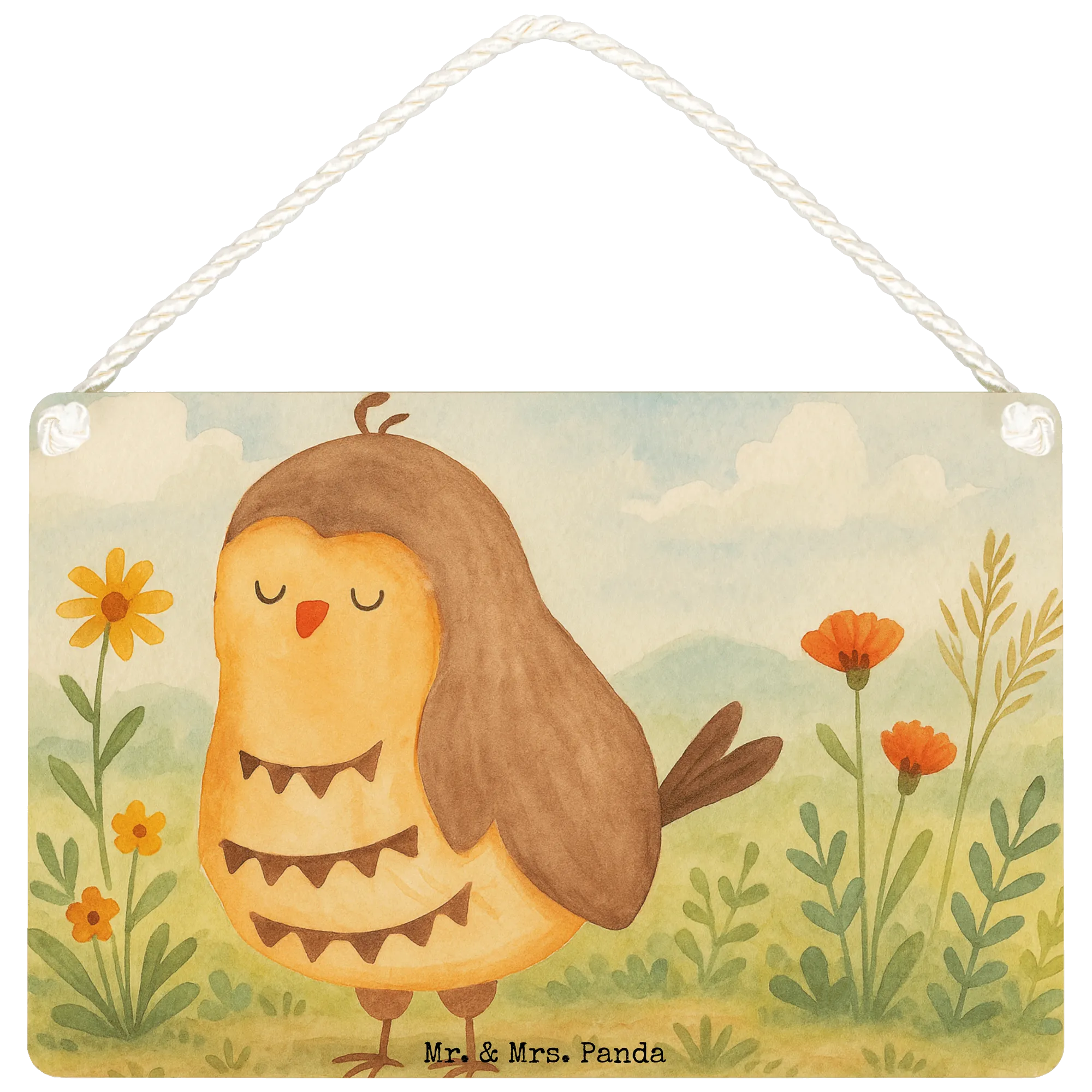 Deko Schild Eule Zufrieden Design - DIN A4 - mit Spruch