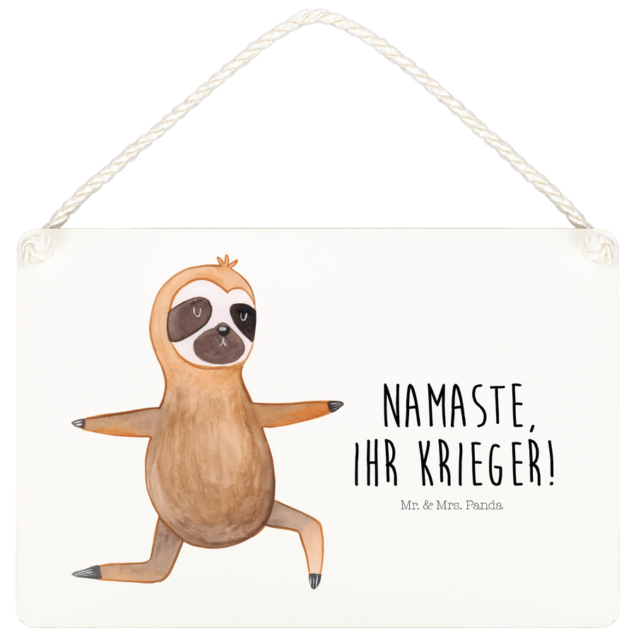 Das Deko Schild Faultier Yoga aus der Faultier-Kollektion von Mr. & Mrs. Panda ist das perfekte Geschenk für alle, die Entspannung und Gelassenheit lieben! Mit einem niedlichen Faultier, das in der Yoga-Position des Kriegers entspannt, bringt dieses Schild sofort gute Laune und positive Energie in dein Zuhause.