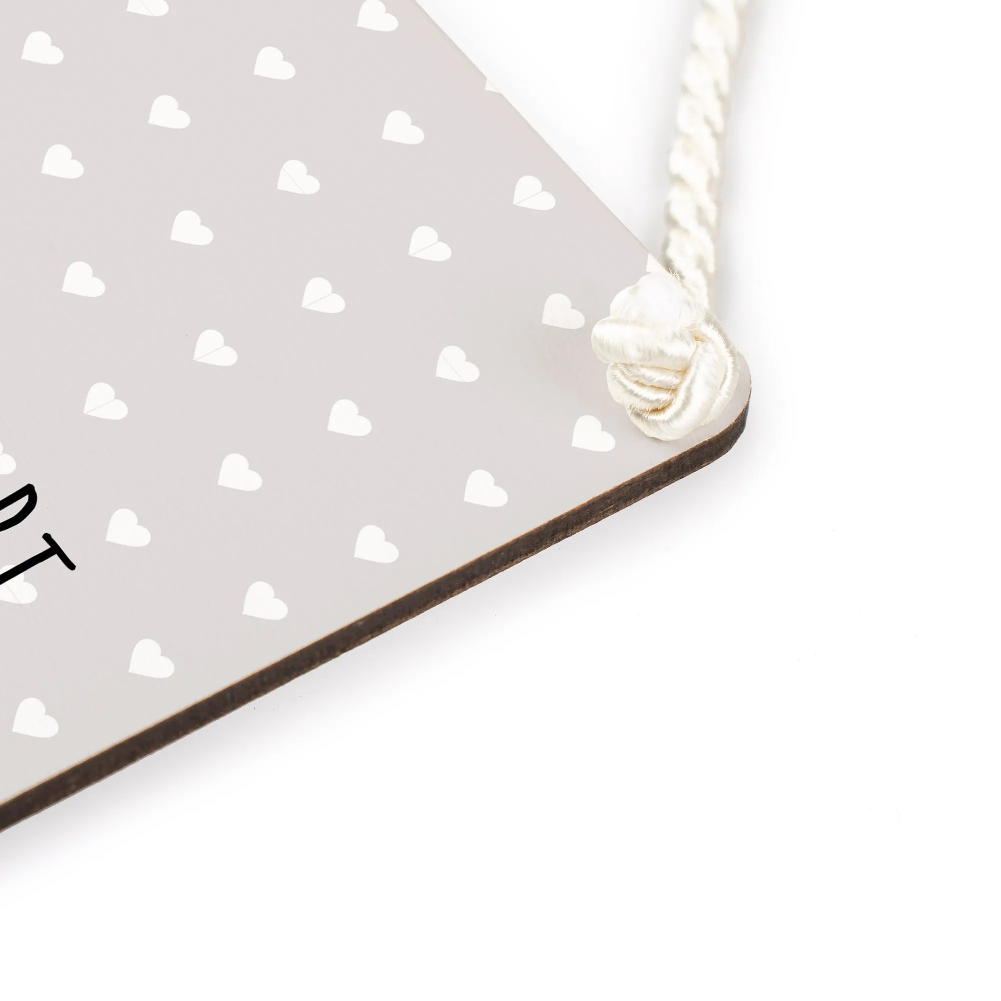 Praktisch und dekorativ: Die Oberfläche ist beschichtet und sorgt für langlebige, kräftige Farben. Die gedrehte Kordel zur Aufhängung ist gleichzeitig praktisch und dekorativ und verleiht dem Schild einen charmanten Vintage- und Landhausstil.
