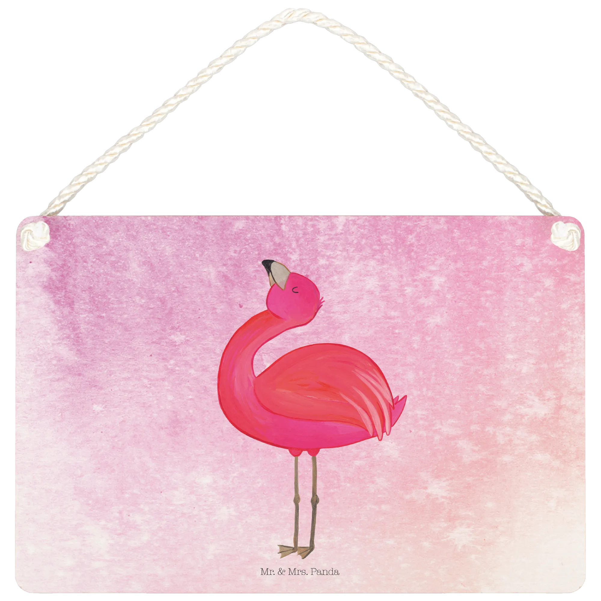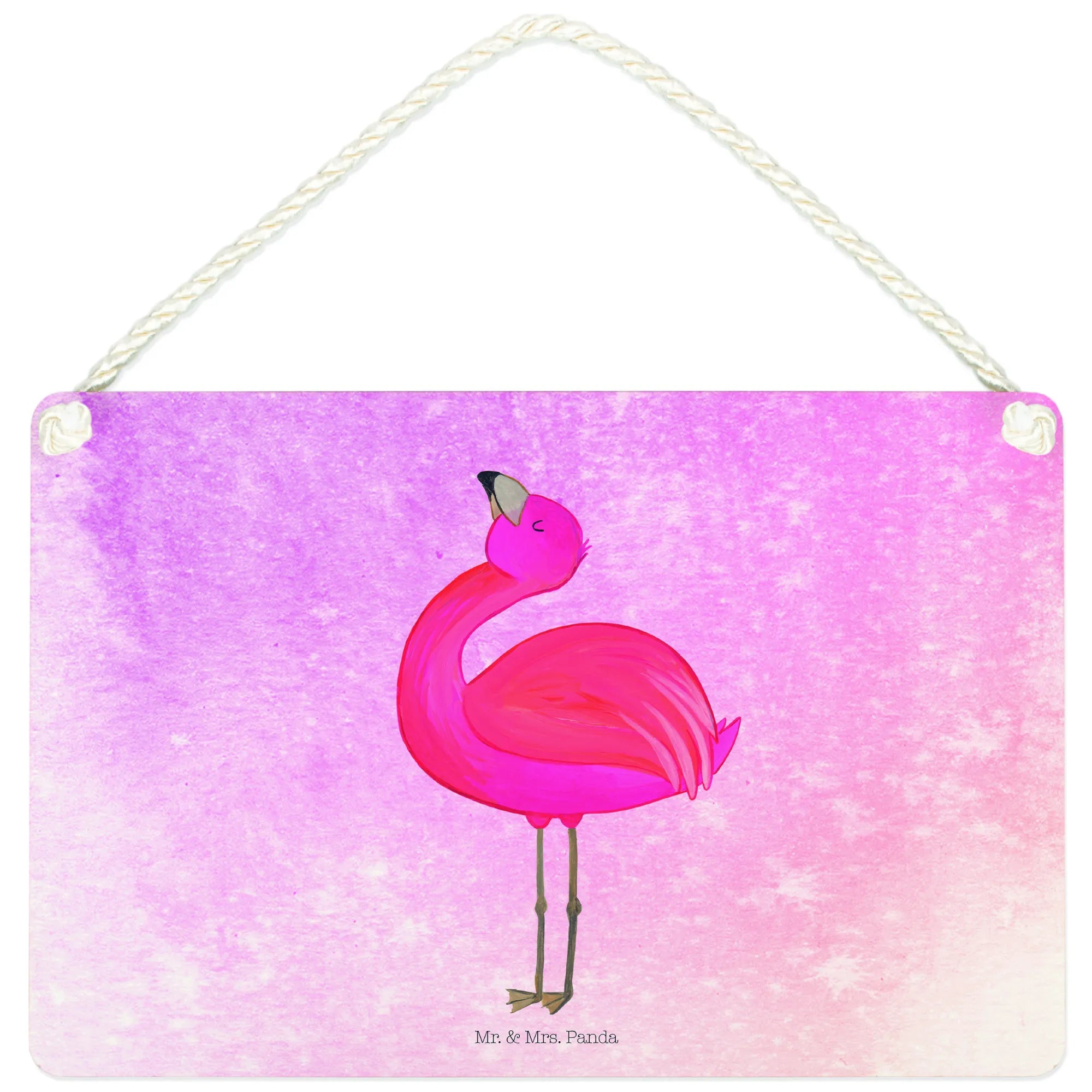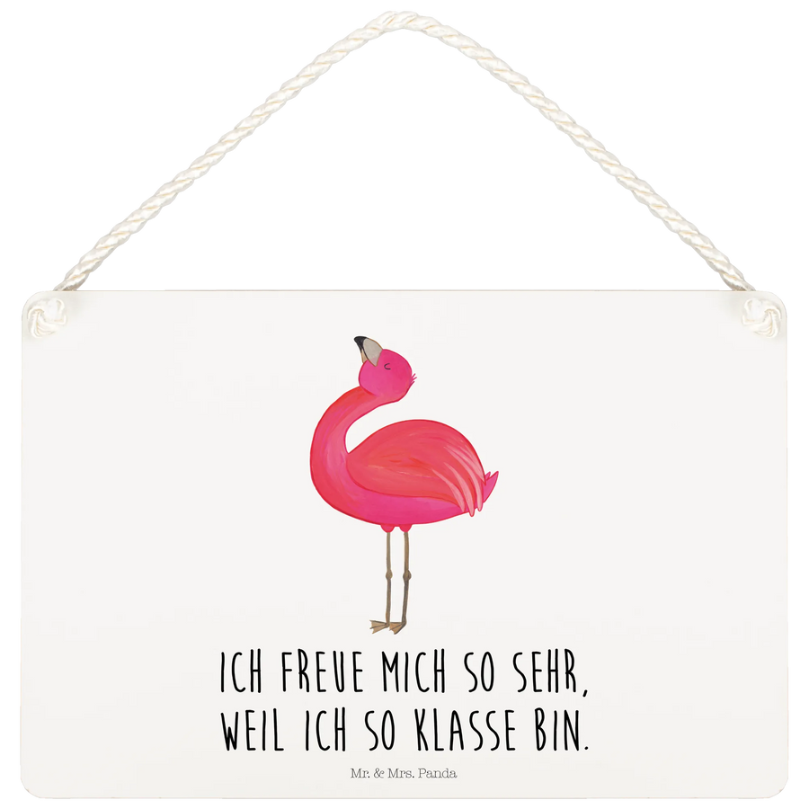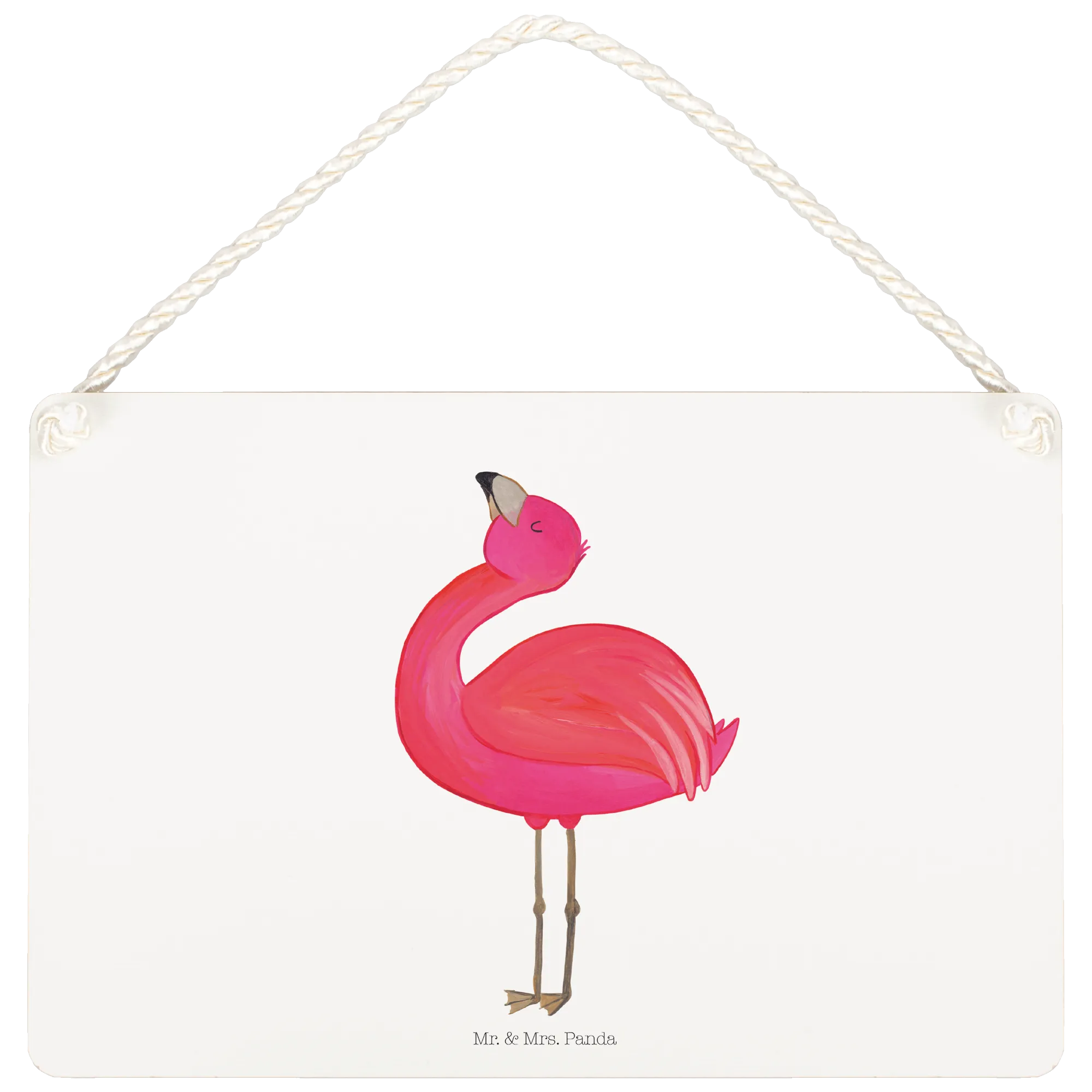 Mit dem wunderschönen, handgezeichneten Flamingo-Motiv von Mrs. Panda verkörpert es nicht nur Eleganz, sondern auch ein Stück Lebensfreude. Der Flamingo, mit hocherhobenem Kopf und geschwungenem Hals, strahlt Stolz und Anmut aus, und die verschiedenen Rosatöne verleihen dem Schild eine lebendige und harmonische Ausstrahlung.