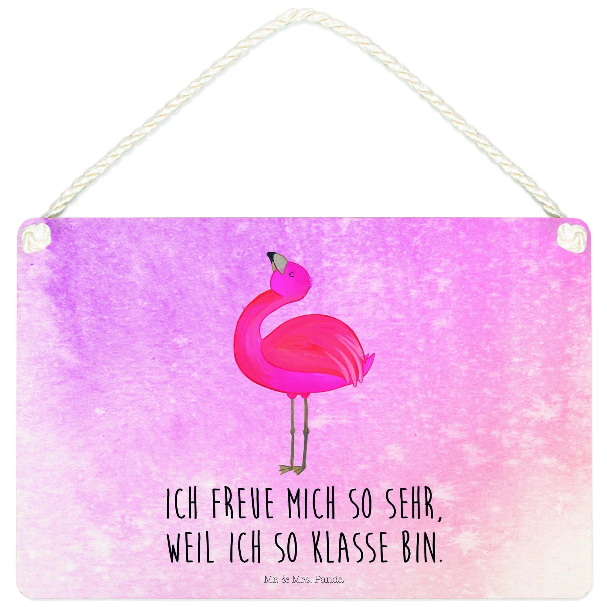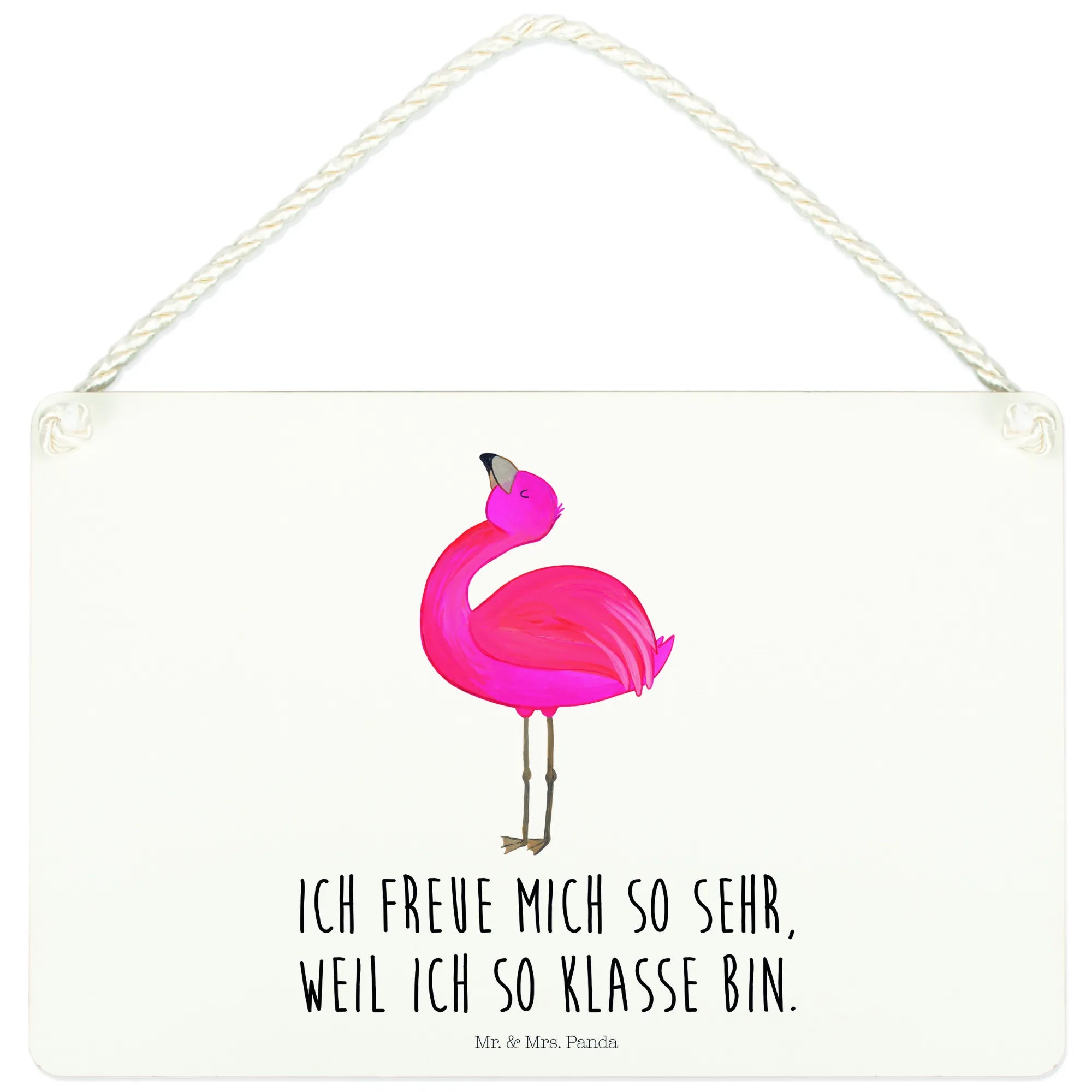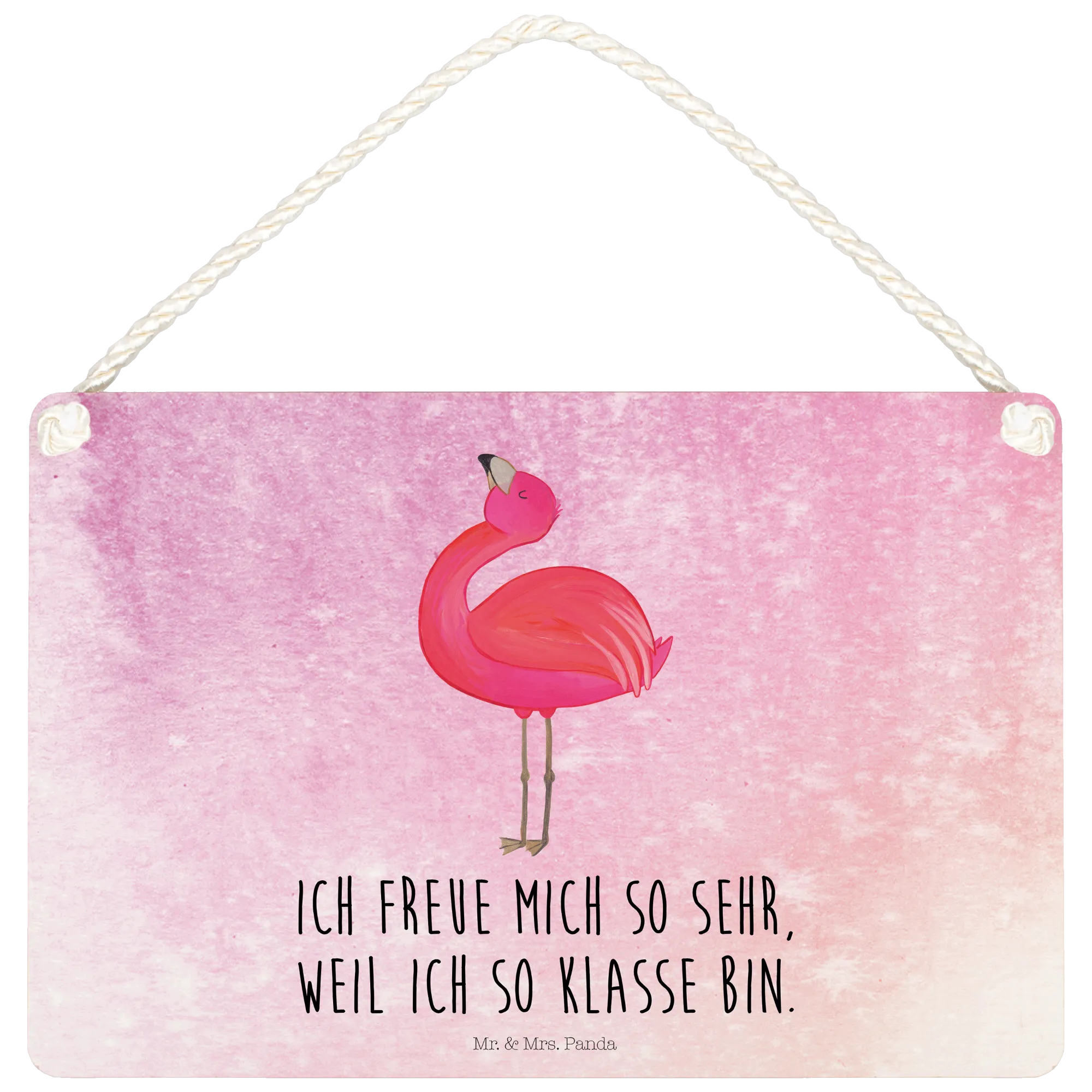 Mit dem wunderschönen, handgezeichneten Flamingo-Motiv von Mrs. Panda verkörpert es nicht nur Eleganz, sondern auch ein Stück Lebensfreude. Der Flamingo, mit hocherhobenem Kopf und geschwungenem Hals, strahlt Stolz und Anmut aus, und die verschiedenen Rosatöne verleihen dem Schild eine lebendige und harmonische Ausstrahlung.