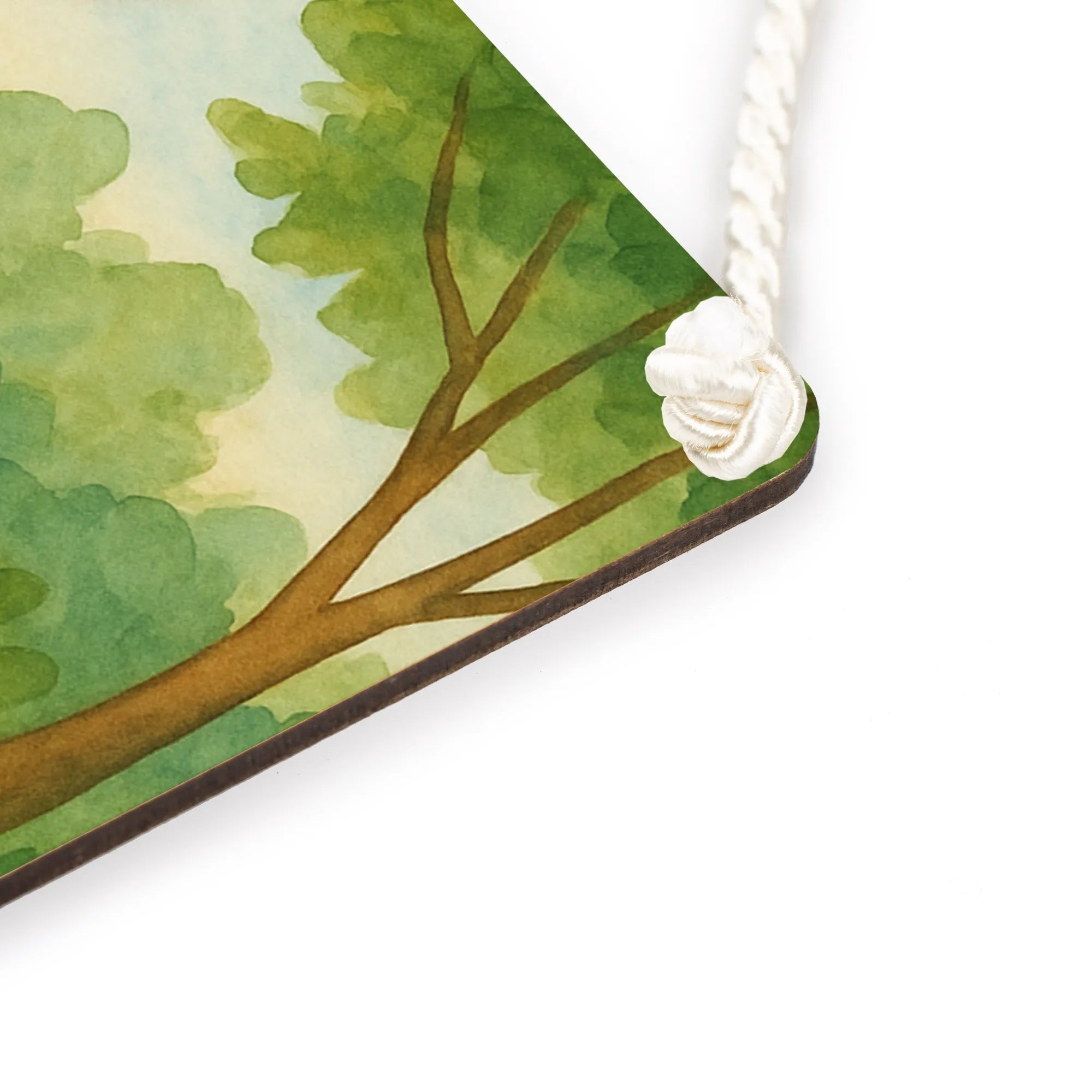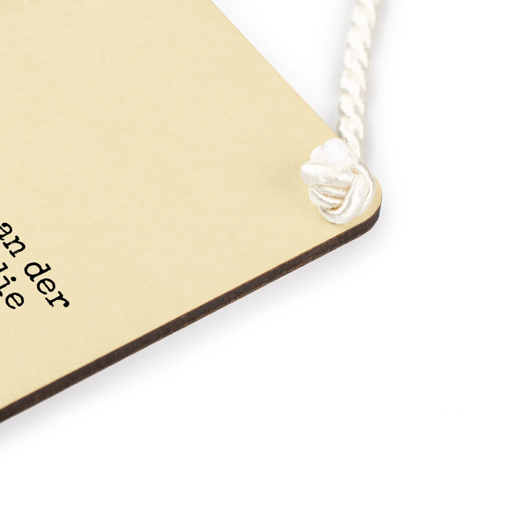 Langlebiger Druck und praktische Aufhängung: Die Oberfläche ist beschichtet, sodass der Druck lange strahlt. Die wunderschön gedrehte Kordel zur Aufhängung macht das Hängeschild sofort einsatzbereit – einfach aufhängen und Freude haben.