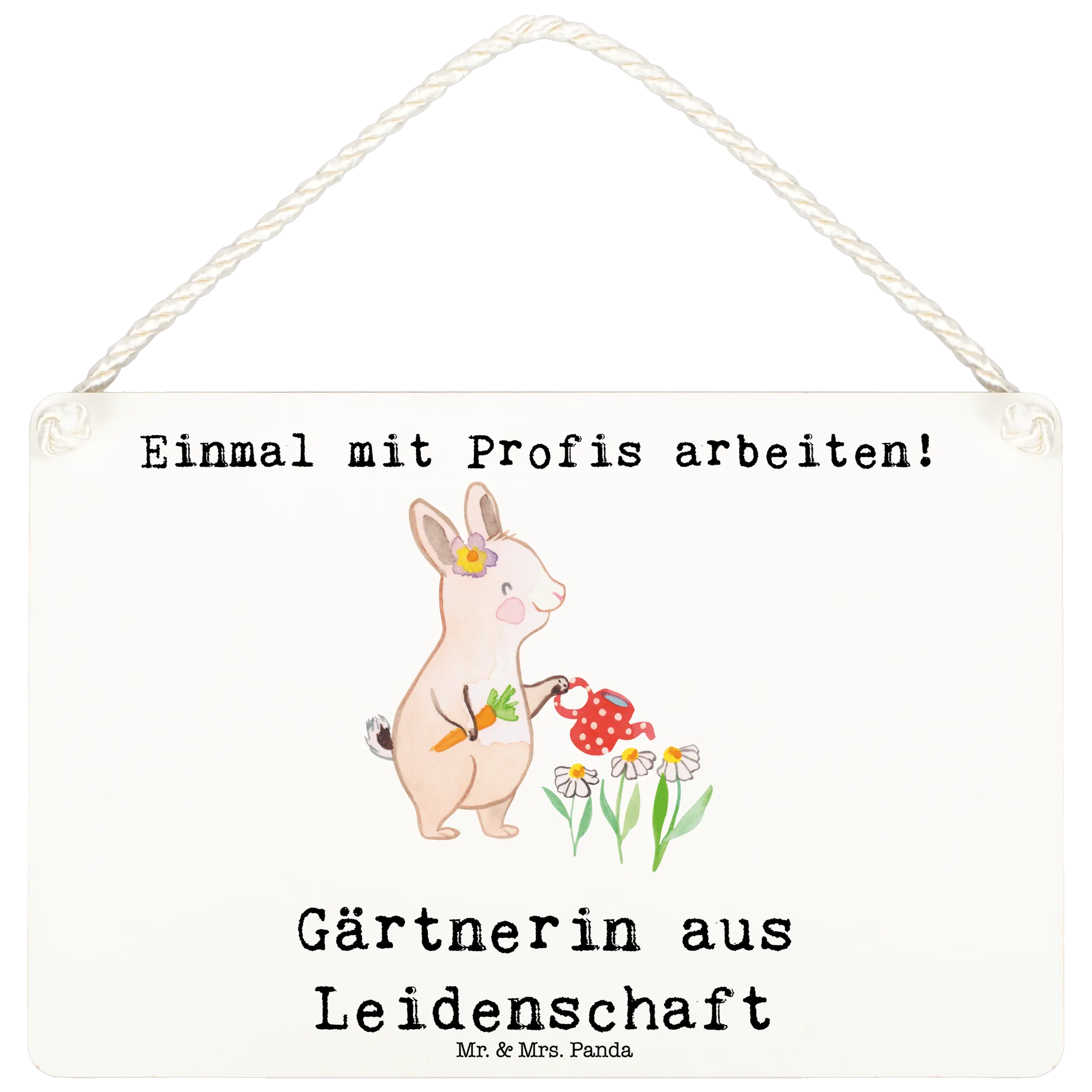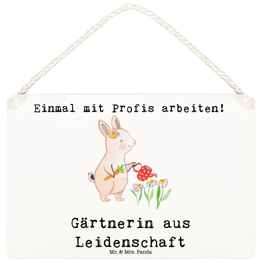 Dieses Schild stammt aus der liebevollen Berufe Kollektion von Mr. & Mrs. Panda, die mit tollen Designs und Sprüchen überzeugt, die das Herz erwärmen. Überrasche deine Freunde, Kollegen oder Familienmitglieder mit einem persönlichen Geschenk, das zeigt, dass du an sie denkst. Mit dem Schild "Gärtnerin aus Leidenschaft" holst du das Lächeln ins Gesicht deiner Lieben.