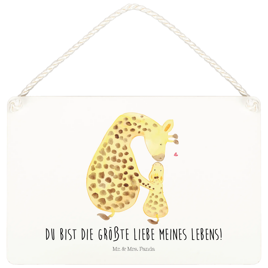 Das Deko Schild "Giraffe mit Kind" aus der Afrika Kollektion von Mr. & Mrs. Panda ist das perfekte Geschenk für alle, die das Besondere lieben. Es zeigt eine süße Giraffe, die ihr kleines Giraffenbaby liebevoll auf den Kopf küsst. Damit wird nicht nur jede Wand zum Blickfang, sondern es bringt auch eine Portion Liebe und Freude in dein Zuhause!