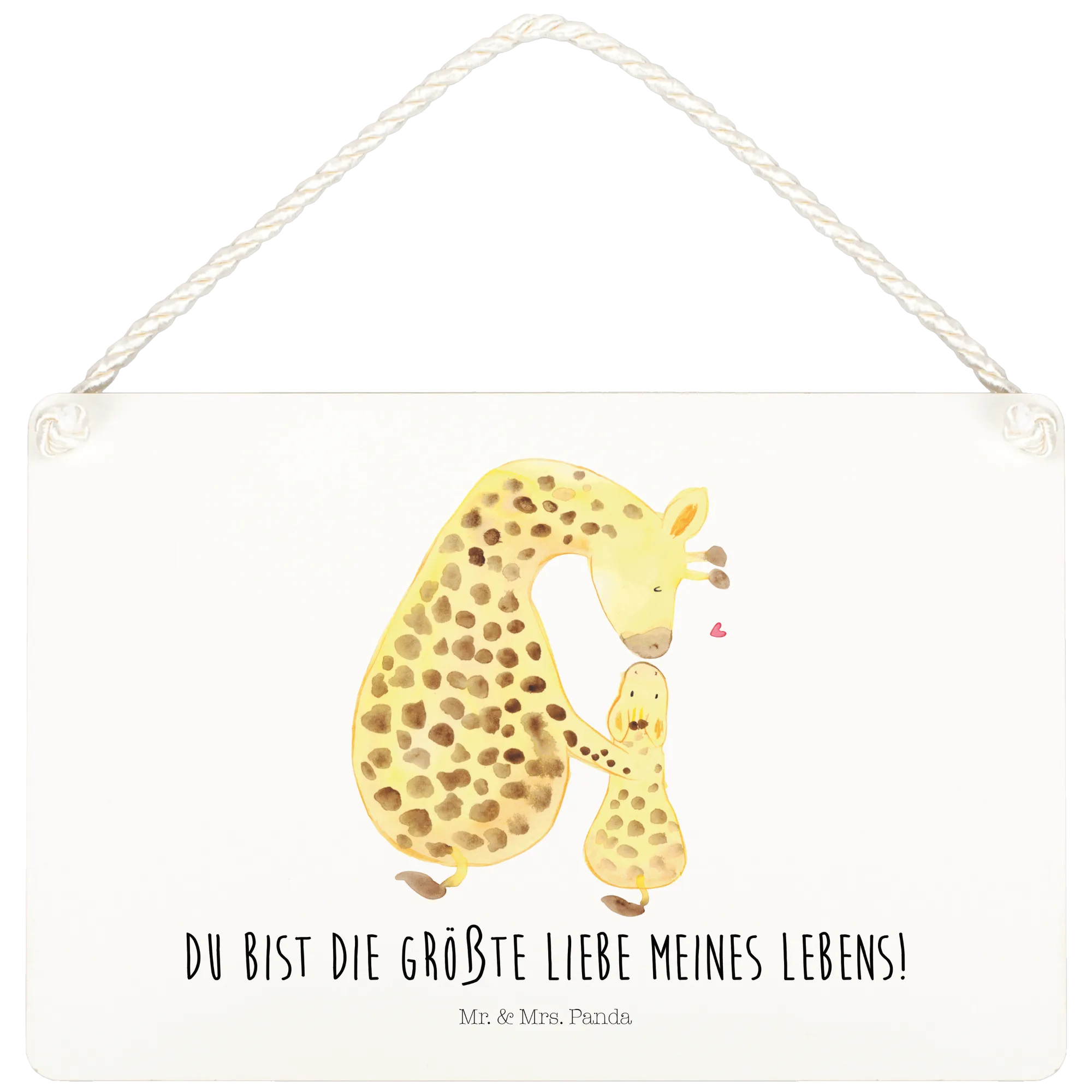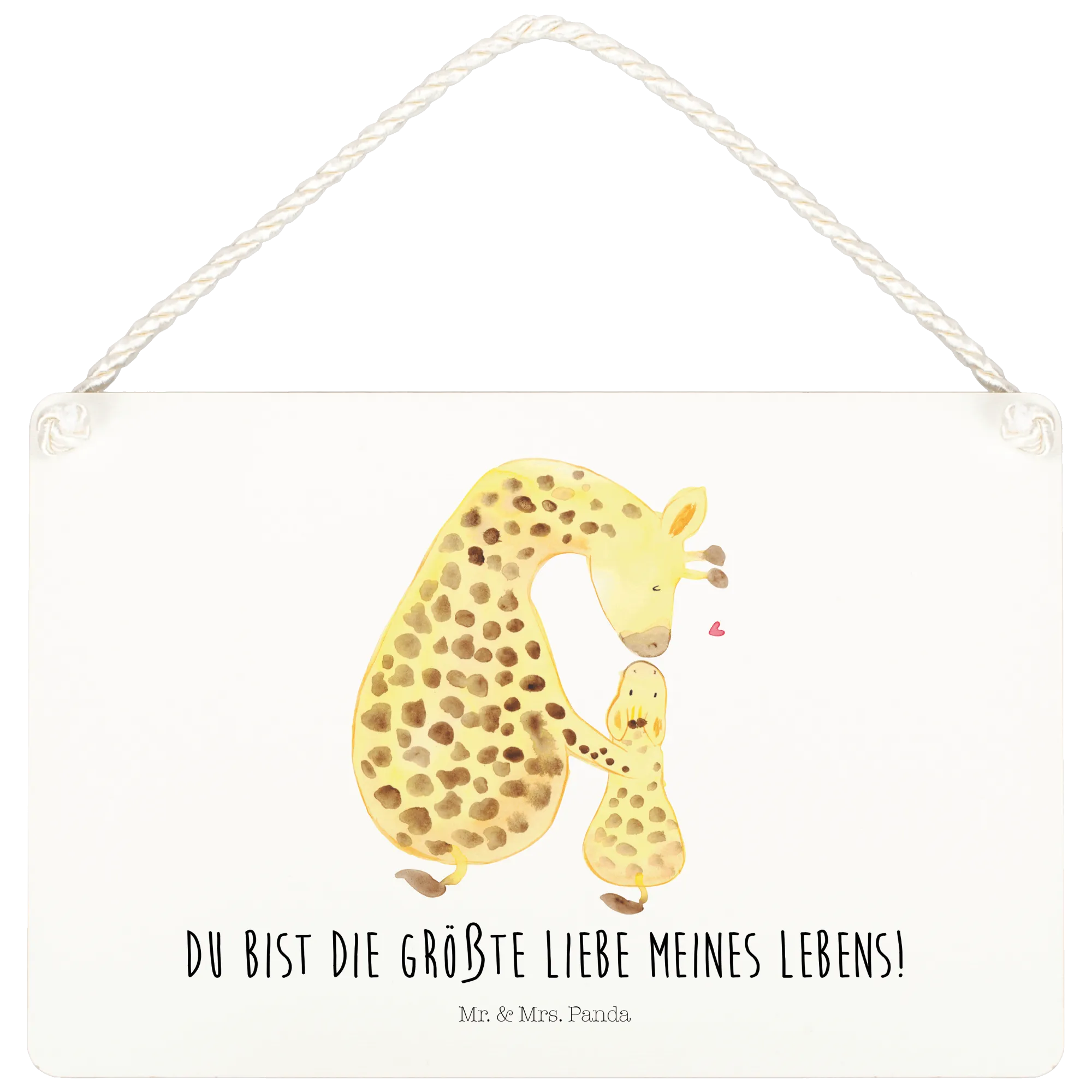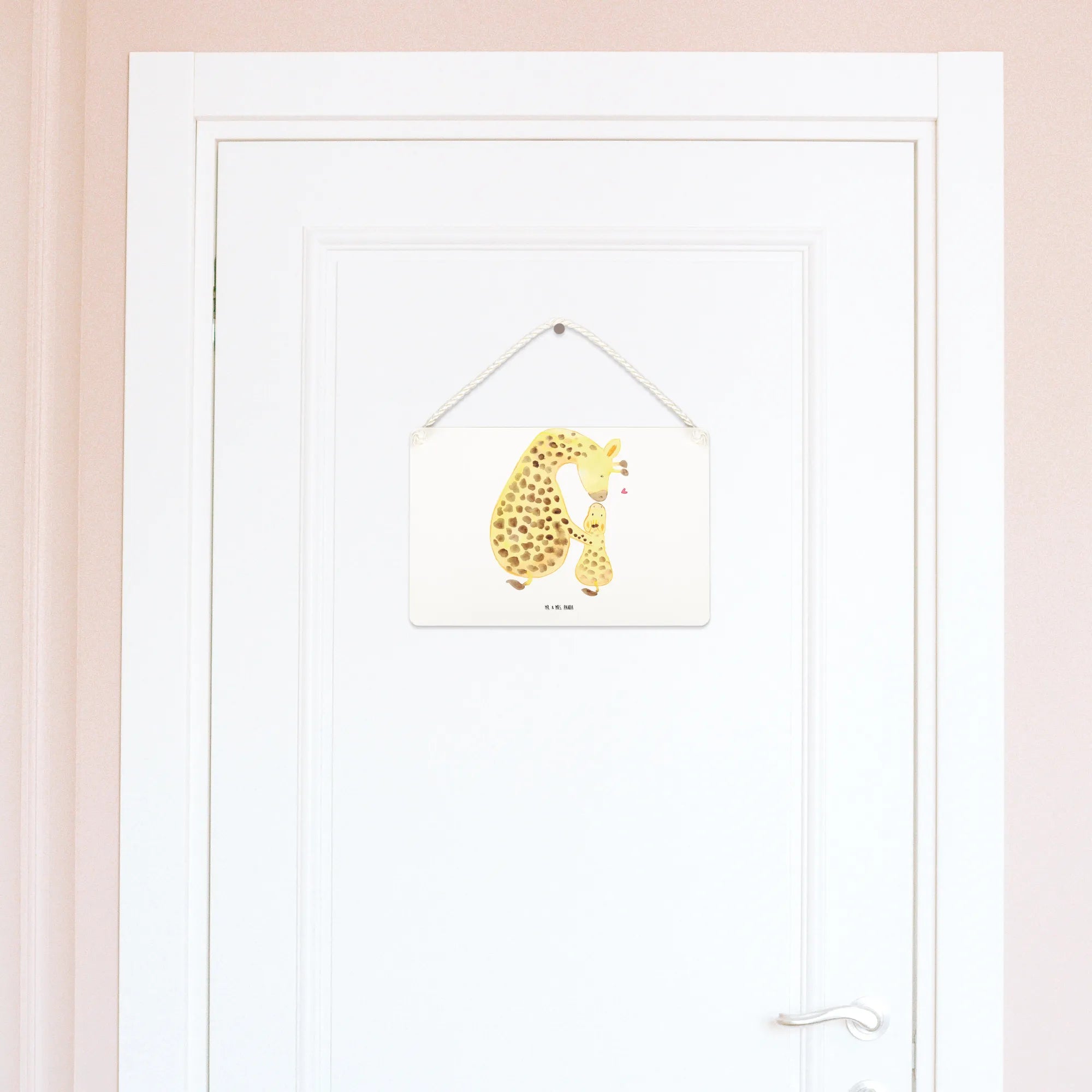 Das Deko Schild "Giraffe mit Kind" aus der Afrika Kollektion von Mr. & Mrs. Panda ist das perfekte Geschenk für alle, die das Besondere lieben. Es zeigt eine süße Giraffe, die ihr kleines Giraffenbaby liebevoll auf den Kopf küsst. Damit wird nicht nur jede Wand zum Blickfang, sondern es bringt auch eine Portion Liebe und Freude in dein Zuhause!