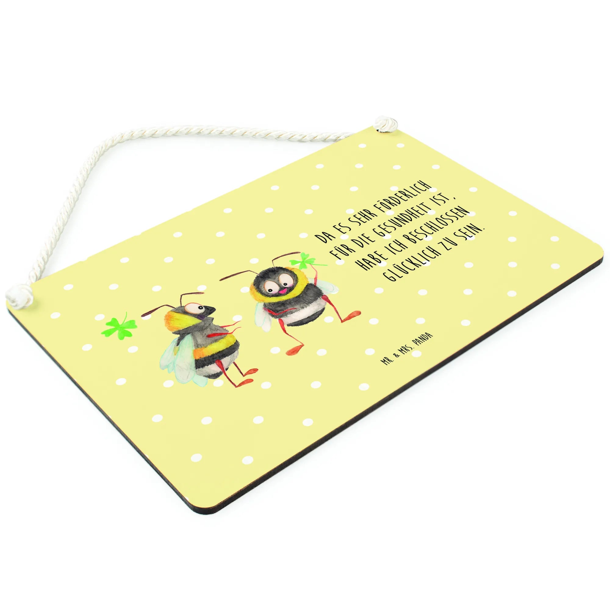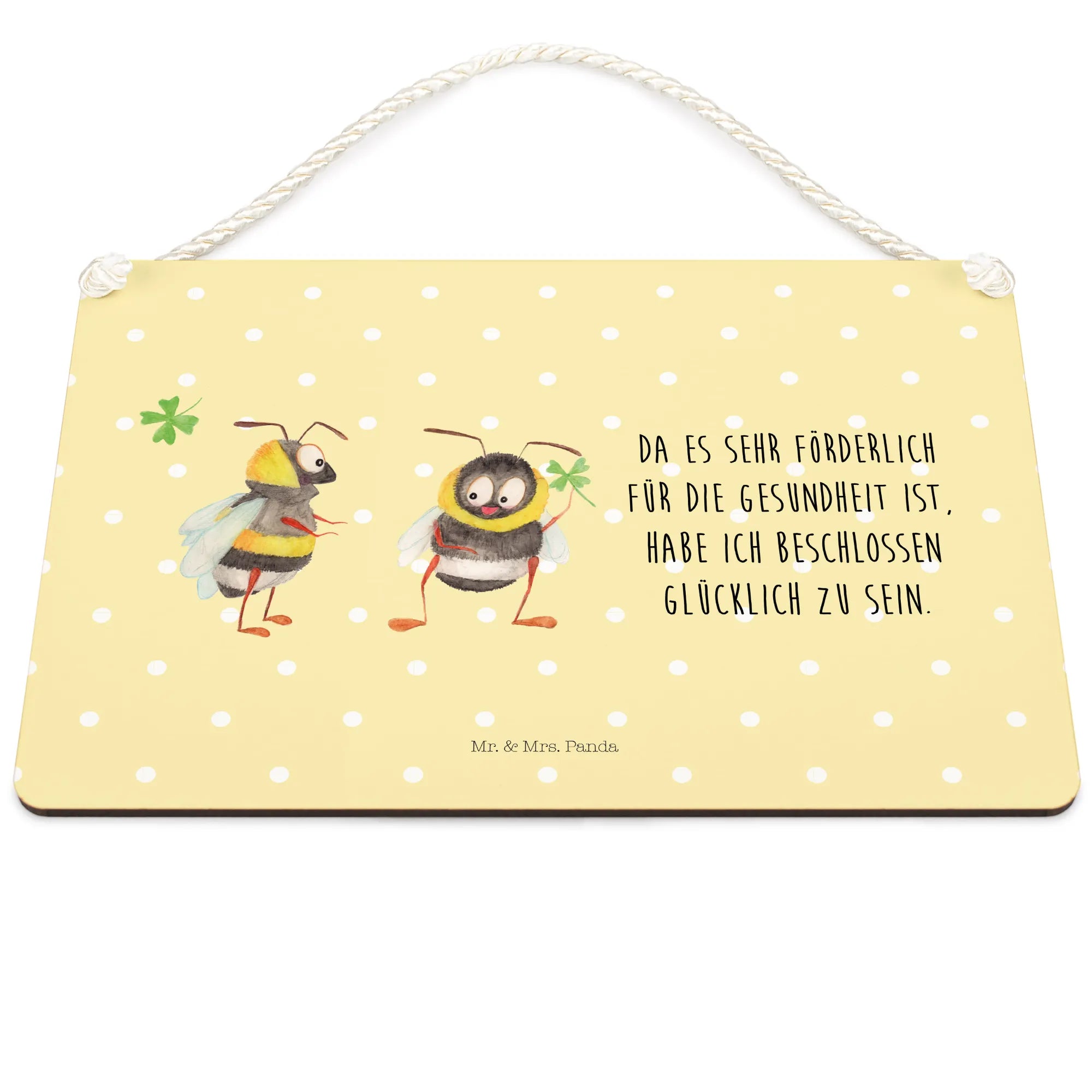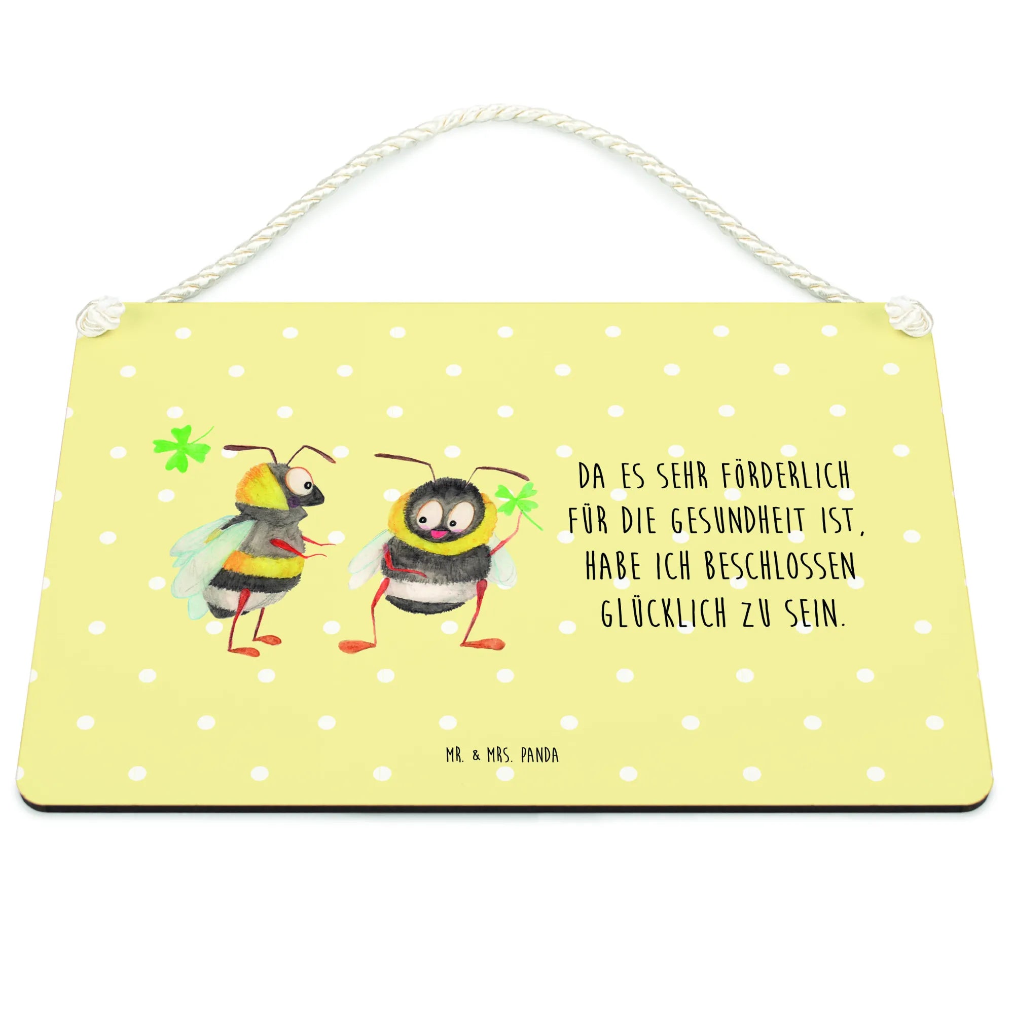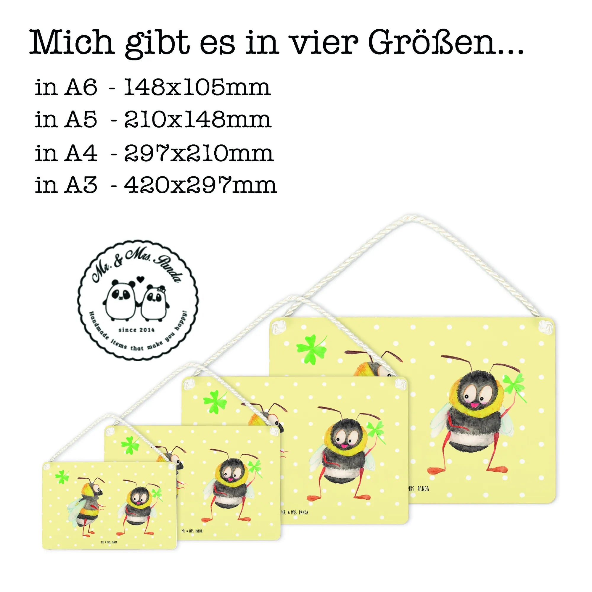 Das Deko Schild mit dem bezaubernden Motiv "Hummeln mit Kleeblatt" von Mr. & Mrs. Panda ist das perfekte Geschenk für all jene, die ihr Zuhause mit etwas Liebe und Positivität verschönern möchten. Ob als Hingucker an der Tür oder als Wandschild, dieses edle Holzschild bringt fröhliche Stimmung in jede Ecke.