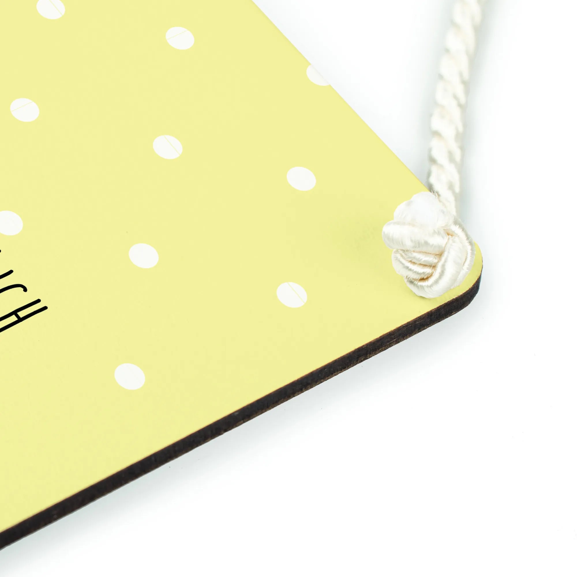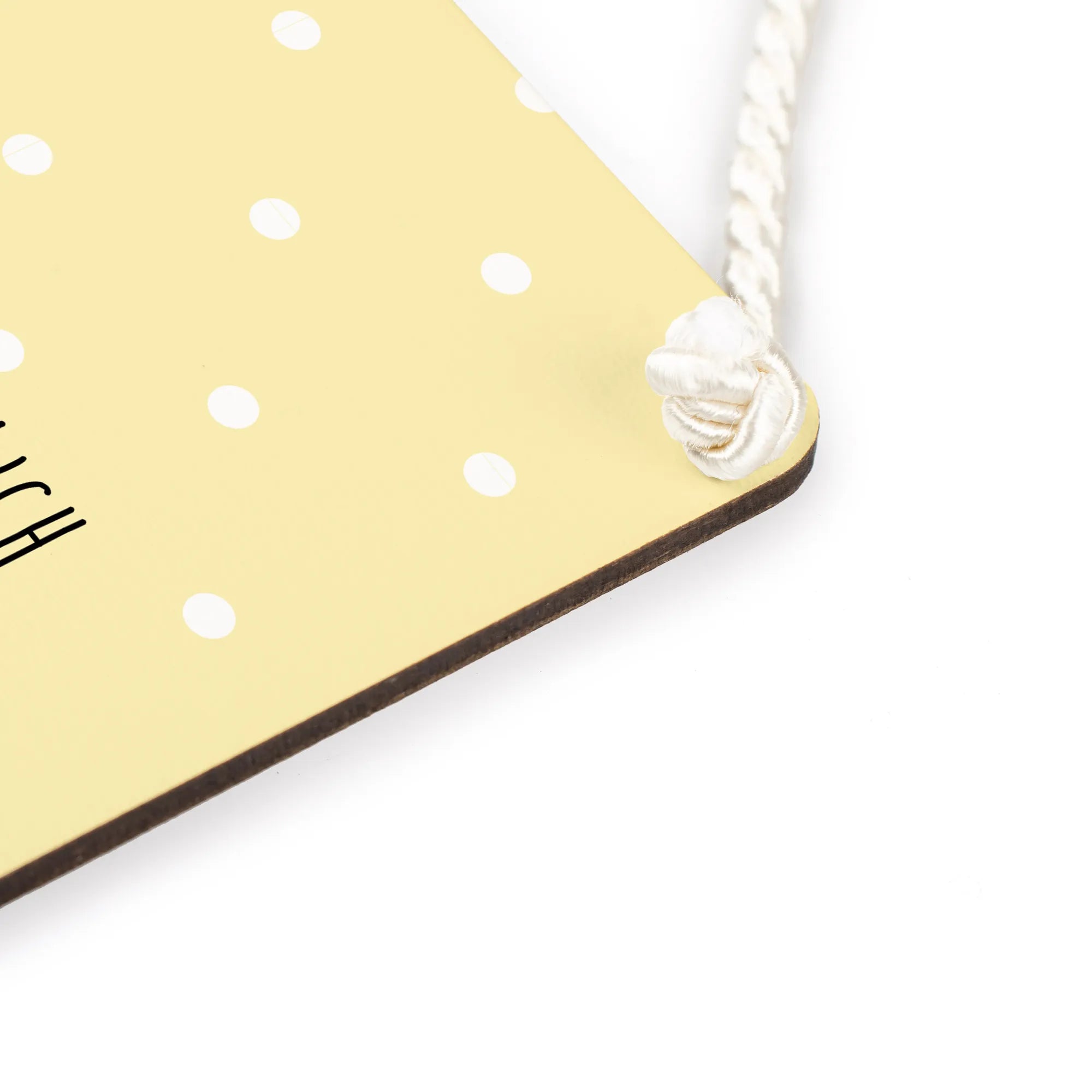 Das Deko Schild eignet sich perfekt zur Dekoration deiner Tür oder Wand, egal ob im Wohnzimmer, Schlafzimmer oder dem Eingangsbereich. Die lebendige gelbe Hintergrundfarbe und das hochwertige Material aus beschichteter Holzfaser sorgen dafür, dass das Schild sowohl langlebig als auch ansprechend bleibt.