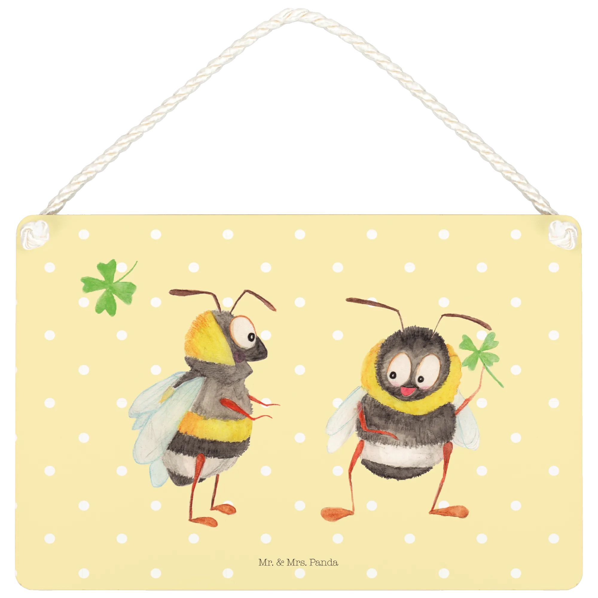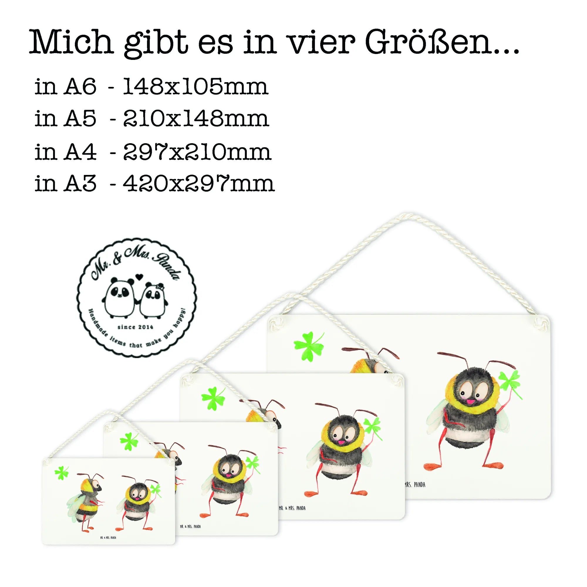 Dieses wunderschöne Schild zeigt zwei süße Hummeln, die sich gegenüberstehen und gemeinsam ein Kleeblatt halten. Es ist der perfekte Ausdruck von Glück, Treue und Verbundenheit zu Deinem Lieblingsmenschen.