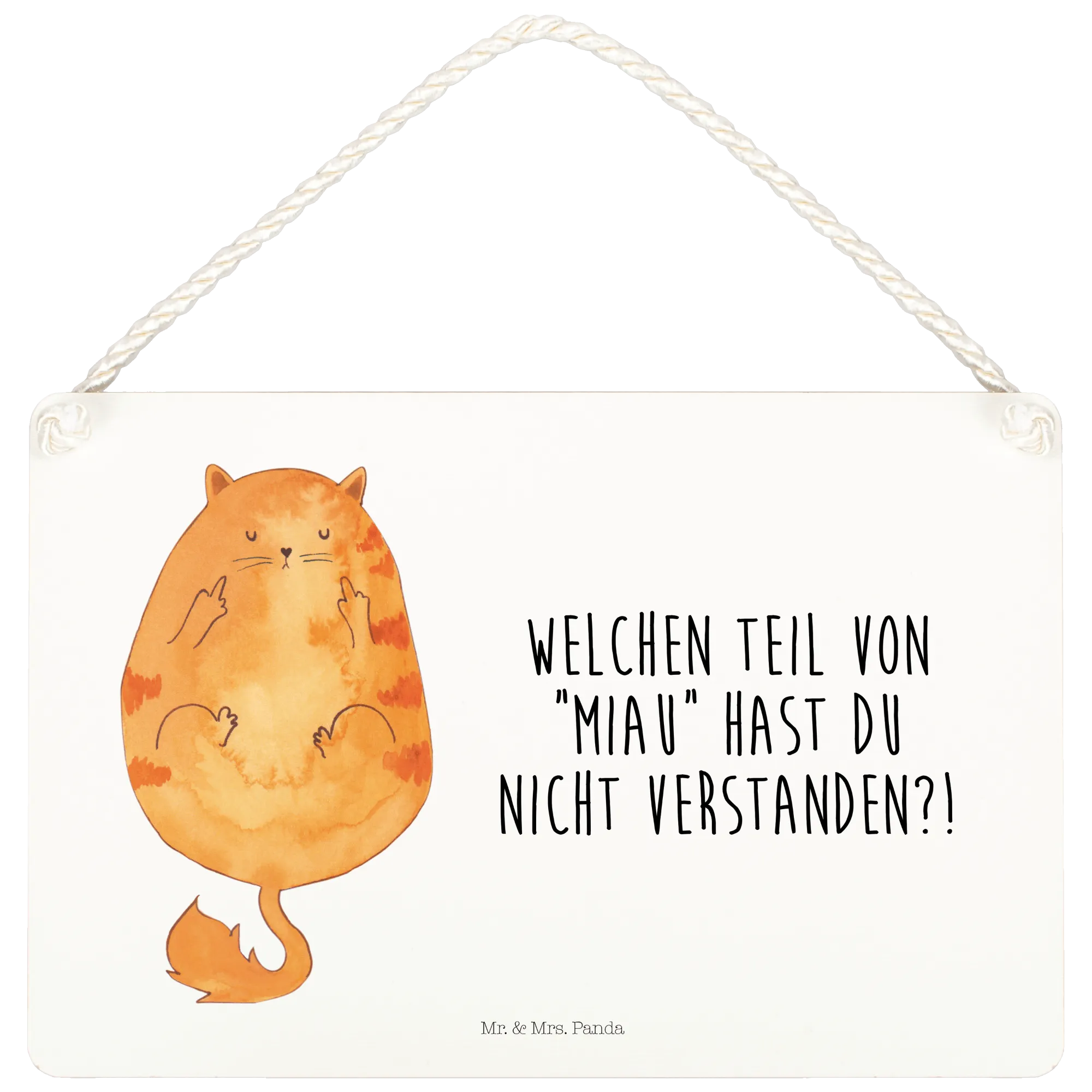 Entdecke unser Deko Schild "Katze Mittelfinger" aus der exklusiven Katzen - Kollektion von Mr. & Mrs. Panda! Dieses entzückende Schild ist mehr als nur ein einfacher Wandschmuck, es ist ein Ausdruck deines Katzenliebhaber-Herzens. Mit dem frechen Motiv einer Katze, die ihren kleinen Mittelfinger zeigt, und dem lustigen Spruch "Welchen Teil von 'Miau' hast du nicht verstanden?!", zaubert es jedem ein Lächeln ins Gesicht.