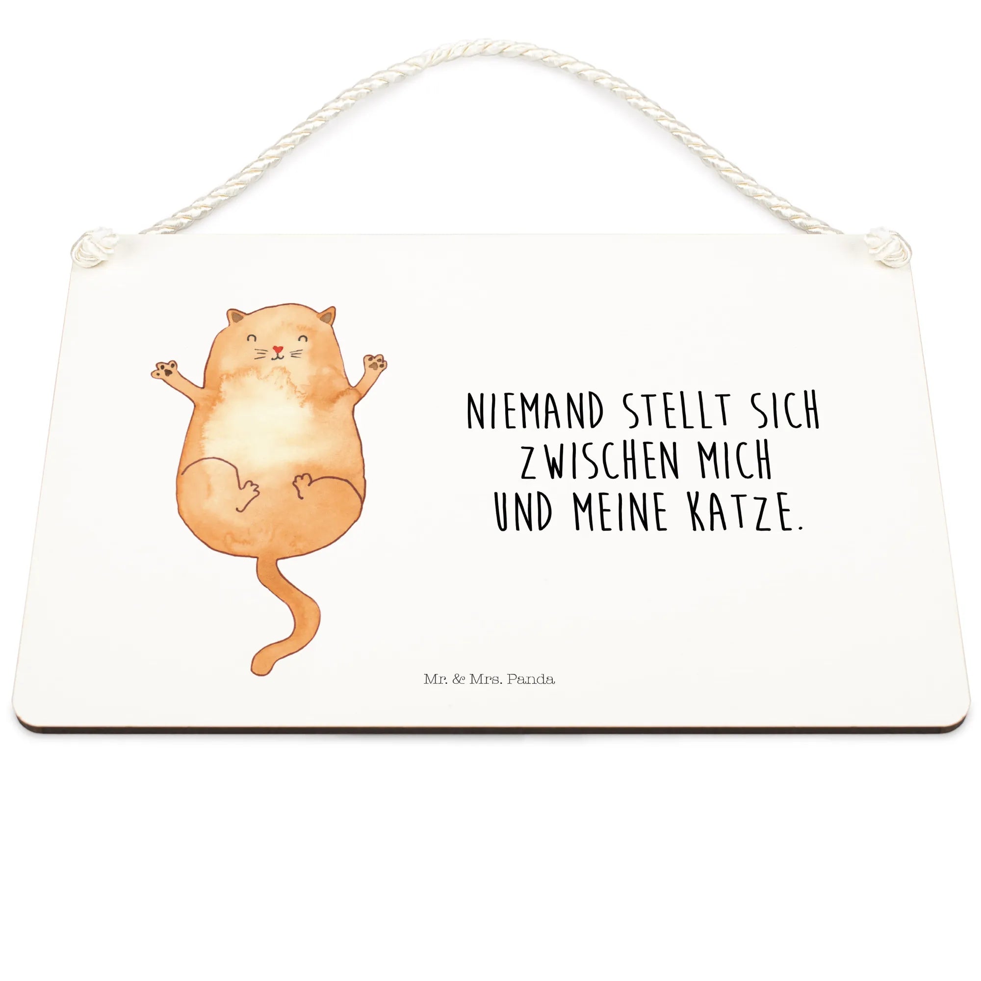 Das Deko Schild 'Katzen Umarmen' von Mr. & Mrs. Panda ist das perfekte Geschenk für Katzenliebhaber und alle, die ihre Liebe zu diesen wundervollen Geschöpfen ausdrucksvoll im Zuhause zeigen möchten. Egal ob für Freunde, Familie oder Dich selber – dieses Schild bringt ein Lächeln auf die Lippen. Es zeigt eine liebevoll gezeichnete Katze, die auf dem Rücken liegt und ihre Arme weit ausbreitet, so als wolle sie jeden herzlich umarmen. Mit dem Spruch 'Niemand stellt sich zwischen mich und meine Katze.' wird die Verbundenheit zu Deinem Lieblingshaustier auf charmante Weise unterstrichen.