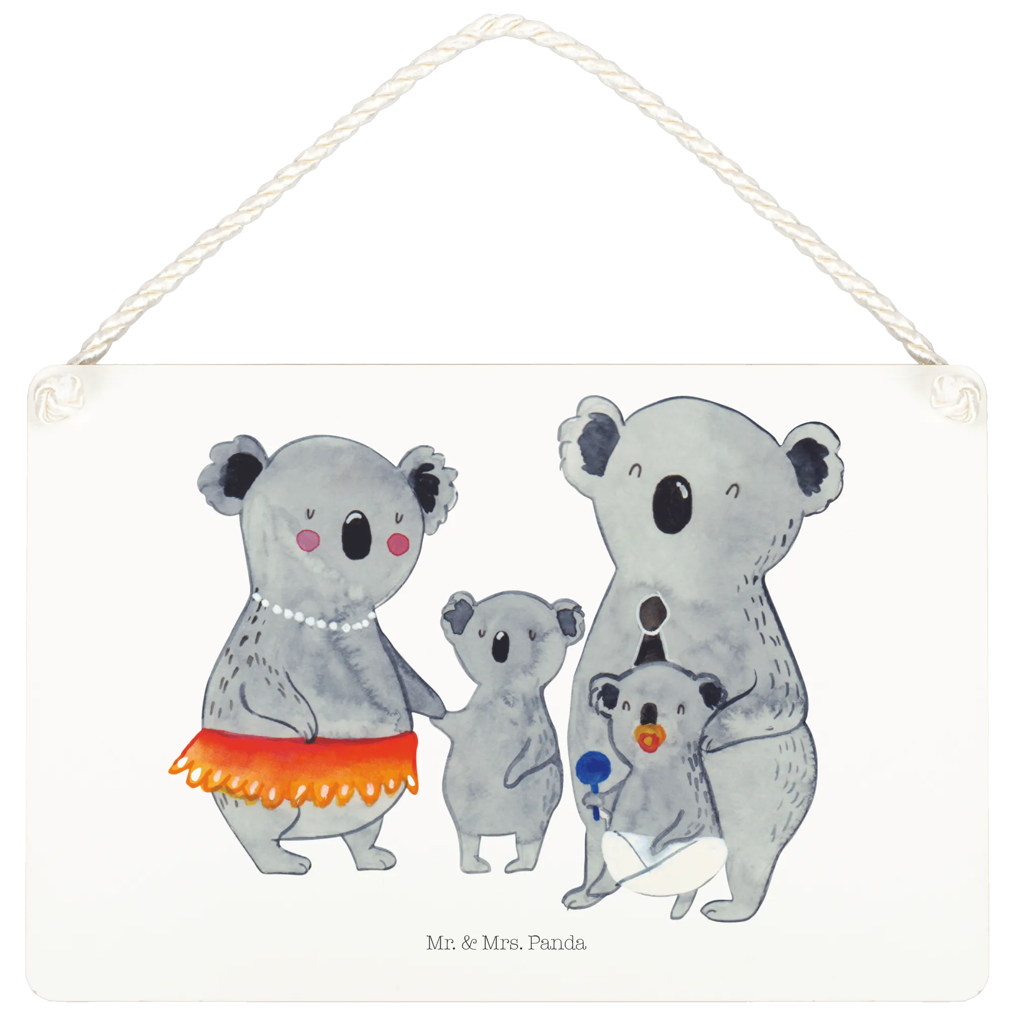 Das süße Deko Schild "Koala Familie" von Mr. & Mrs. Panda ist das perfekte Geschenk für alle, die Liebe und Geborgenheit in ihrer Familie schätzen. Mit dem charmanten Motiv einer fröhlichen Koala Familie, bestehend aus zwei großen und zwei kleinen Koalas, die menschliche Züge und Accessoires tragen, zaubert es jedem ein Lächeln ins Gesicht.