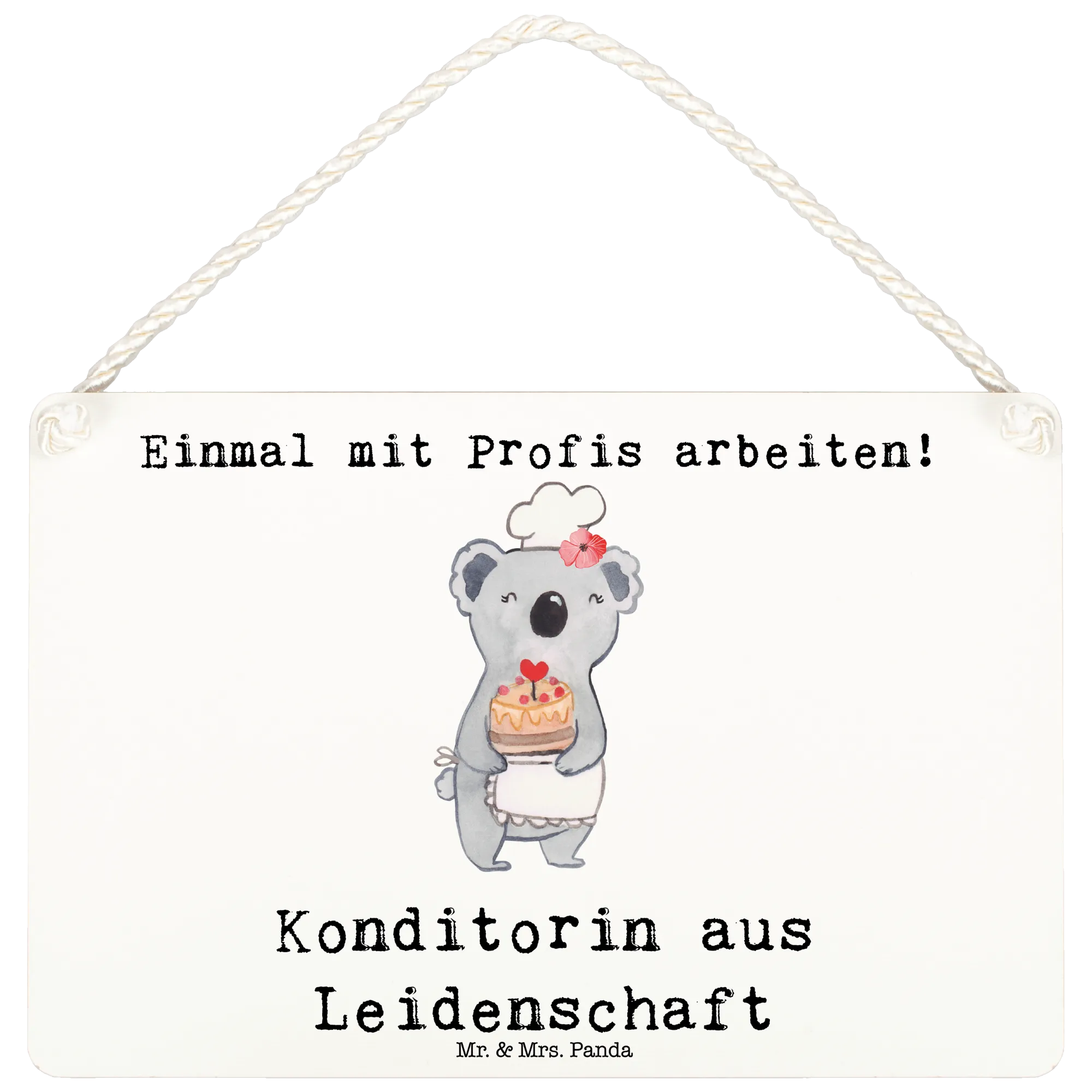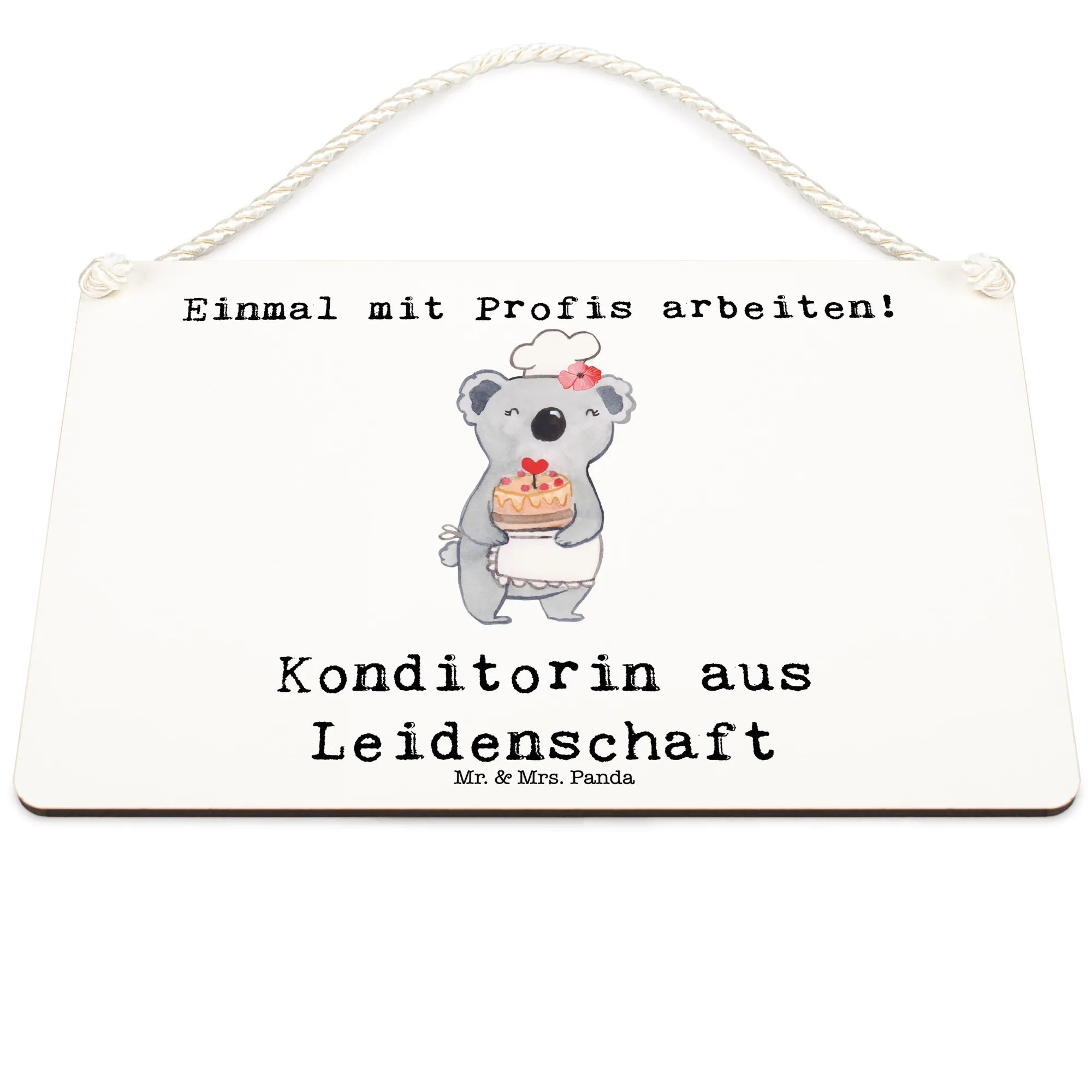 Ein wunderschönes und edles Deko Schild von Mr. & Mrs. Panda ist das perfekte Geschenk für alle Konditorinnen und Kuchenbäckerinnen in deinem Leben! Mit dem liebevoll gestalteten Motiv "Konditorin aus Leidenschaft" strahlt dieses Holzschild Wärme und Leidenschaft für das Handwerk aus.