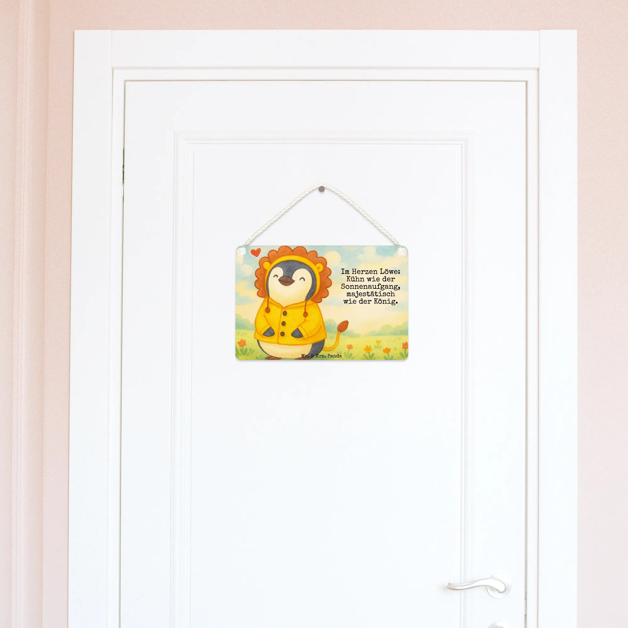 Dieses liebevoll gestaltete Türschild verbindet Humor, Astrologie und handgezeichneten Charme. Auf dem Motiv siehst Du einen fröhlichen Pinguin im Löwenkostüm, begleitet vom schönen Spruch: „Im Herzen Löwe: Kühn wie der Sonnenaufgang, majestätisch wie der König.“ Ein kleines Herz und ein zufriedenes Lächeln vermitteln Lebensfreude und Wärme – ideal für alle Löwen oder Freunde der Sternzeichen.