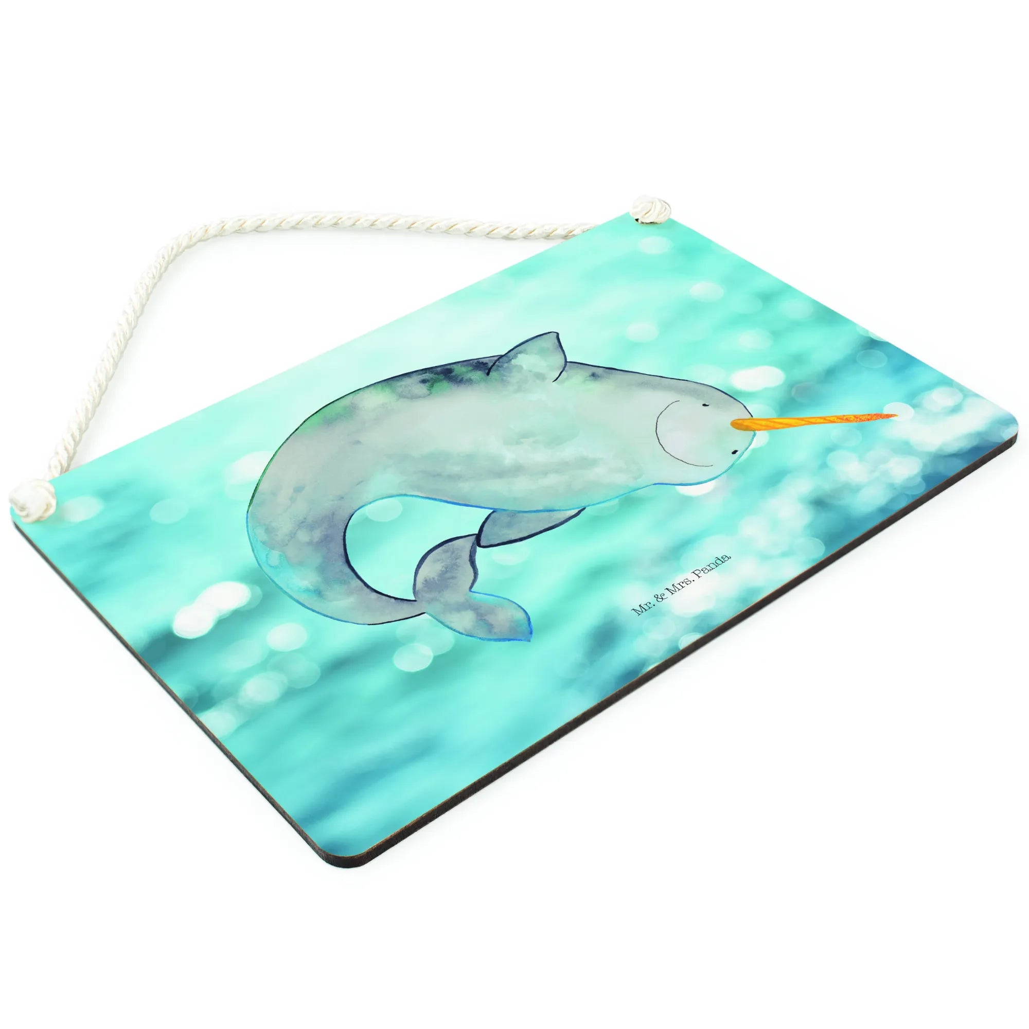 Verschenke dieses Deko Schild zu Anlässen wie Geburtstagen, Einweihungen oder einfach so, um jemandem eine Freude zu machen! Liebhaber von Meerestieren und dem Ozean werden die wunderbare Darstellung des Narwals lieben. Hol Dir das Gefühl von Urlaub und Freiheit ins Haus und umgib Dich mit positiver Energie. Ob als Teil einer großen Deko-Idee oder einfach für Dich selbst – das Deko Schild von Mr. & Mrs. Panda wird sicherlich zum lieben Blickfang in Deiner Wohnung!