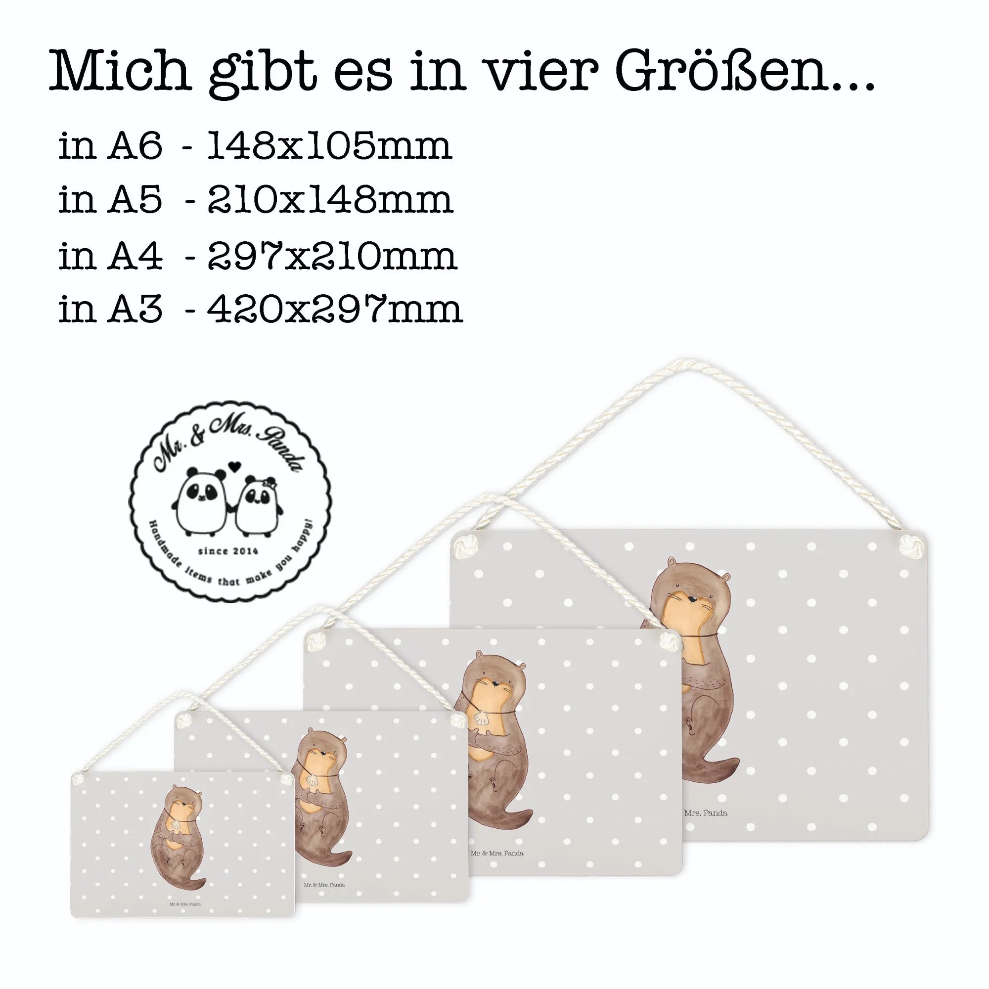 Die Otter Kollektion von Mr. & Mrs. Panda umfasst viele liebevoll gestaltete Produkte, die aus hochwertigen und langlebigen Materialien gefertigt sind. Das Holzschild hat die perfekten Maße von 210 mm x 148 mm und kann dank der wunderschönen gedrehten Kordel einfach überall aufgehängt werden.