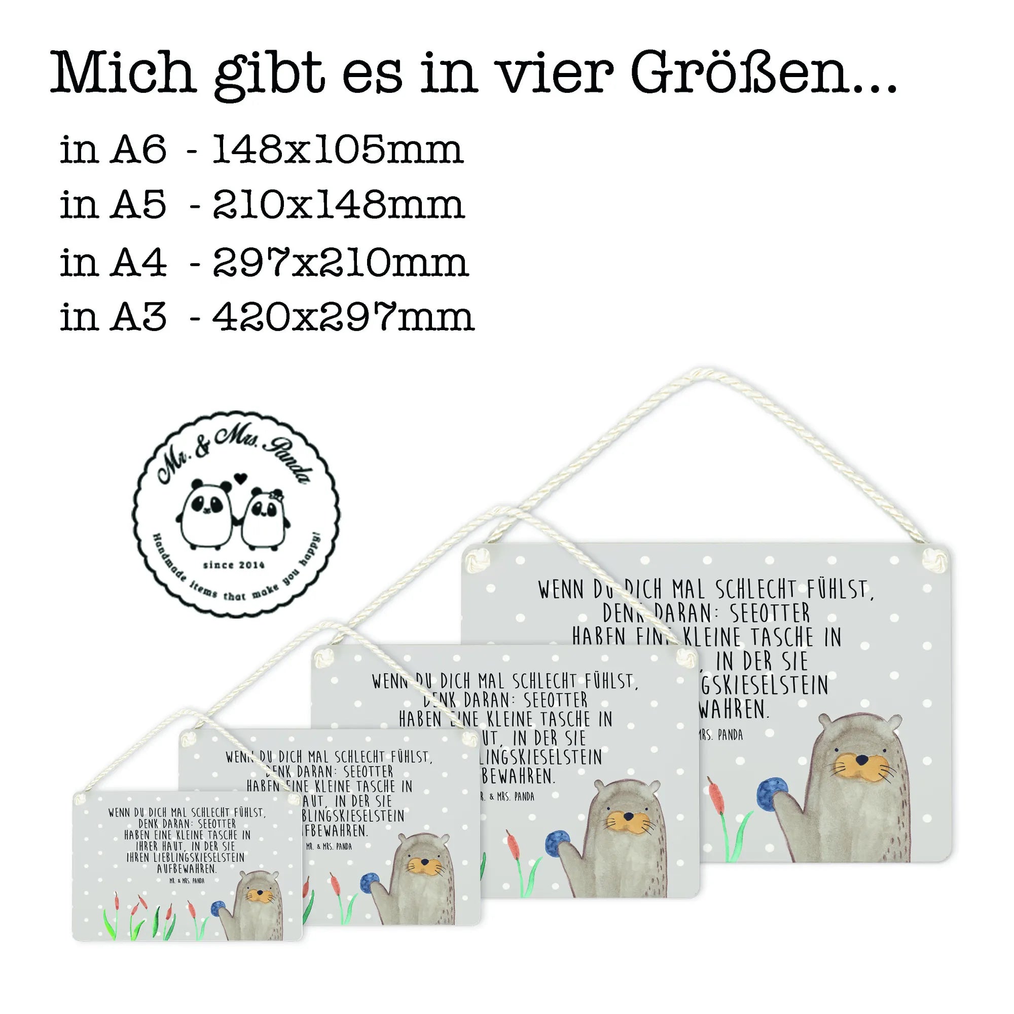 Entdecke das bezaubernde Deko Schild mit dem niedlichen Otter Motiv! Dieses besondere Schild zeigt einen fröhlichen Seeotter, der seinen Lieblingskieselstein hochhält. Es ist nicht nur eine tolle Deko für dein Zuhause, sondern bringt auch eine wichtige Botschaft mit sich: Wenn du dich mal schlecht fühlst, denk daran, dass Seeotter eine kleine Tasche in ihrer Haut haben, in der sie ihre liebsten Steine aufbewahren.