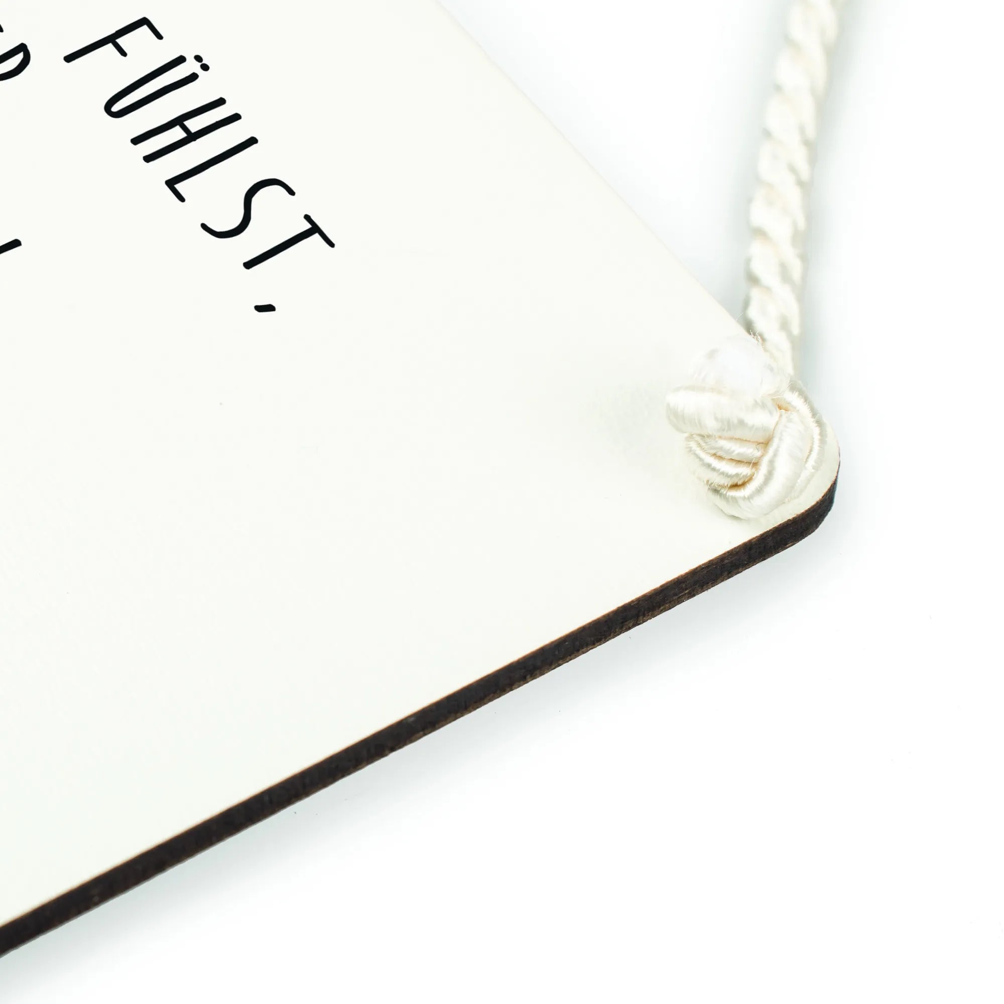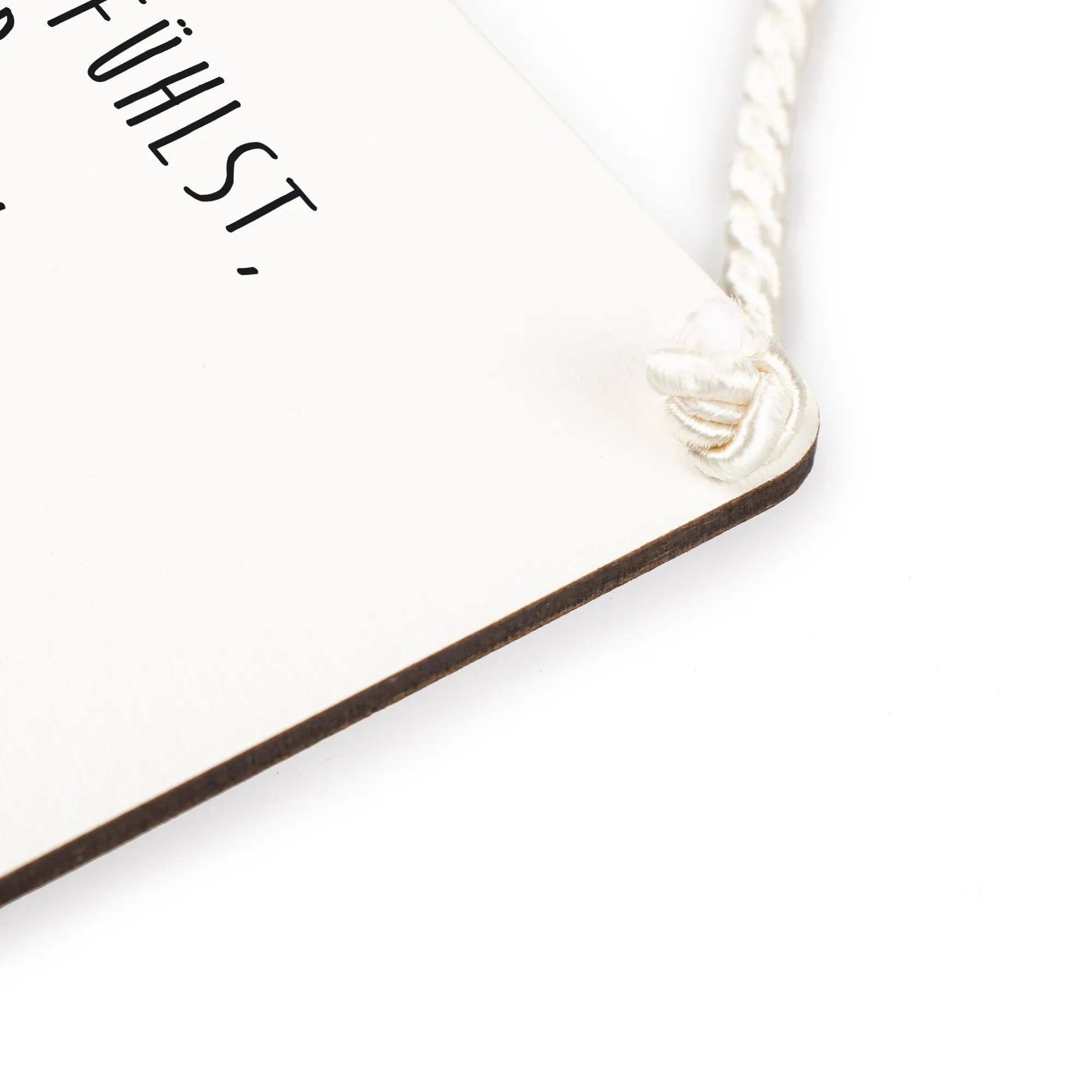 Praktisch und dekorativ: Die dekorative, gedrehte Kordel ermöglicht das einfache Aufhängen. Verwende das Schild als Türschild mit Spruch, Dekoschild zum Aufhängen oder als Holztafel, die Räume belebt und ein Lächeln schenkt.
