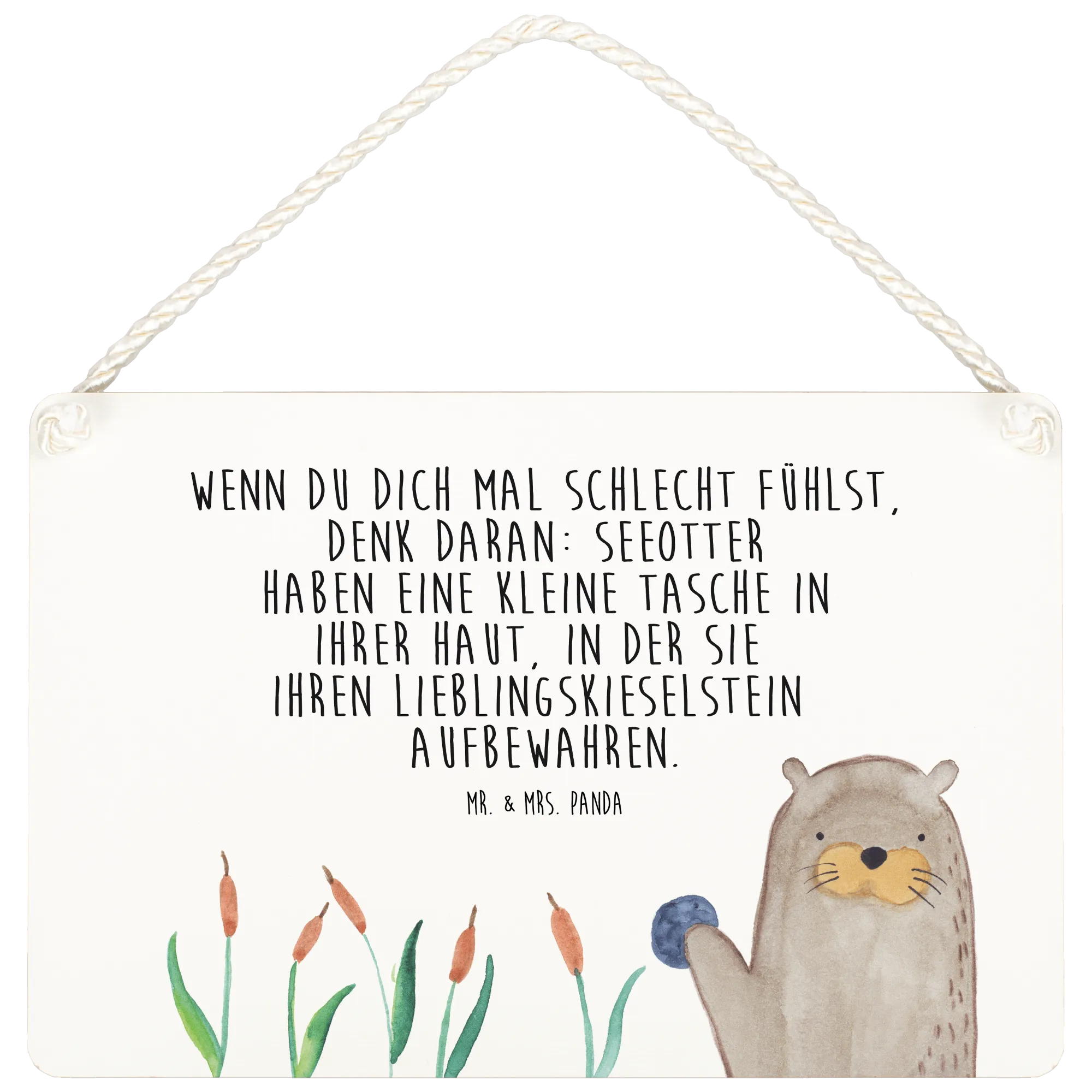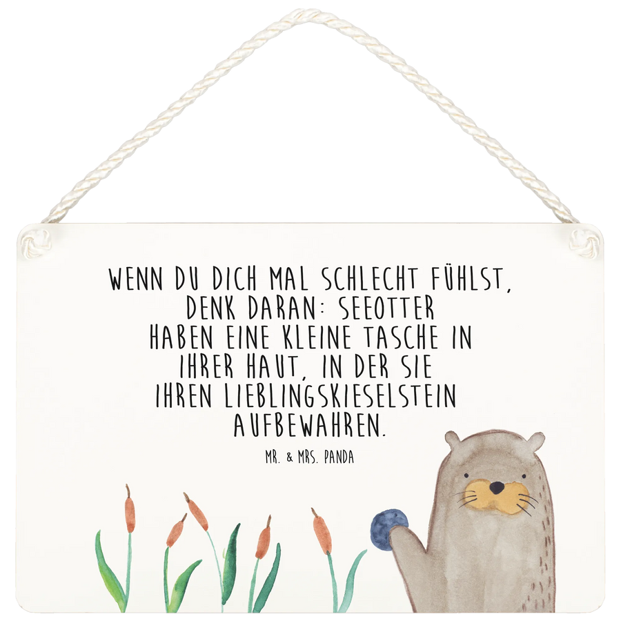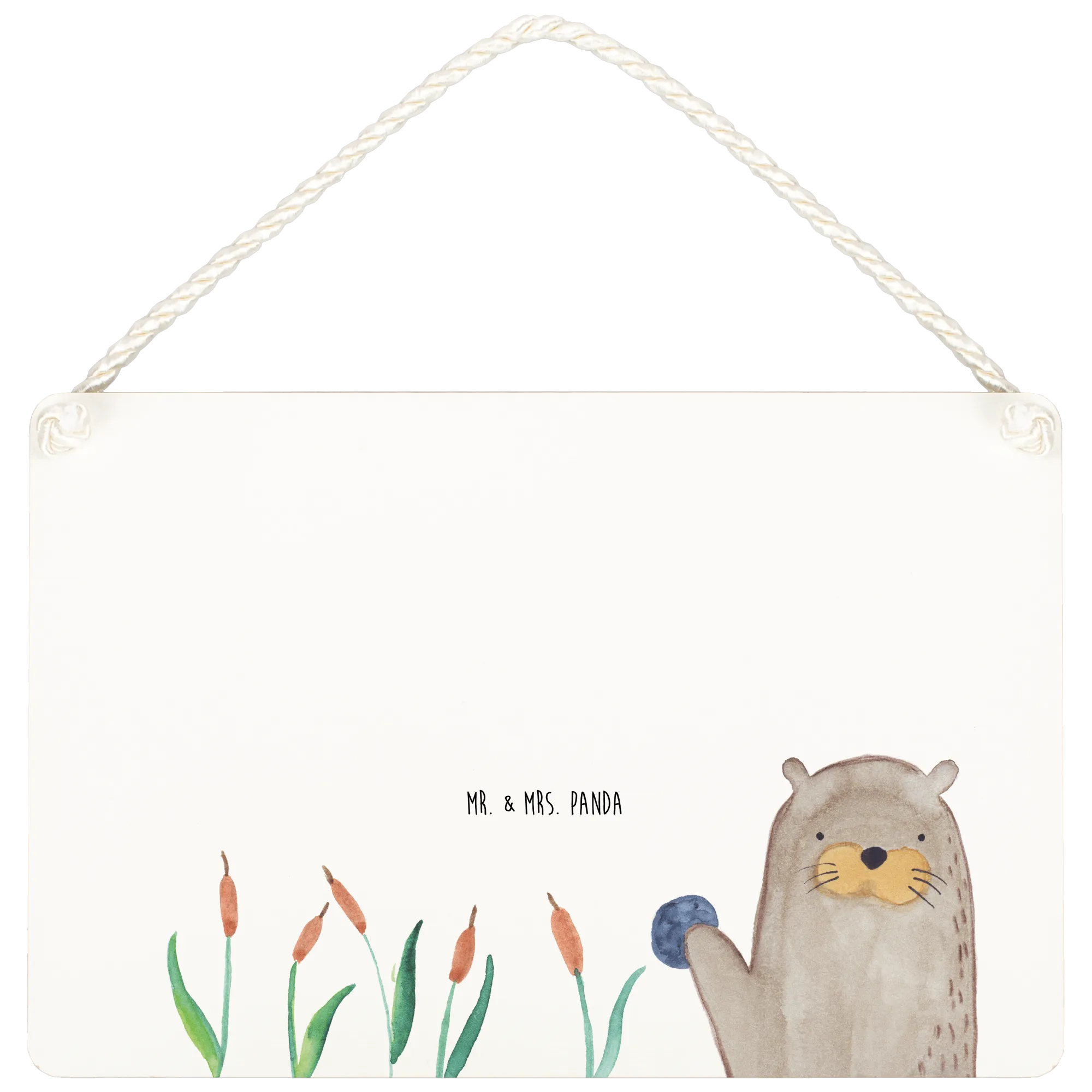 Entdecke unser wunderschönes Deko Schild "Otter mit Stein" aus der exklusiven Otter-Kollektion von Mr. & Mrs. Panda! Dieses einzigartige Holzschild bringt Freude und Lebensfreude in Dein Zuhause.