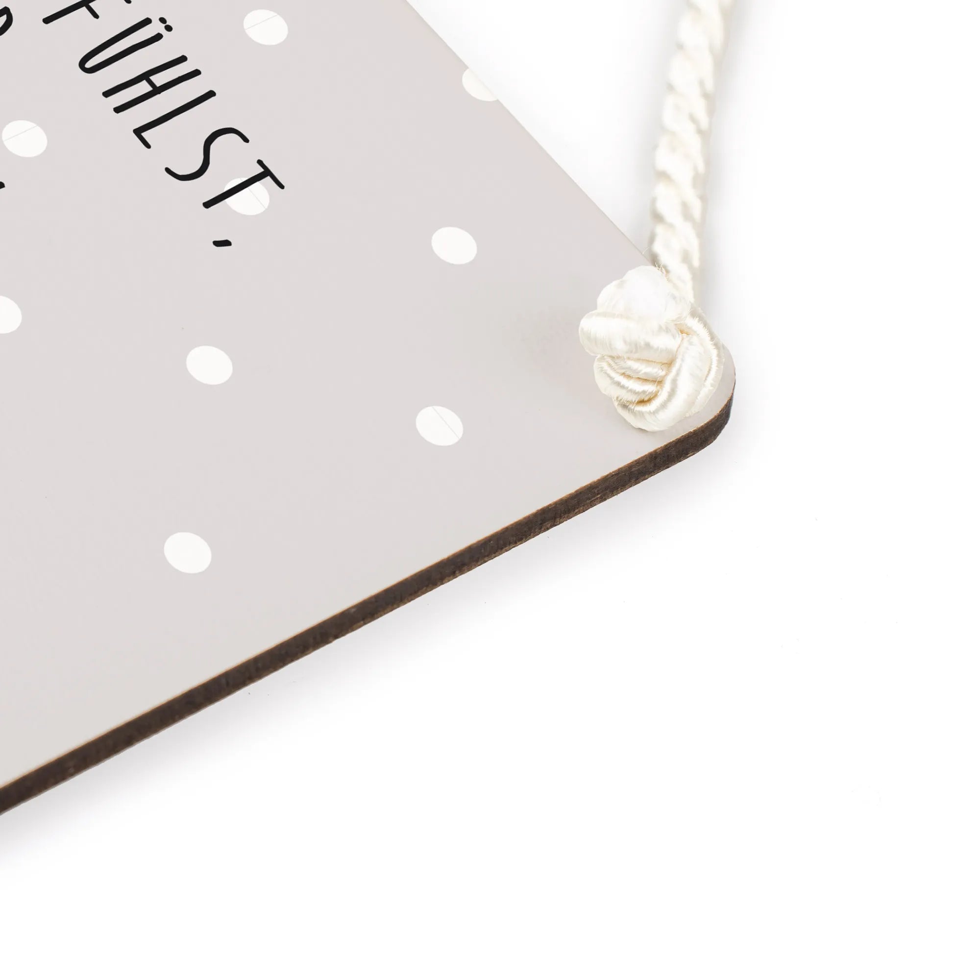 Willkommen in der bezaubernden Welt von Mr. & Mrs. Panda! Unser Deko Schild mit den Maßen 210 mm x 148 mm ist das perfekte Accessoire für jedes Zuhause. Hergestellt aus beschichteter Holzfaser, wird dieses Schild nicht nur durch seine edle und langlebige Druckqualität bestechen, sondern auch durch die süßen und inspirierenden Sprüche, die darauf verewigt sind. Ob im Badezimmer, in der Küche oder an der Tür – unser vielseitiges Motiv Schild ist ideal als Dekoration oder Wegweiser nutzbar. Die Oberfläche wurde speziell beschichtet, um eine lange Lebensdauer zu gewährleisten. Außerdem kommt das Schild mit einer wunderschön gedrehten Kordel zur Aufhängung, die ihm eine charmante Note verleiht. Verleihen Sie Ihrem Zuhause mit unserem Deko Schild von Mr. & Mrs. Panda einen Hauch von Stil und Freude!