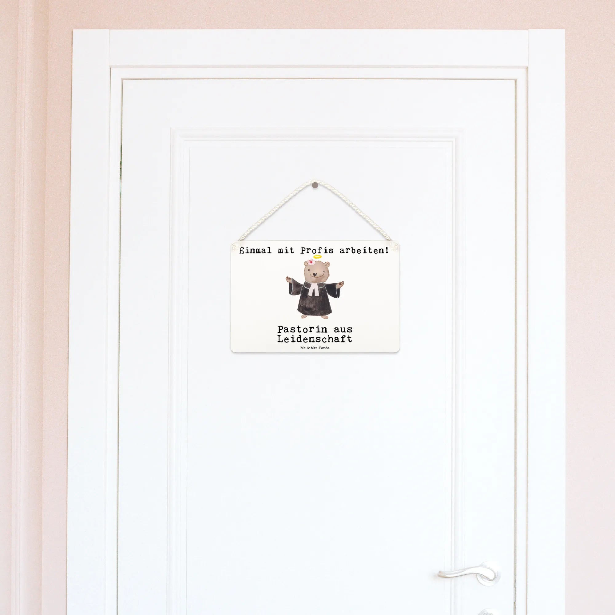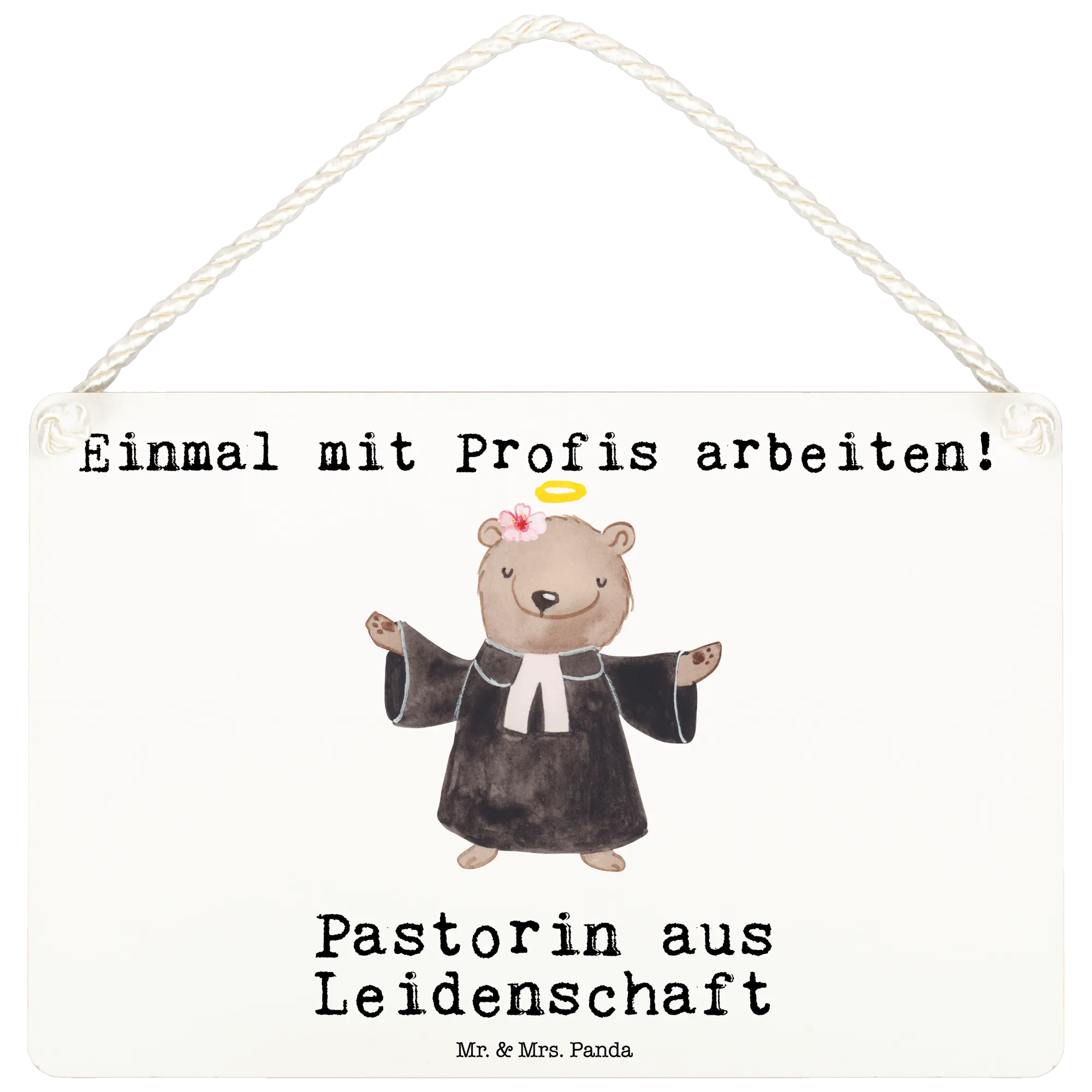 Die verspielte Gestaltung mit dem Motto "Pastorin aus Leidenschaft" zeigt nicht nur die Leidenschaft ihrer Profession, sondern sorgt auch dafür, dass das Schild überall zur schönen Wand- oder Türdekoration wird. Mit einer wunderschönen, gedrehten Kordel zur Aufhängung lässt sich das Schild ganz einfach in der Kirche, im Büro oder sogar im eigenen Wohnzimmer anbringen.