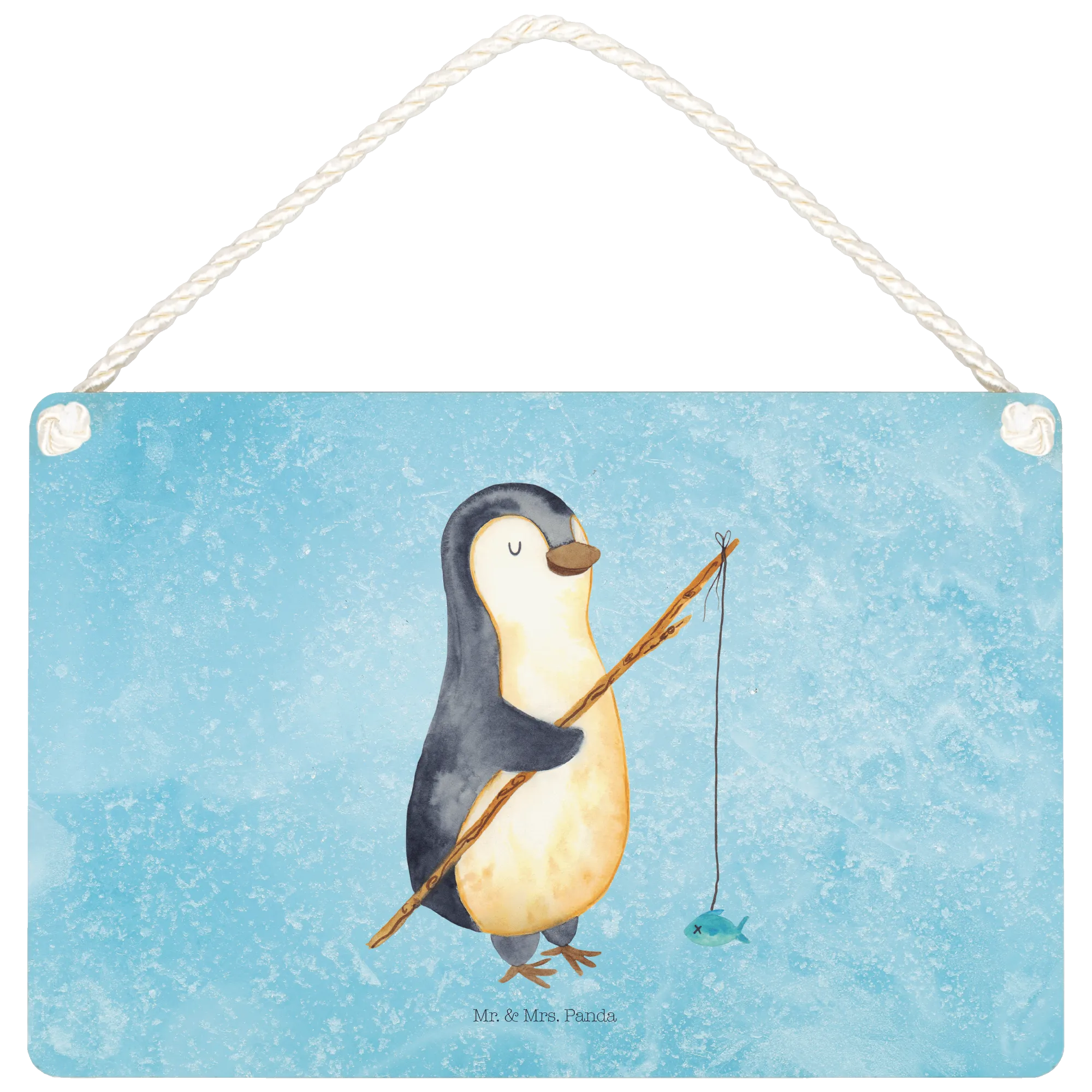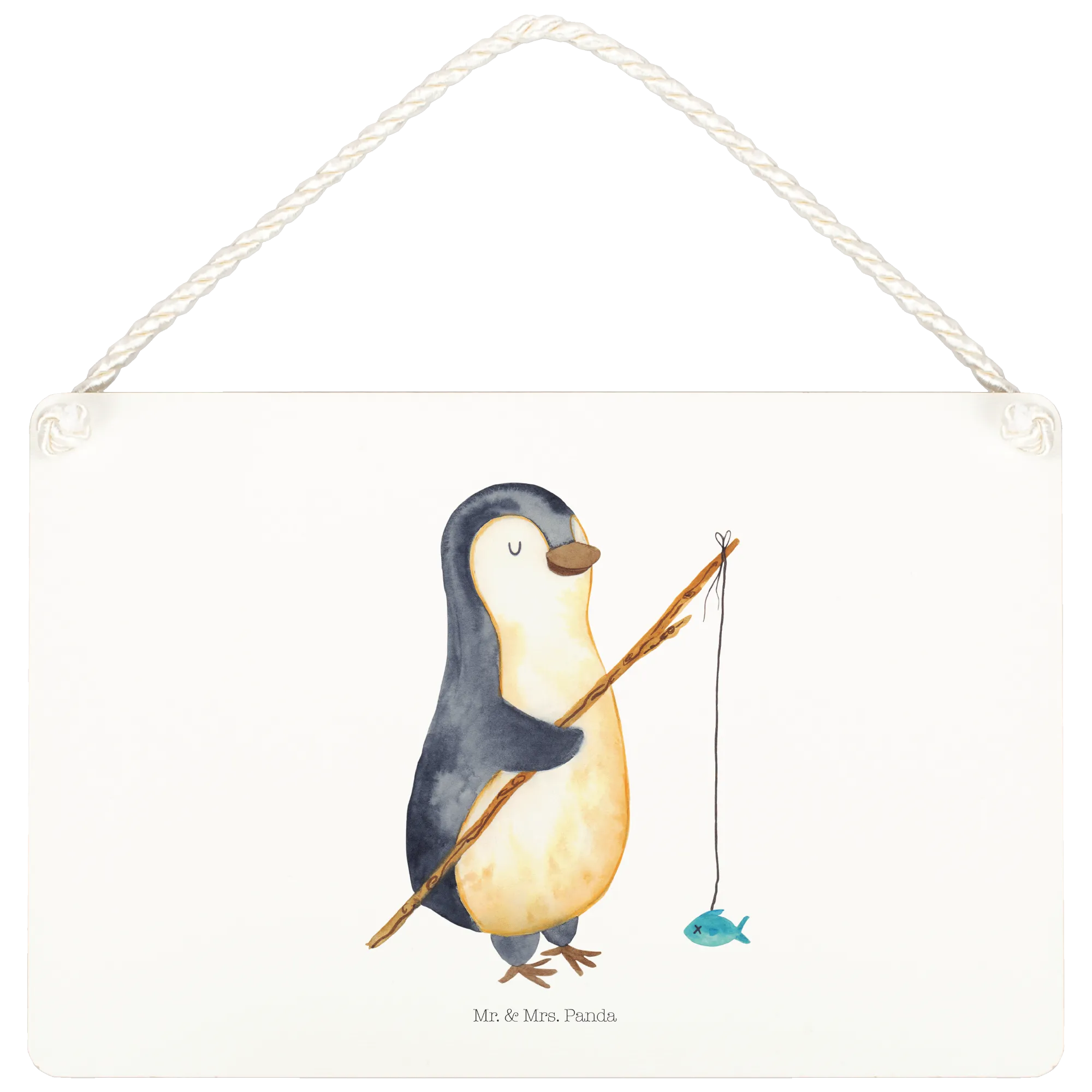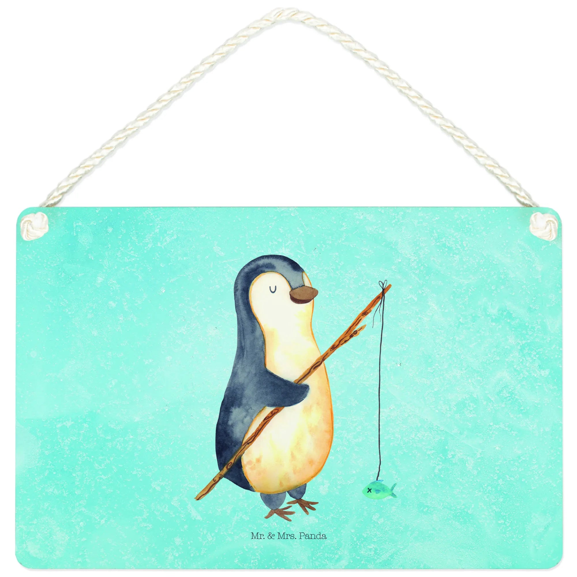 Entdecke das perfekte Deko Schild mit dem niedlichen Pinguin Angler aus der Pinguin-Kollektion von Mr. & Mrs. Panda!