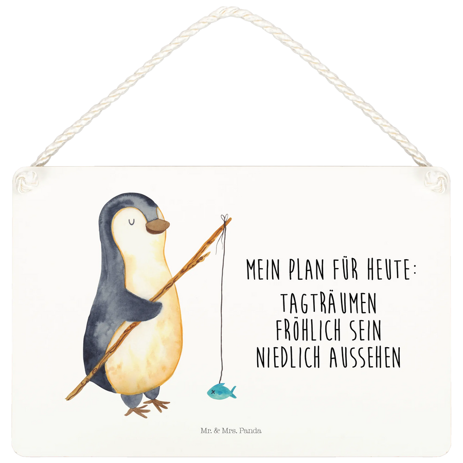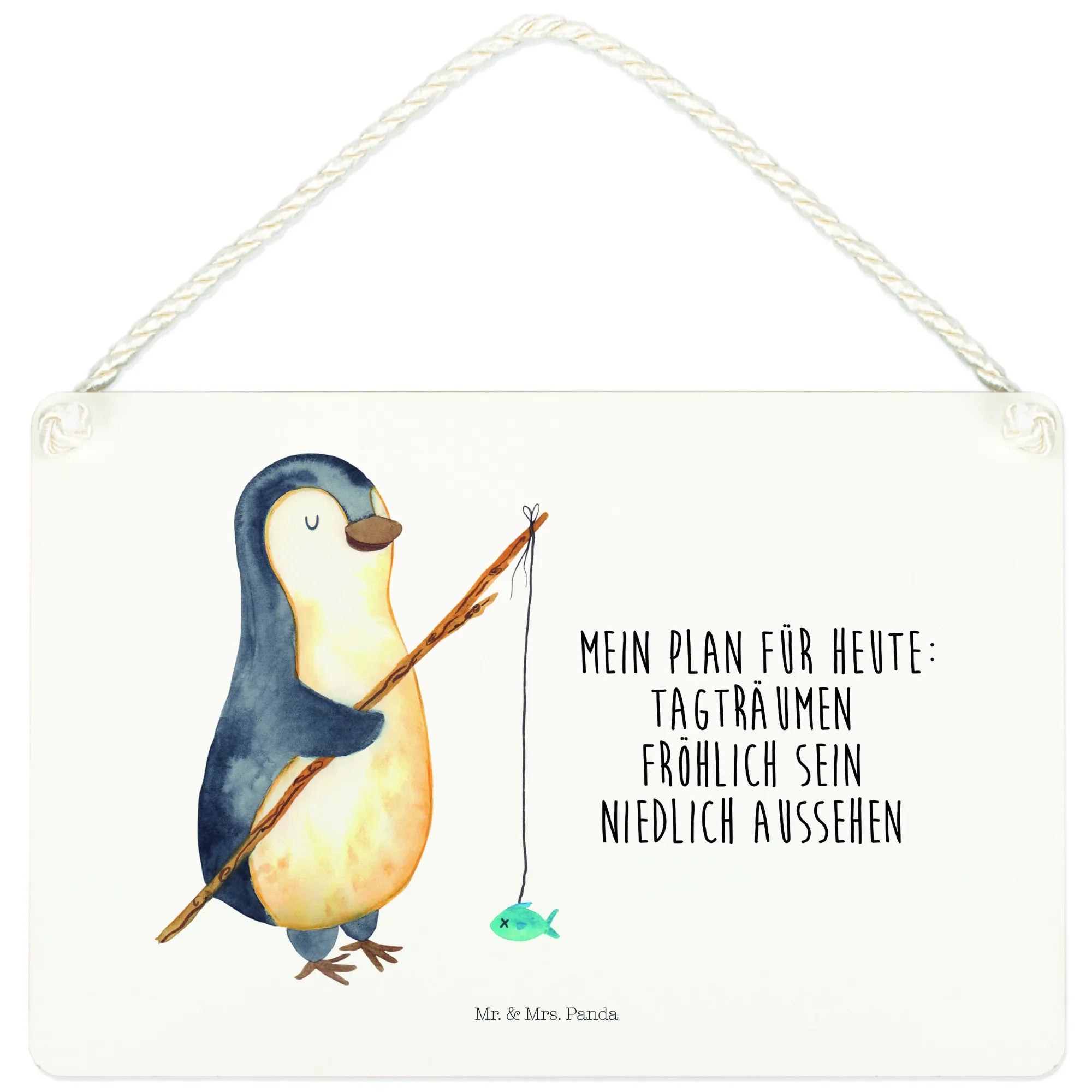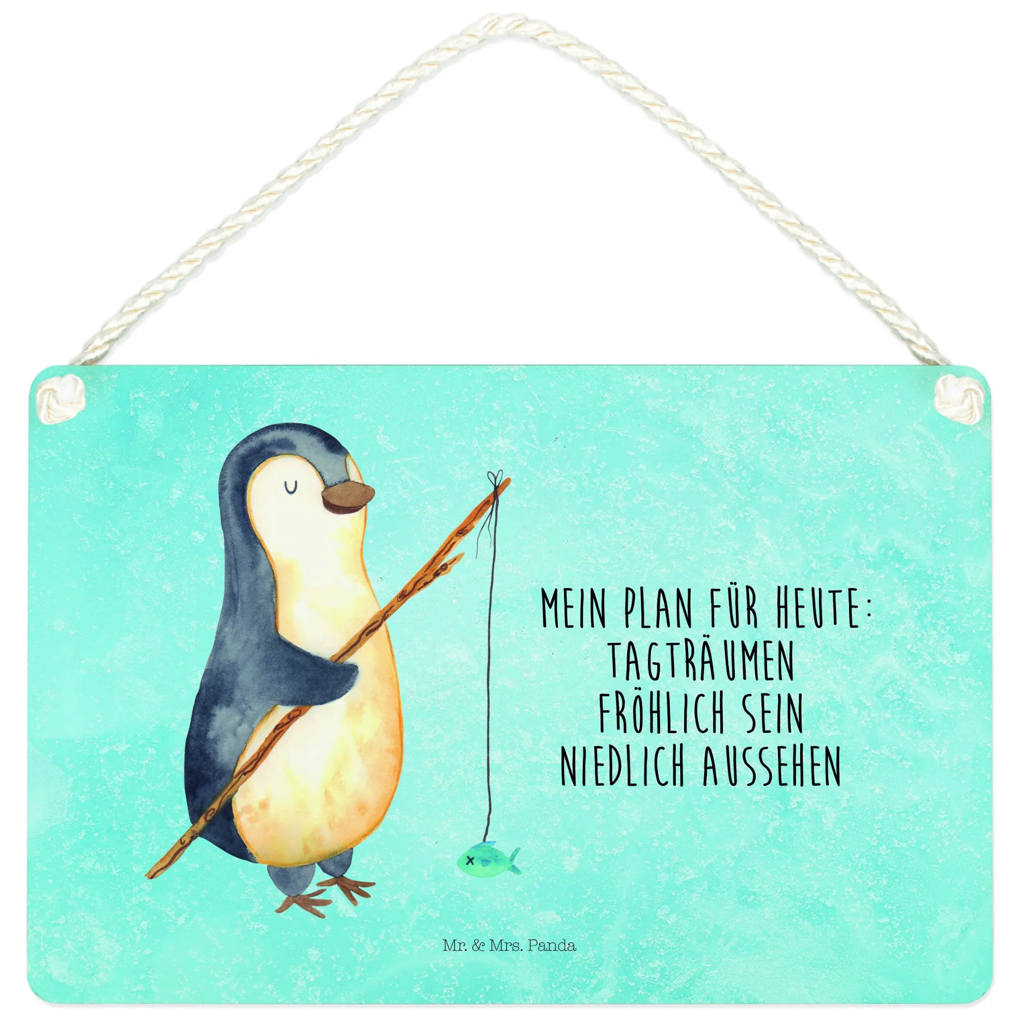 Entdecke das perfekte Deko Schild mit dem niedlichen Pinguin Angler aus der Pinguin-Kollektion von Mr. & Mrs. Panda!