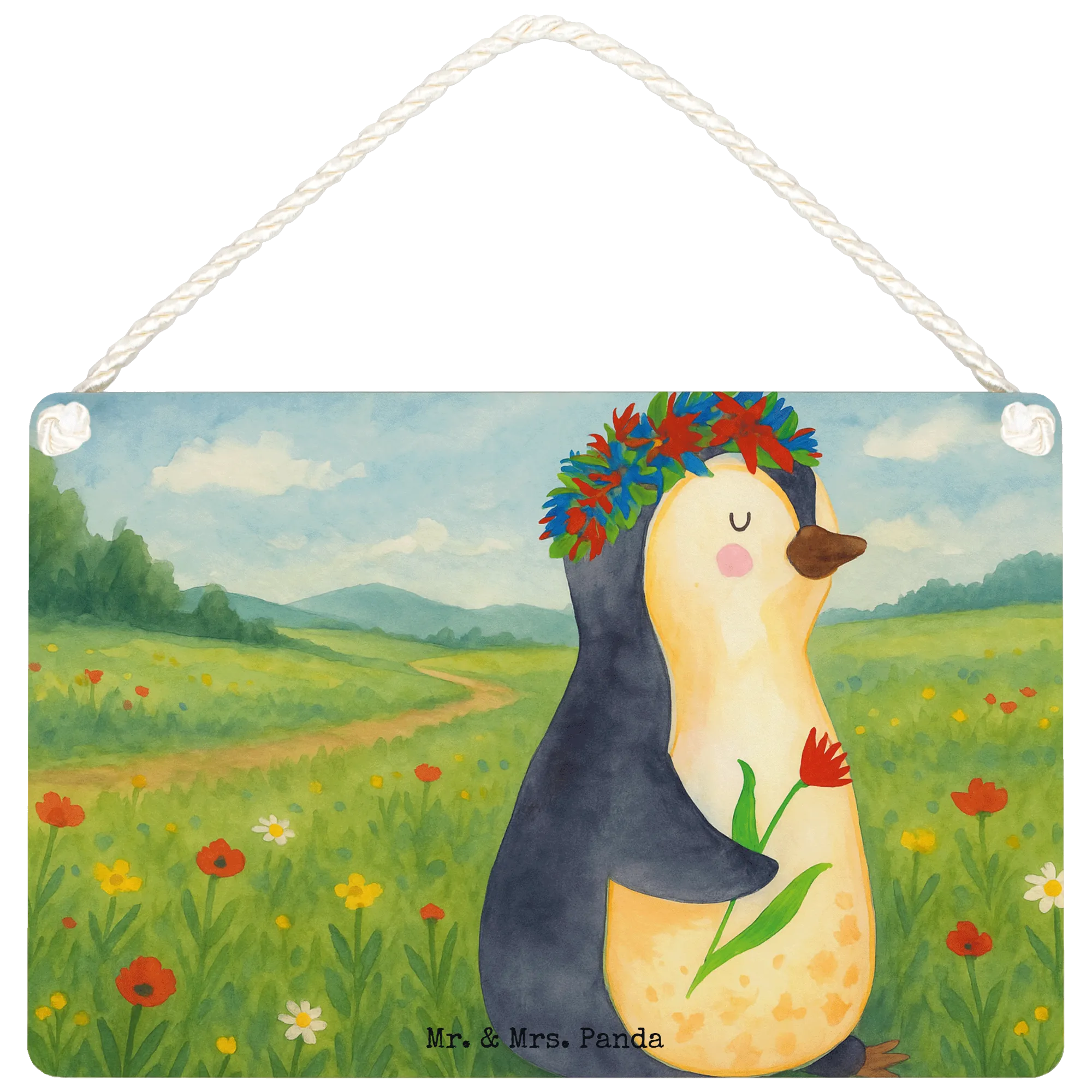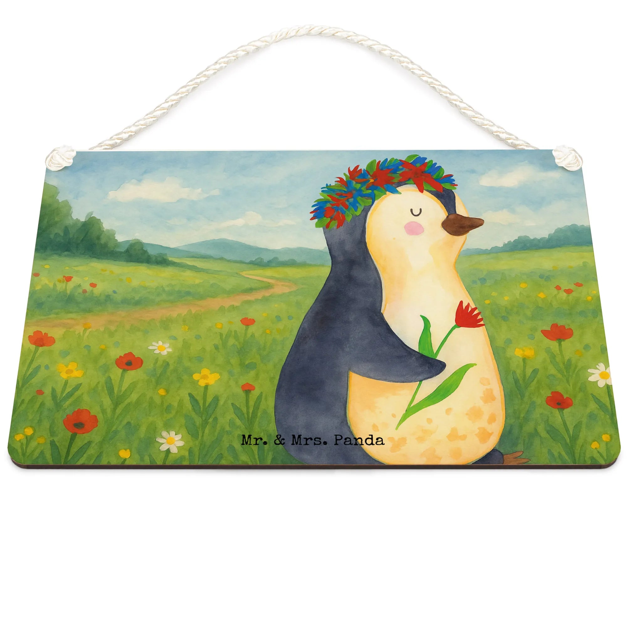 Deko Schild Pinguin Blumen Design - DIN A5 - mit Spruch