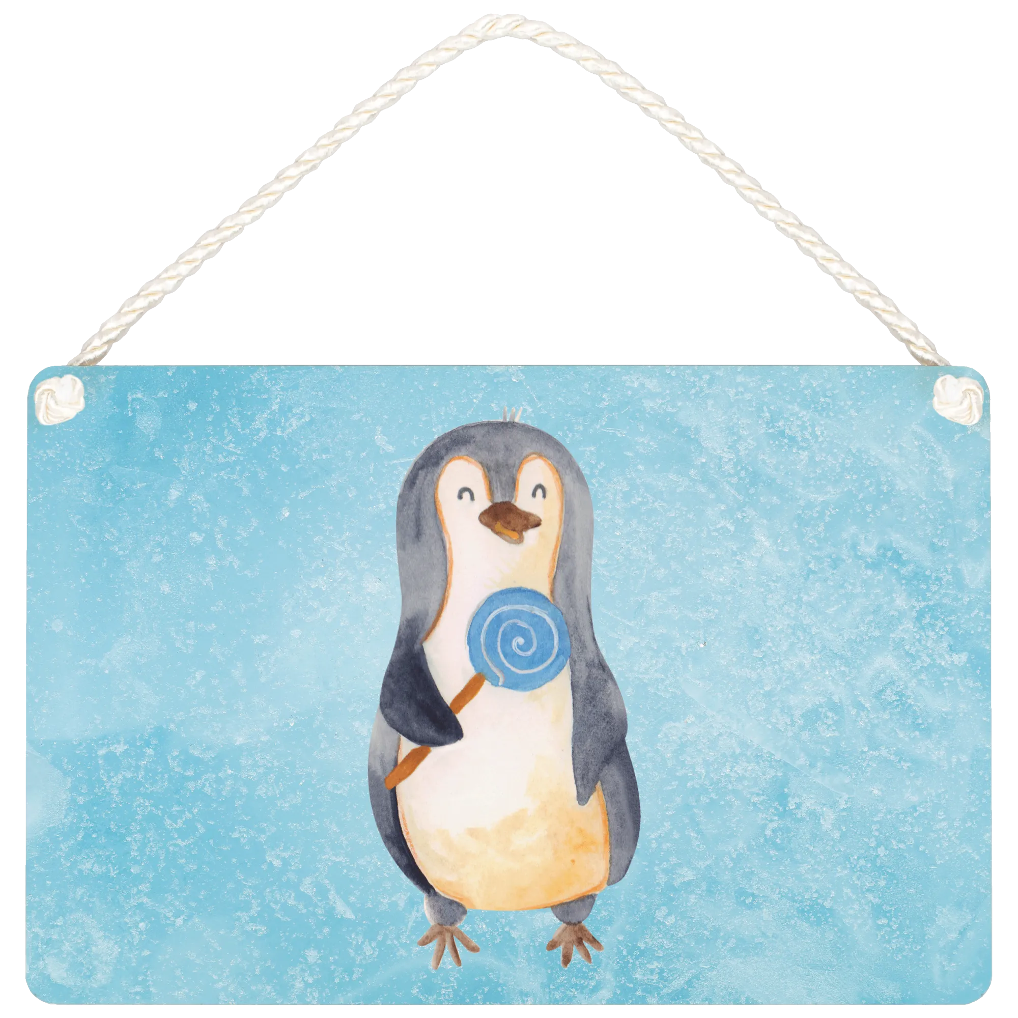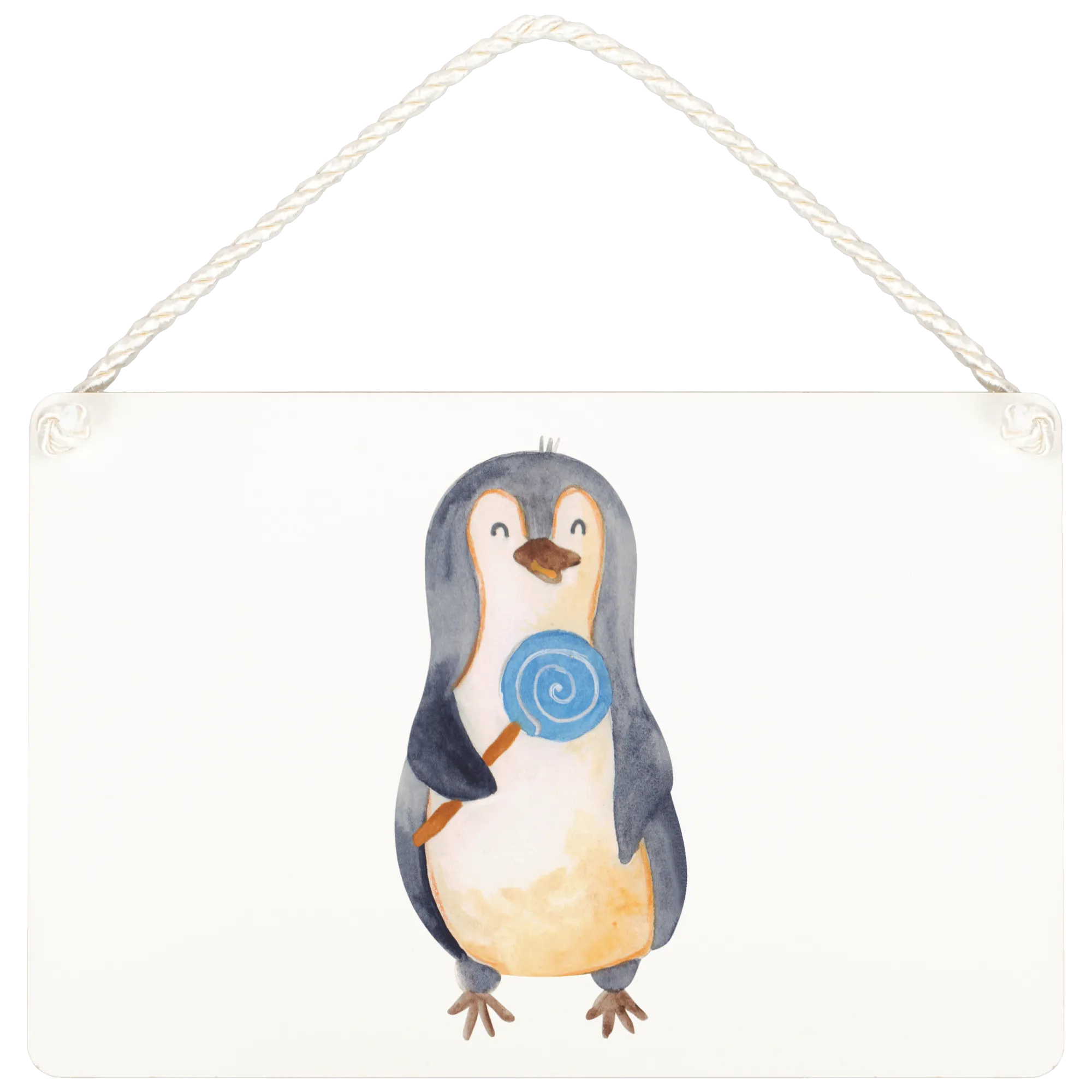 Mit seinem niedlichen Pinguin-Motiv, das einen Lollipop in der Hand hält, strahlt es Lebensfreude und Unbeschwertheit aus. Der Wandschild ist aus hochwertigem MDF gefertigt und überzeugt durch seine langlebige Beschaffenheit und die edle Verarbeitung. Mit den Maßen von DIN A5 passt es ideal an jede Wand oder zur Dekoration der Tür.